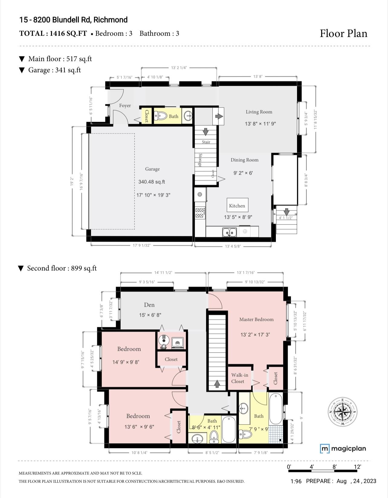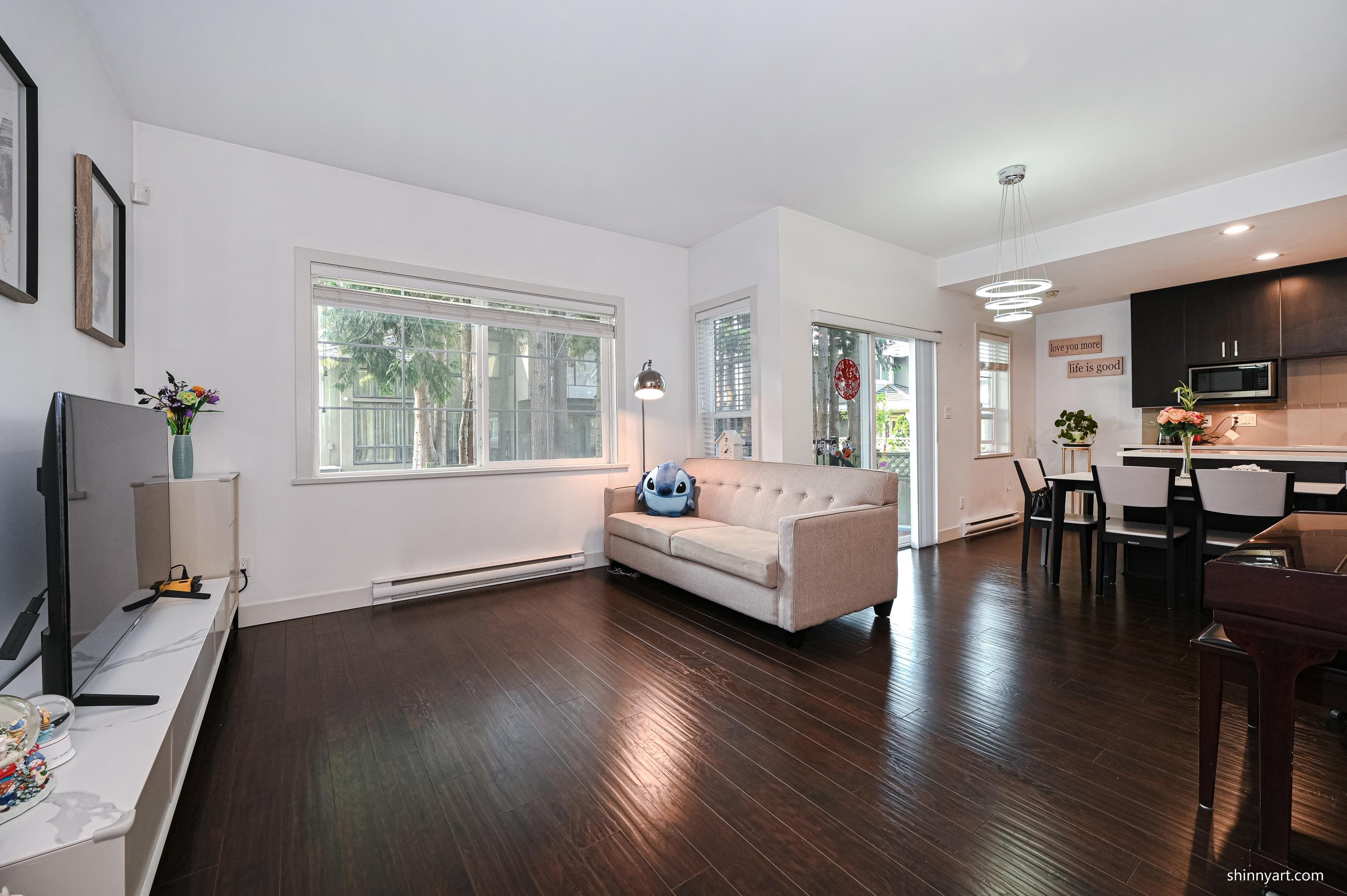 Central Location! The unique& quiet inside unit 2 level duplex styled townhouse with 3 big sized bedrooms, a large extra den ( could bedroom up) + 2.5 bath , a double Side-By-Side garage attached with lots of storage space, South facing backyard Located in the heart of Richmond . The nice ending unit with 1416 Sft, Bright, and well maintained. Close to Richmond Centre, Parks, restaurants and shopping center, only 5 minutes walk to public transit, near Schools (Garden City Elementary & Palmer Secondary schoo...