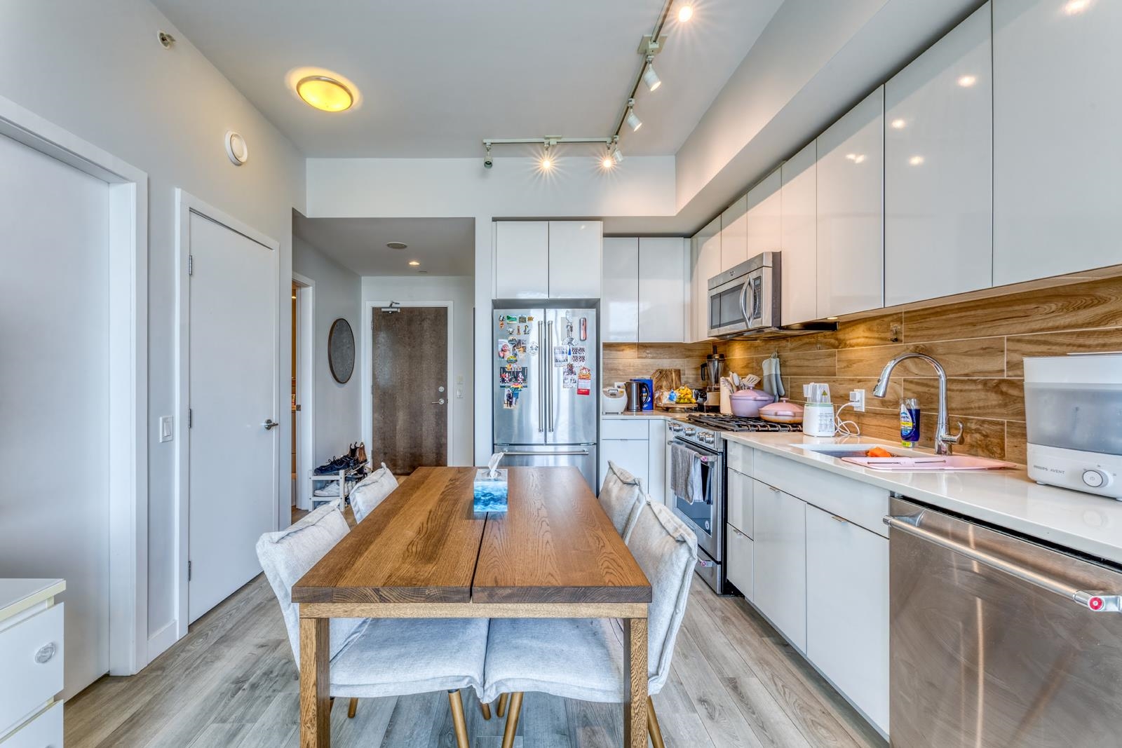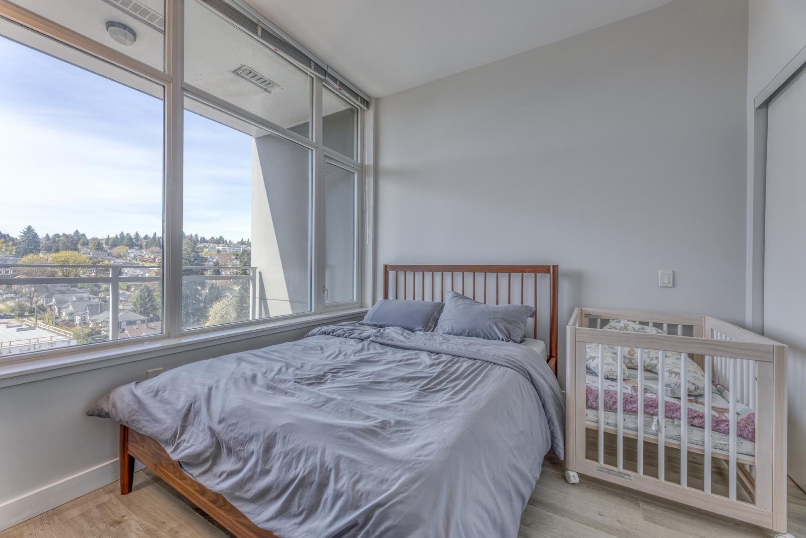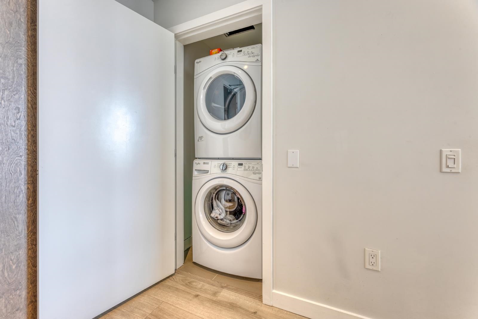 Top-floor living at The Sapperton! This bright 1 bed, 1 bath home on the 15th floor features high ceilings, a functional open layout, and full-sized appliances. The wheelchair-accessible bathroom adds comfort and convenience. Enjoy a quiet setting away from the SkyTrain. Includes in-suite laundry and a spacious storage locker. Located steps to SkyTrain, Royal Columbian Hospital, shops, groceries, and restaurants. Residents have access to a 10,000 sq ft amenity clubhouse with gym, yoga studio, sauna/steam ro...