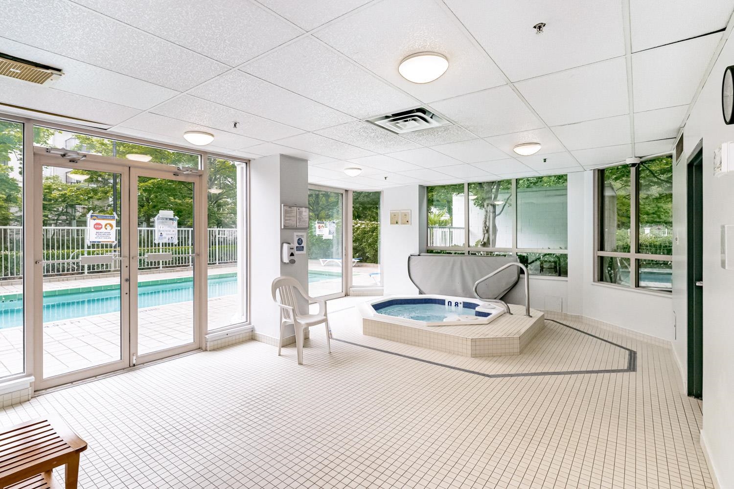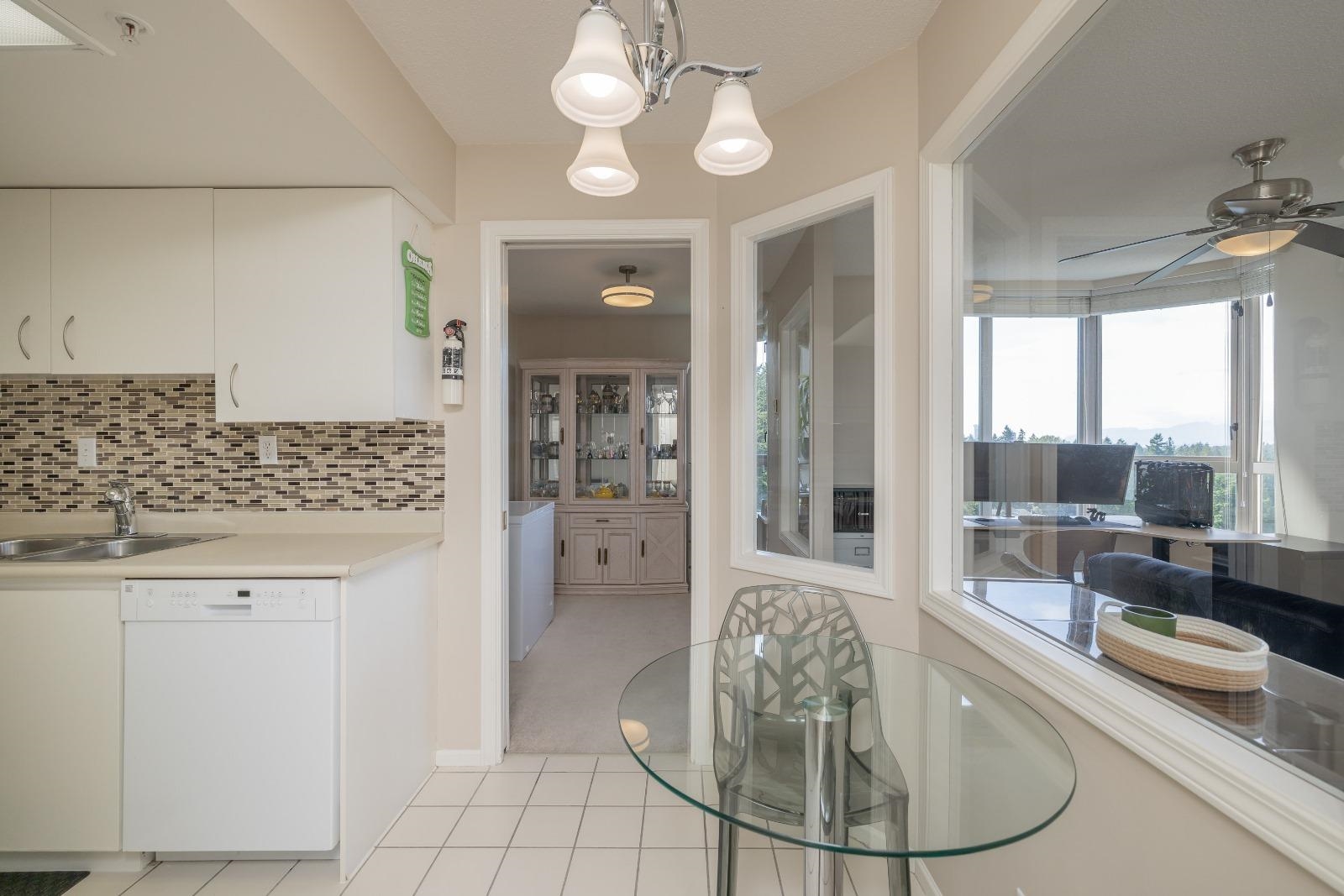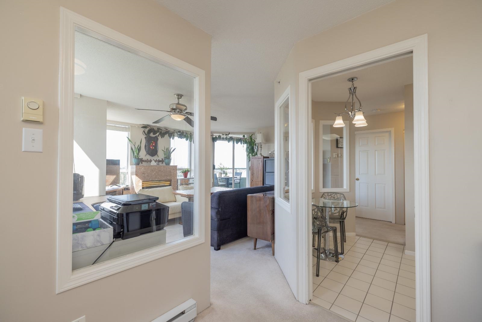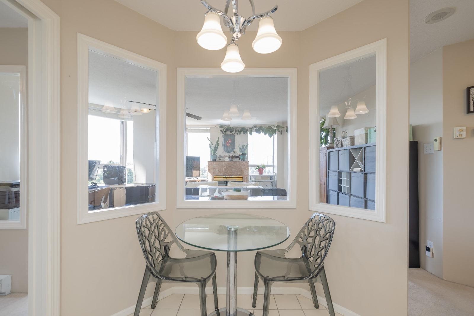 Large 1 bed, 2 bath condo with beautiful views from the 15th floor! Similar size to 2 bed units. Spacious living room with gas fireplace & a walk out deck to a north-west look of city & mountains. Dining room could also be a great place for a desk/study & the kitchen is positioned near the centre of the unit. With strata approval, a small renovation would create a nice open concept. Good size bedroom with ensuite & walk through closet. 2 outdoor pools, saunas, gym, hot tubs, & tennis courts are all great be...