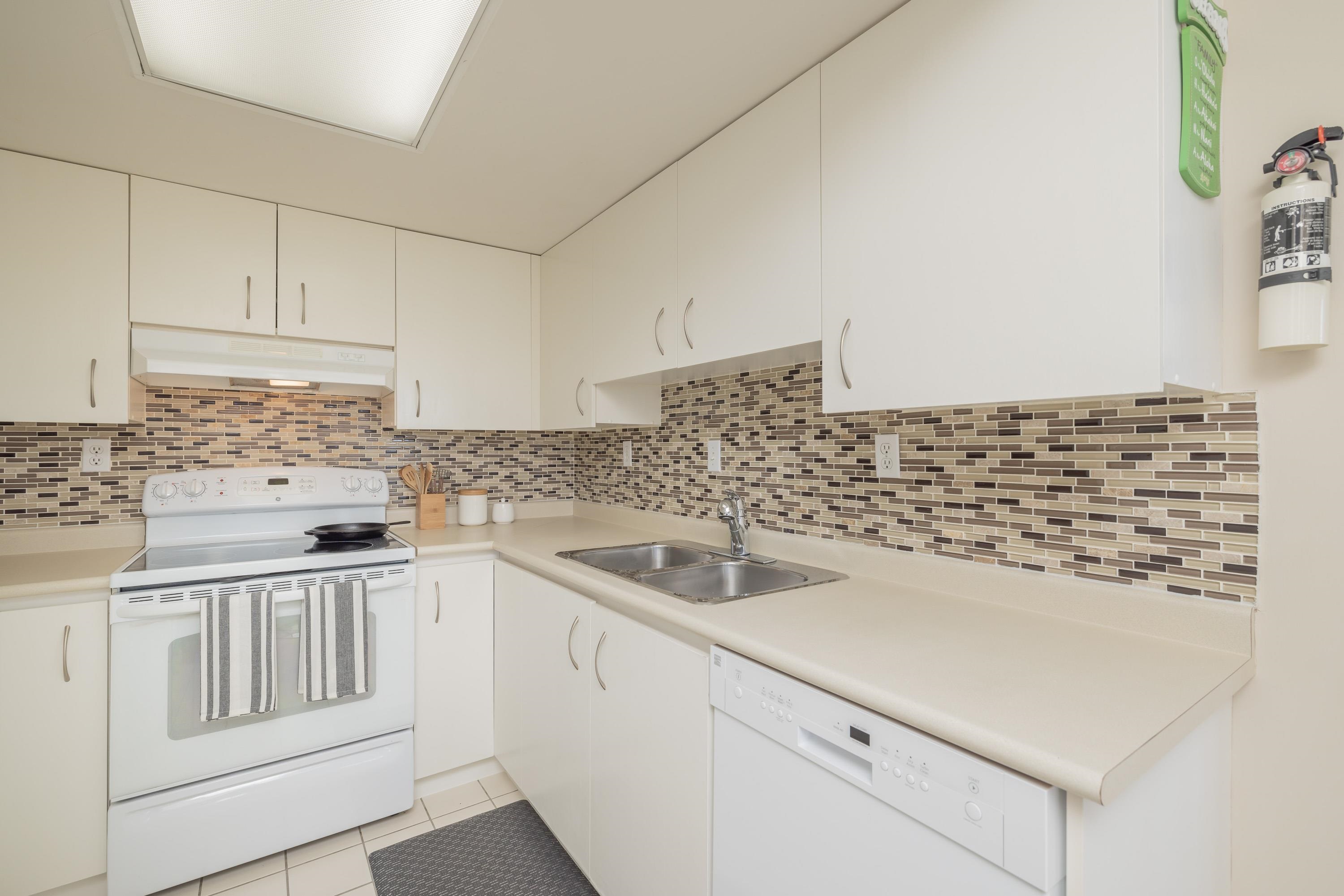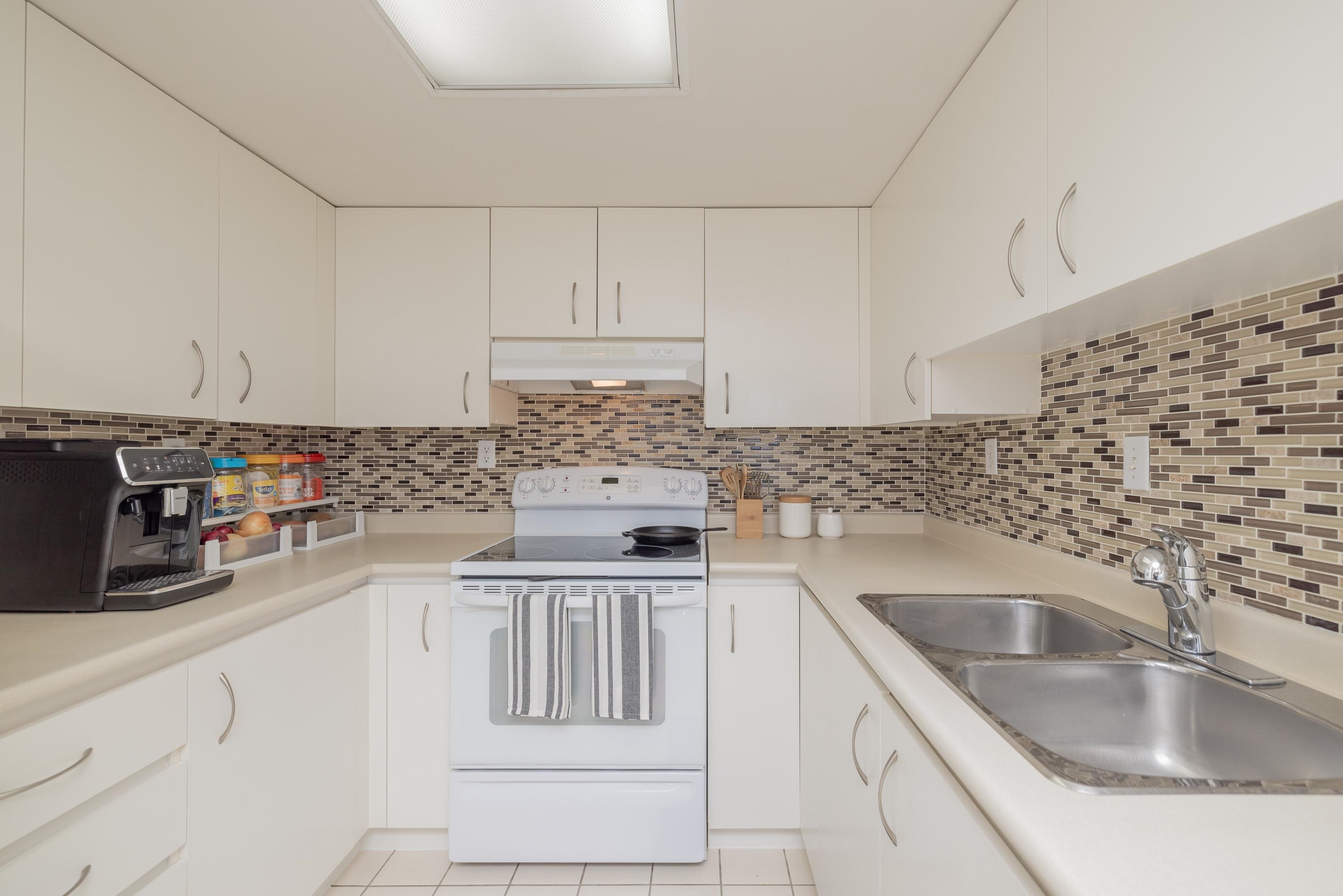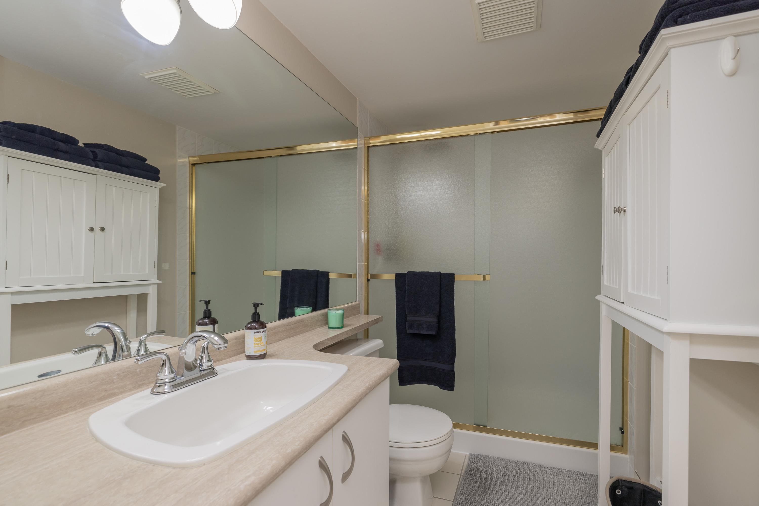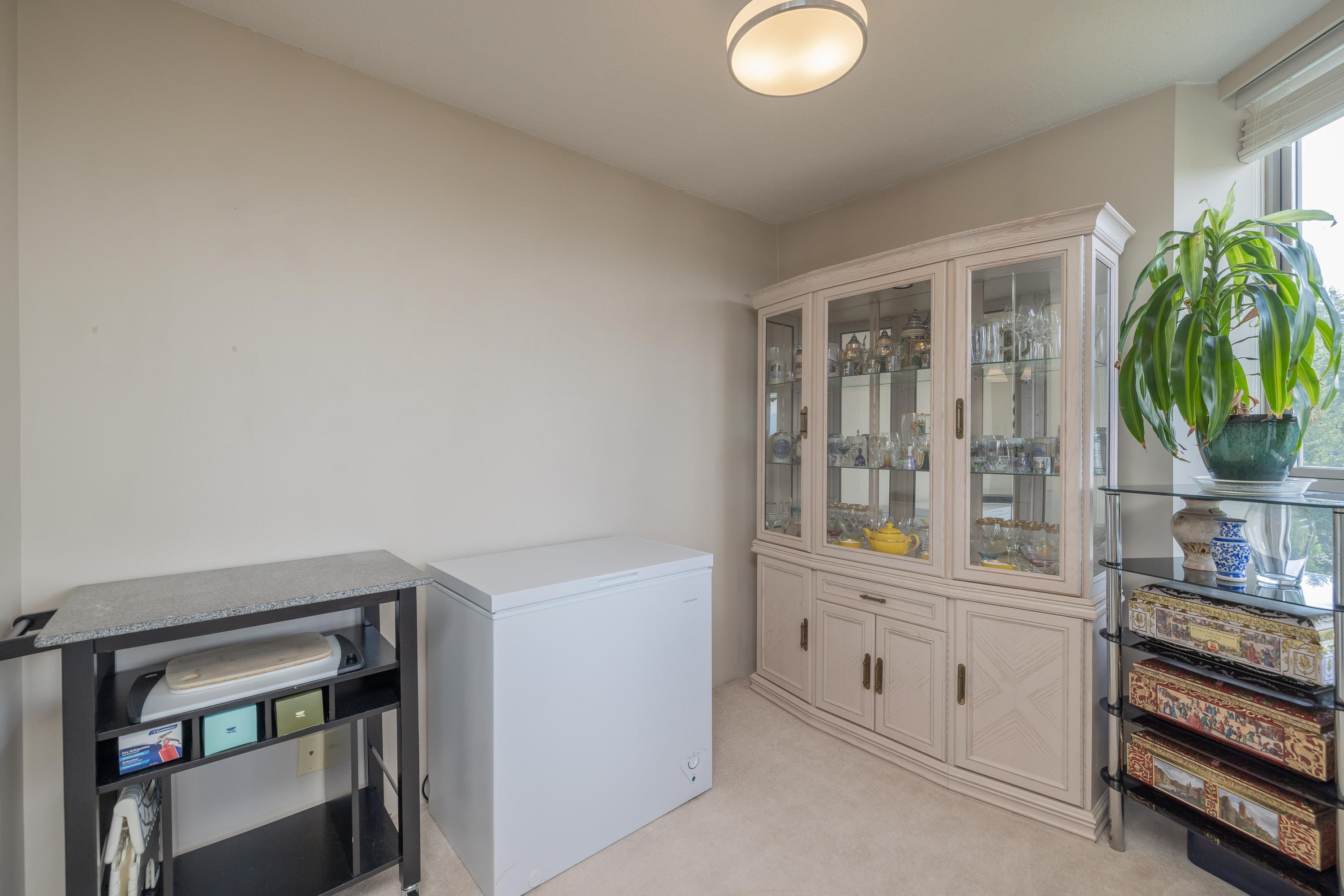 Large 1 bed, 2 bath condo with beautiful views from the 15th floor! Similar size to 2 bed units. Spacious living room with gas fireplace & a walk out deck to a north-west look of city & mountains. Dining room could also be a great place for a desk/study & the kitchen is positioned near the centre of the unit. With strata approval, a small renovation would create a nice open concept. Good size bedroom with ensuite & walk through closet. 2 outdoor pools, saunas, gym, hot tubs, & tennis courts are all great be...