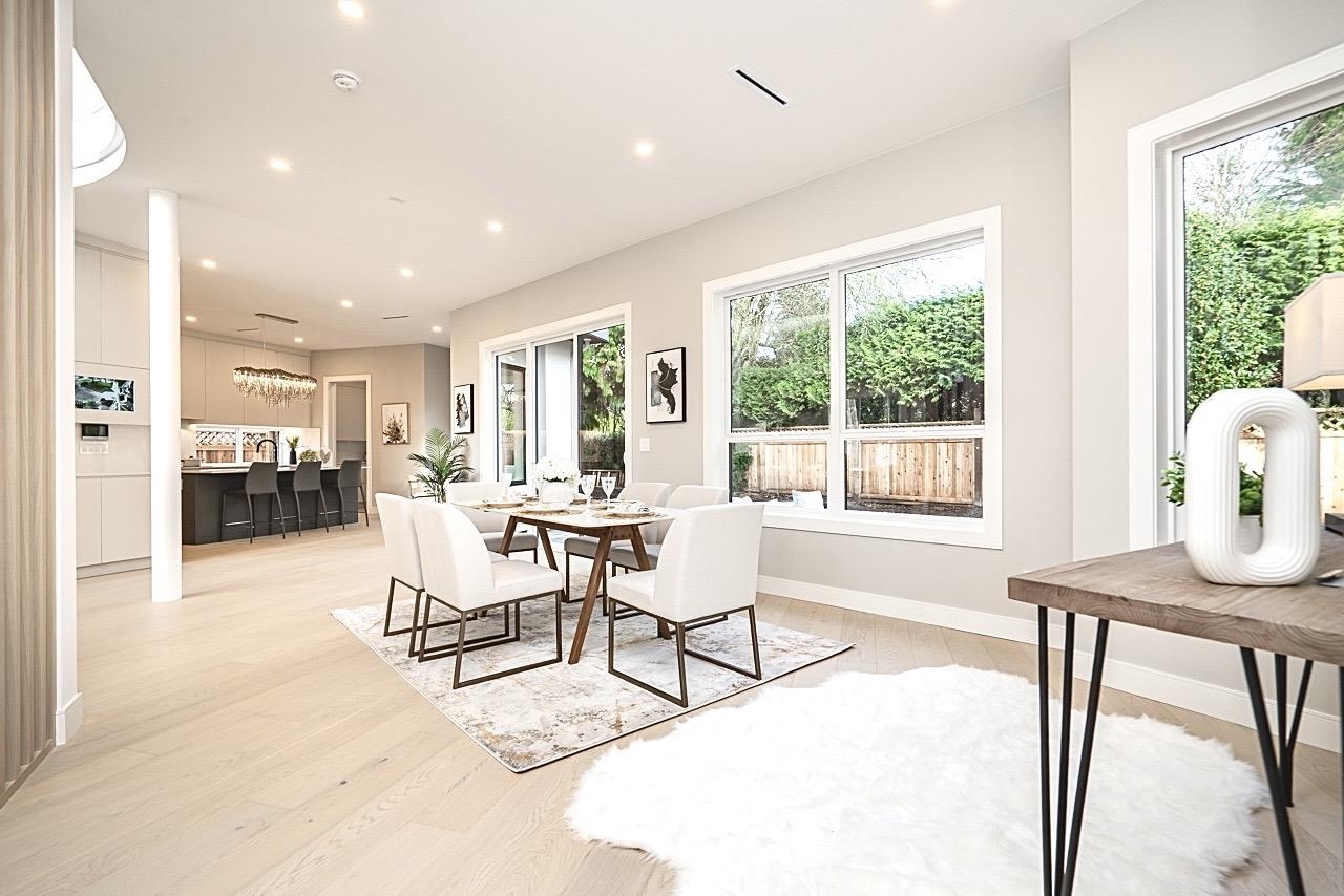 BRAND NEW custom-built residence in prestigious Semiahmoo, quietly nestled on a private cul-de-sac lot in the heart of Sunnyside Park. This elegant home offers refined craftsmanship & thoughtful design throughout. Features incl engineered hardwood flooring on all levels, radiant in-floor heating, designer lighting, custom millwork, AC & HRV system. The main level offers formal living, dining, and family spaces, along with a chef-inspired kitchen equipped with premium appliance, a sun-filled bay-window break...