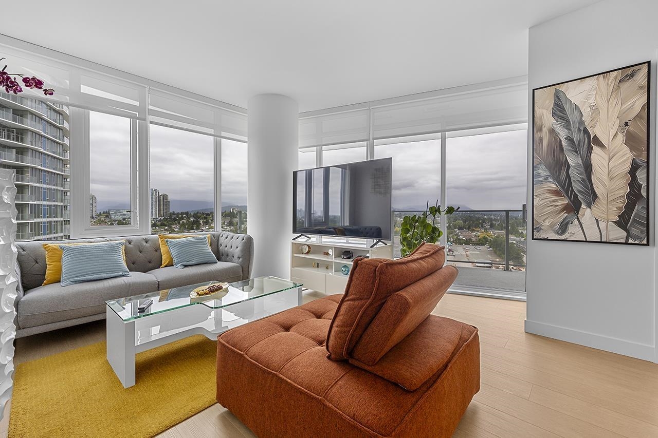 NORTH EAST FACING CORNER UNIT WITH STUNNING UNOBSTRUCTED MOUNTAIN AND CITY VIEW! ! ! ! !Beautiful concrete building by Ledingham McAllister. Azure II.This 2 bedroom and 2 bath unit have it all! from Air conditioning, Stainless steel appliances, Full Load Washer and Dryer/Gas stove and MASSIVE balcony for your year round enjoyment. It also comes with a DEN for office use or extra storage space. It has gym facility, Amenity room/1 parking stall and locker. Within walking distance to Edmonds and 22ND ST SkyTra...