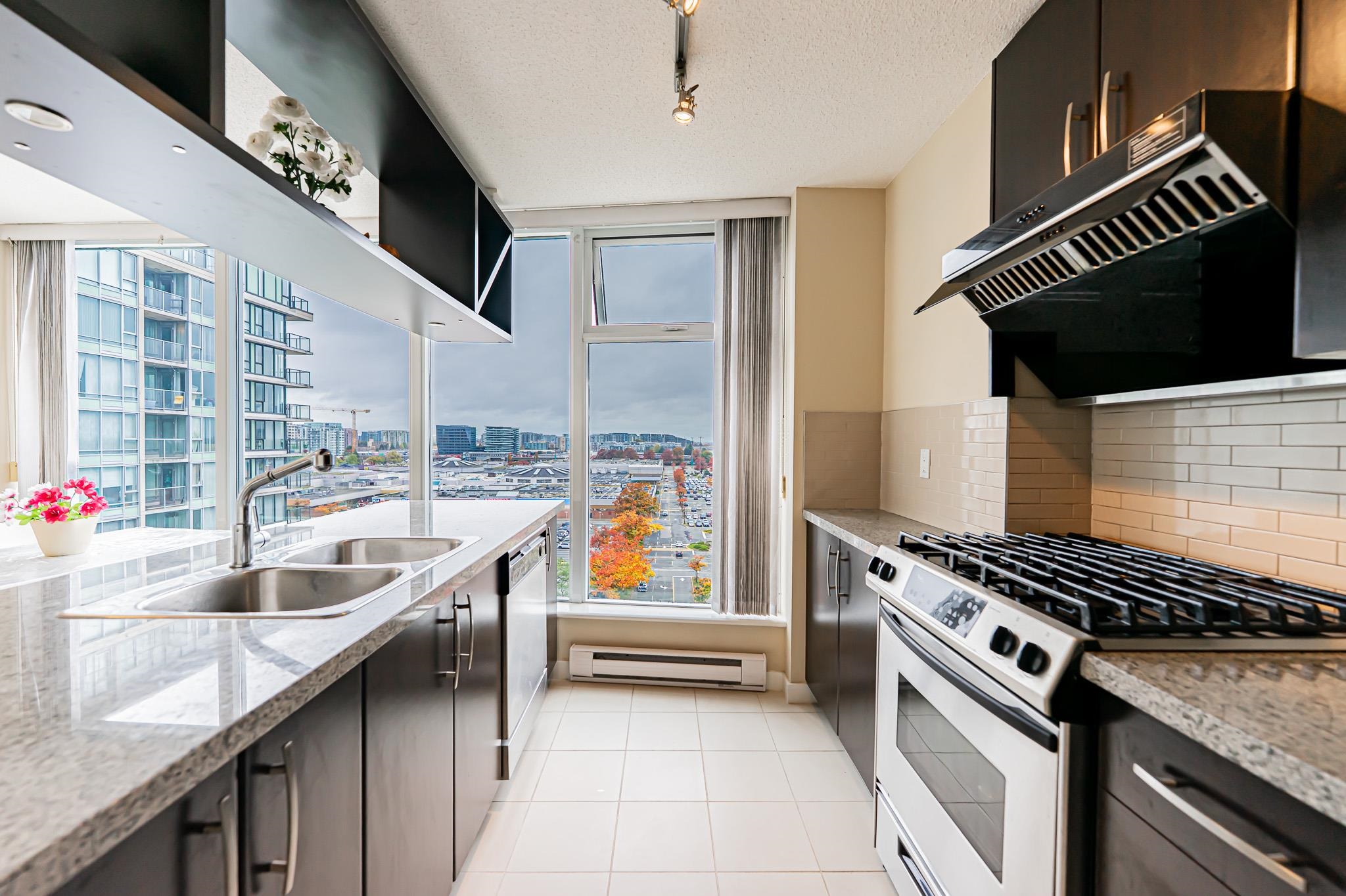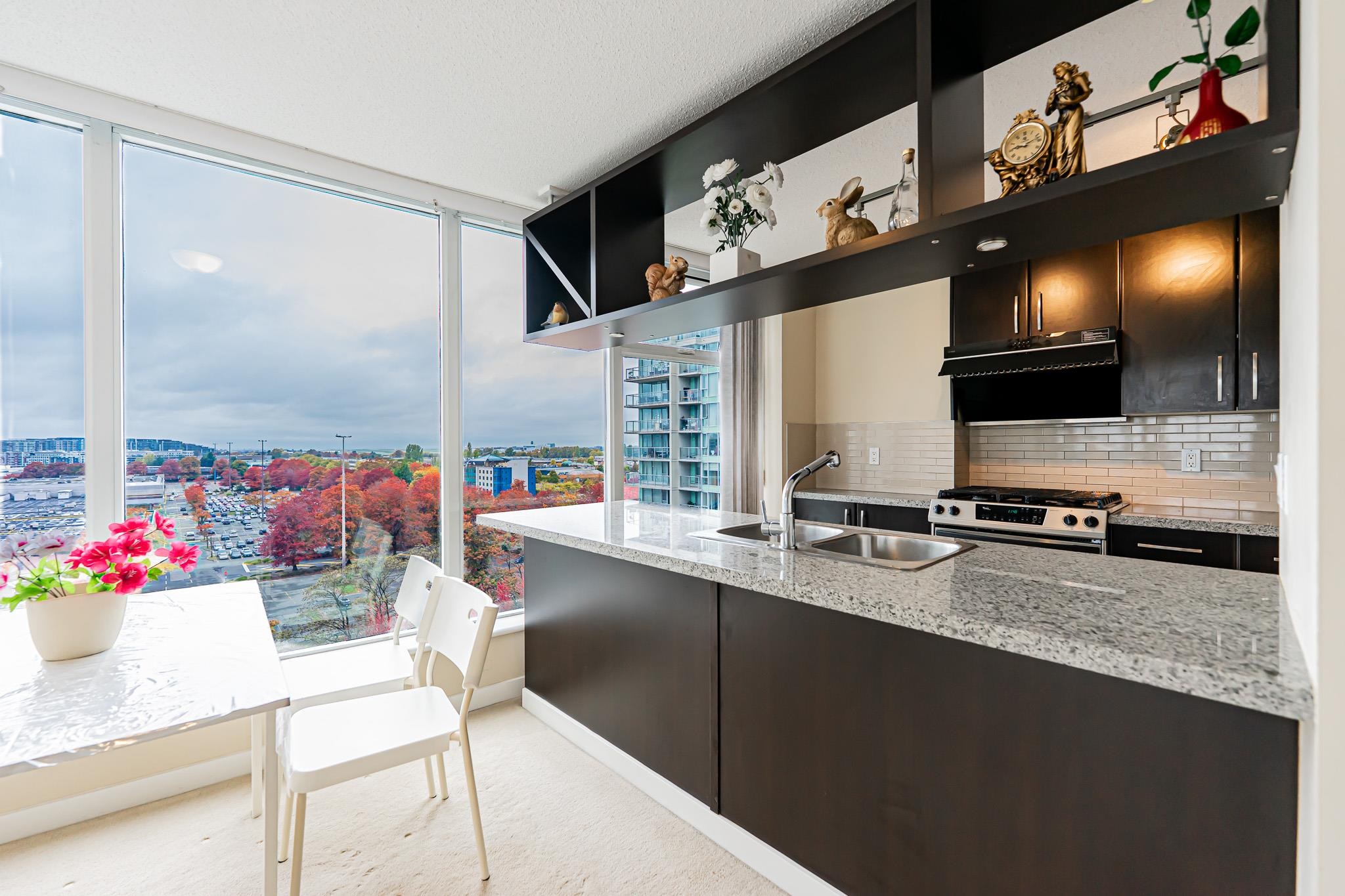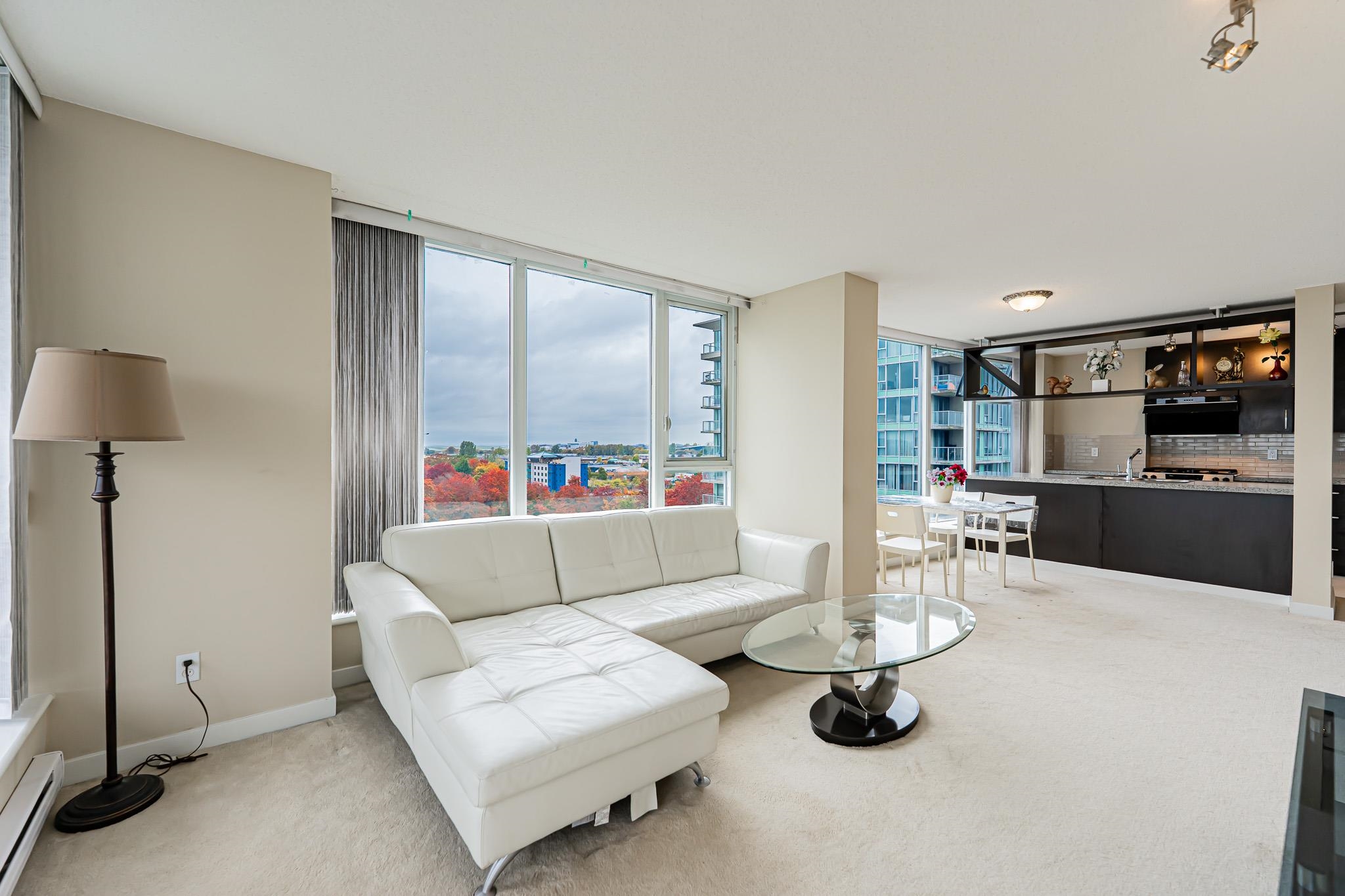Quite large and lots of natural light apartment. 978 Sqt, 2 bdrms, 2 baths corner unit at Seasons built by Polygon, 20' x 5' balcony with city & mountain views. One underground parking & 1 storage locker. close to Lansdowne Mall, Kwantlen College & Skytrain