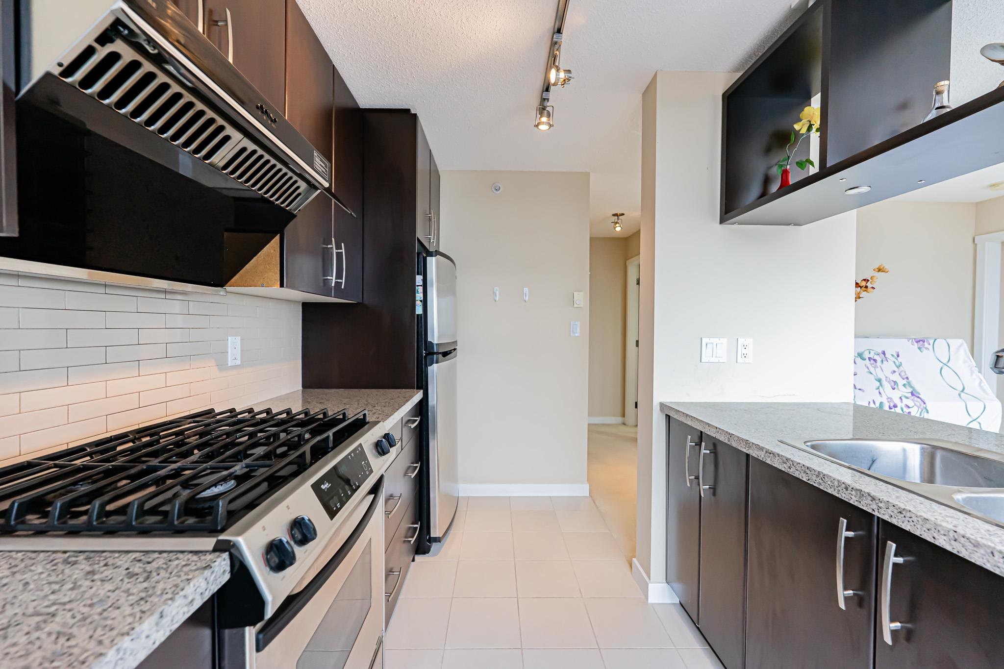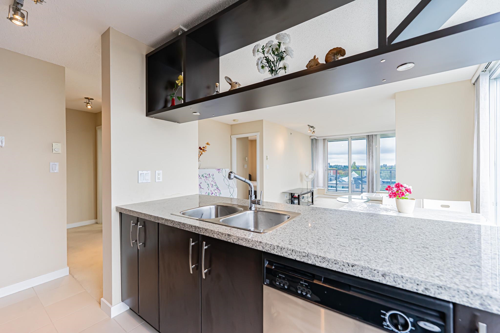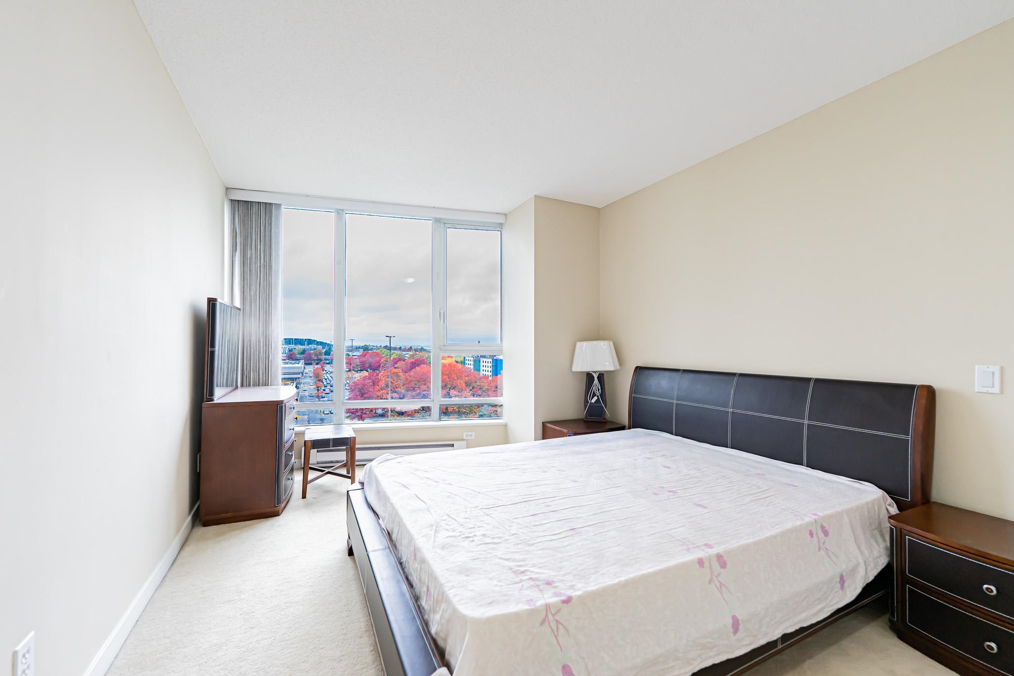 Quite large and lots of natural light apartment. 978 Sqt, 2 bdrms, 2 baths corner unit at Seasons built by Polygon, 20' x 5' balcony with city & mountain views. One underground parking & 1 storage locker. close to Lansdowne Mall, Kwantlen College & Skytrain