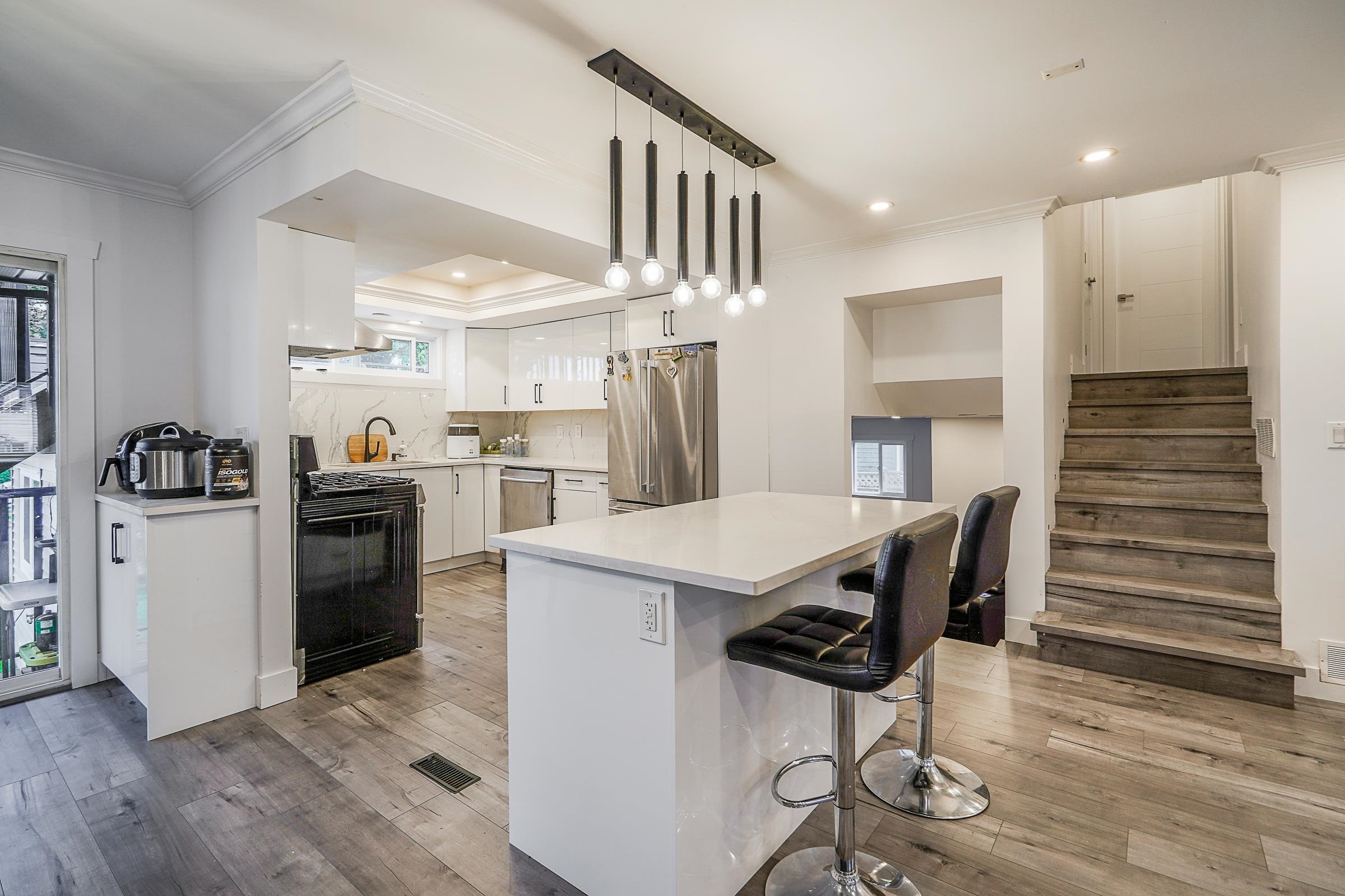 Fully renovated big house in prestigious neighborhood of Fleetwood. Centrally located house on a big lot. Main level features open layout with spacious kitchen, Living room, formal dinning area, family room and 2 piece powder room. 1 bedroom basement suite in the 3rd level with 2 bedroom basement suite in the back (ground level). Upper level features 3 bedroom and 2 washroom. Master bedroom leads to HUGE DECK 33'2 x 21'6 . Close to K-7 Coyote Elementary & 8-12 Fleetwood Park Secondary. Ample parking with do...