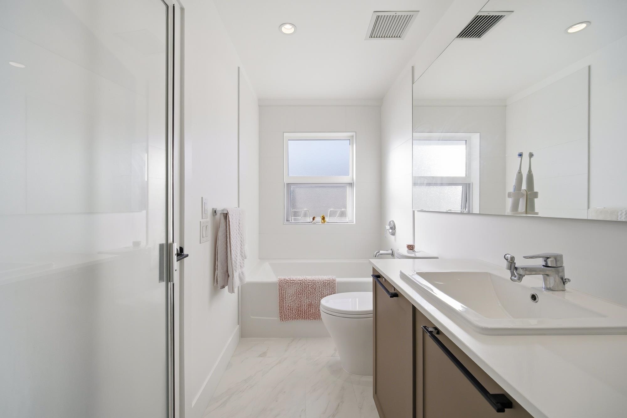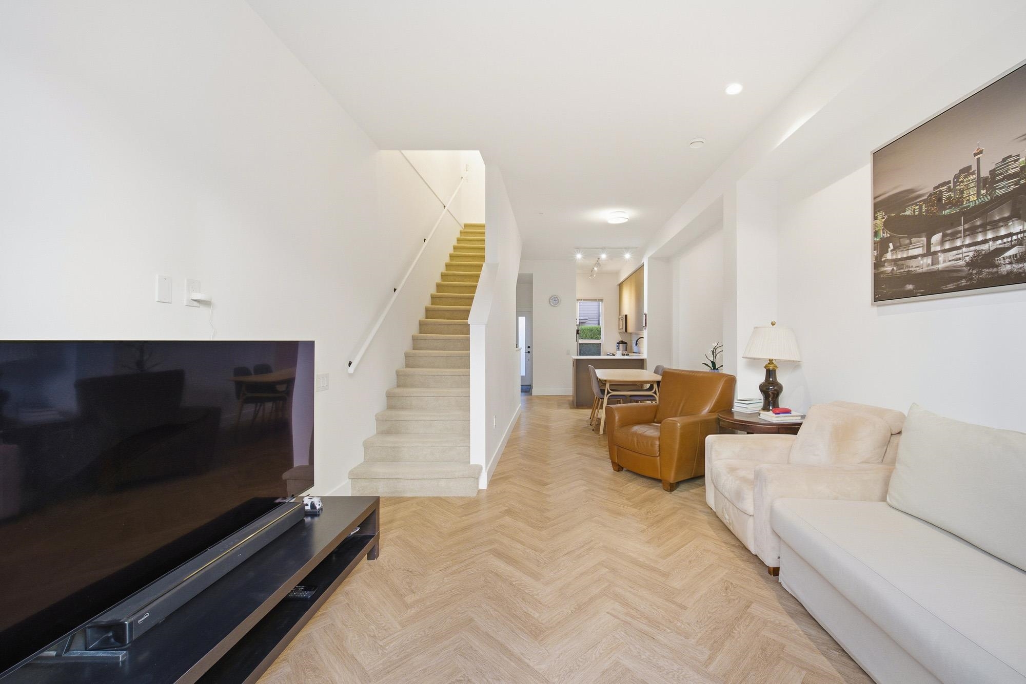 Welcome to FRASER by Mosaic, located in the heart of university at SFU. This modern 3 Beds+Den Townhouse offers 1,623 sf of stylish living with 10’ ceilings on the main and 9' ceilings on the top floor. Open-concept main level features a Shaker Kitchen w KichenAid S&S appliance, quartz countertops, oversized windows, radiant in-floor heating, and a fenced Patio. A huge Den at lower floor which can be turned into an office or 4th bedroom. The upper floor features 2 bedrooms as well as a laundry room with sto...
