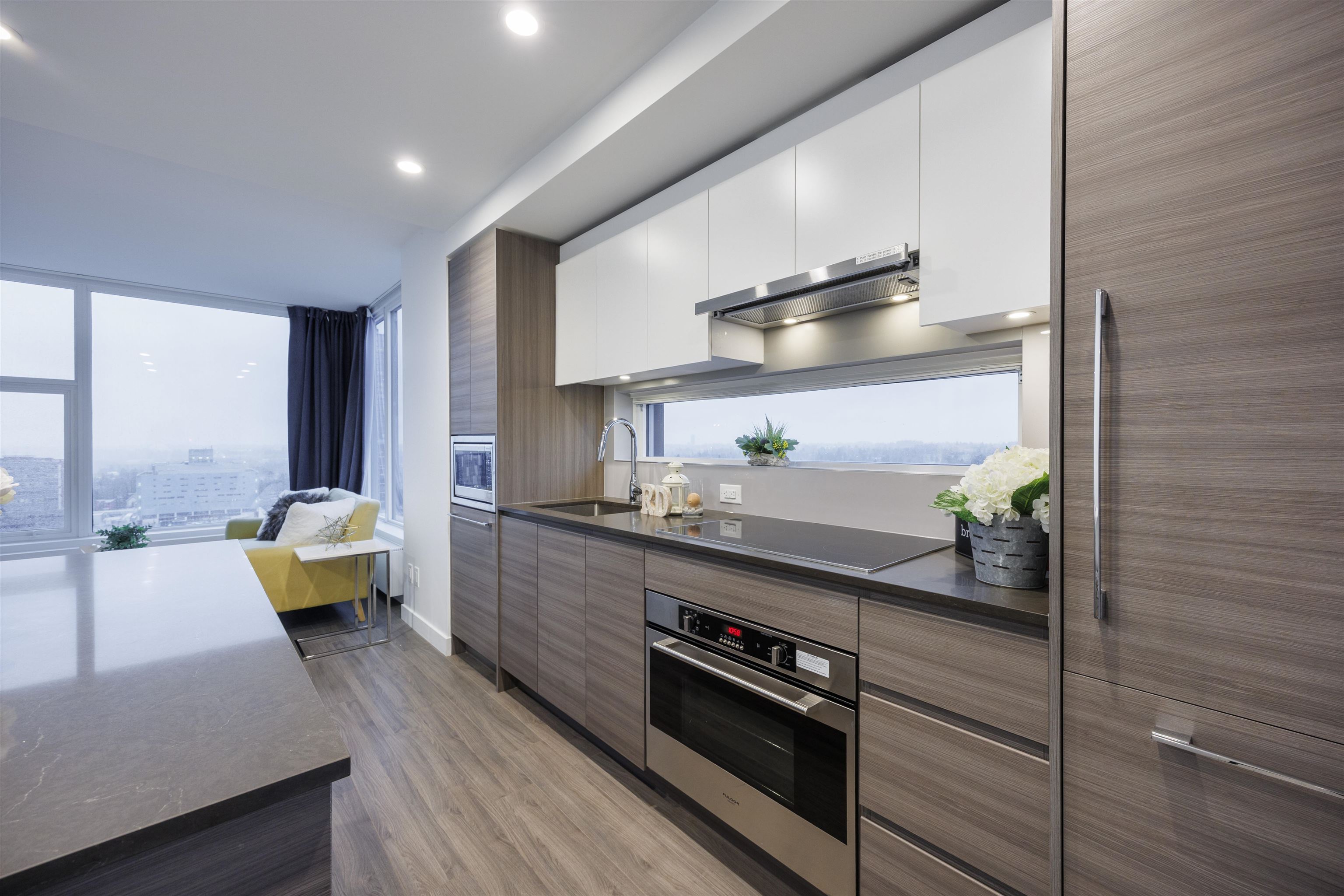 KING GEORGE HUB Two by PCI Developments — an award-winning, transit-oriented community just steps from King George SkyTrain Station.This bright 2-bedroom, 2-bathroom home offers high-end finishes and premium appliances, including a Fulgor Milano wall oven, induction cooktop, quartz countertops, and durable laminate wood flooring throughout. Enjoy an exceptional lineup of amenities: GYM, yoga studio, rooftop lounge with BBQ area, games room, theatre, children’s playground, bike room, and more. Unbeatable loc...