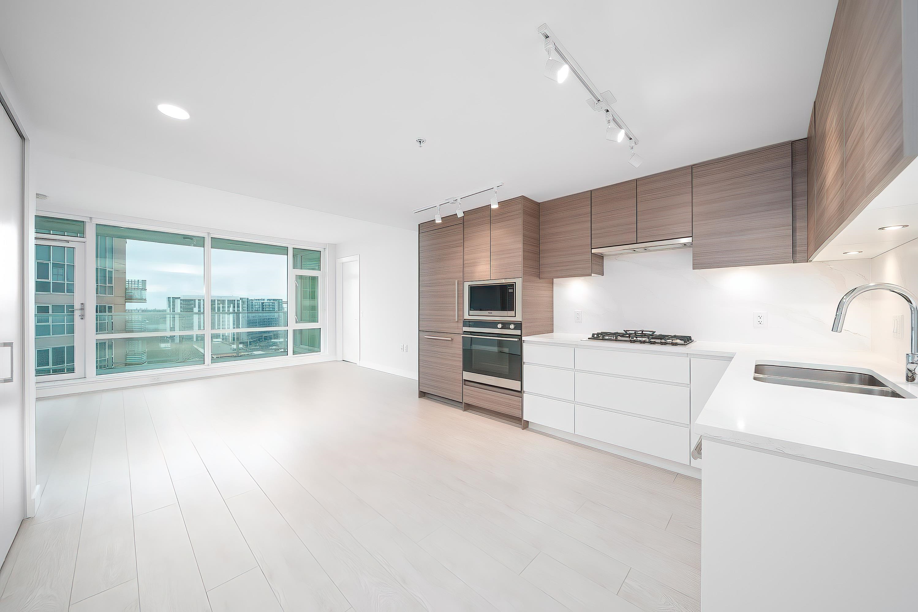 Welcome to PRIMA built by Robert Bosa's Quorum Group, high quality brand new 2 beds+2 full bath + 1 large den, north facing, floor-to-ceiling window, bright, open lay-out with air conditioning, good size bedrooms, modern kitchen design with many storage space, high end kitchen appliance. EV parking, just steps to Richmond Centre, bus and Skytrain Station, the best location in Richmond, easy to show.