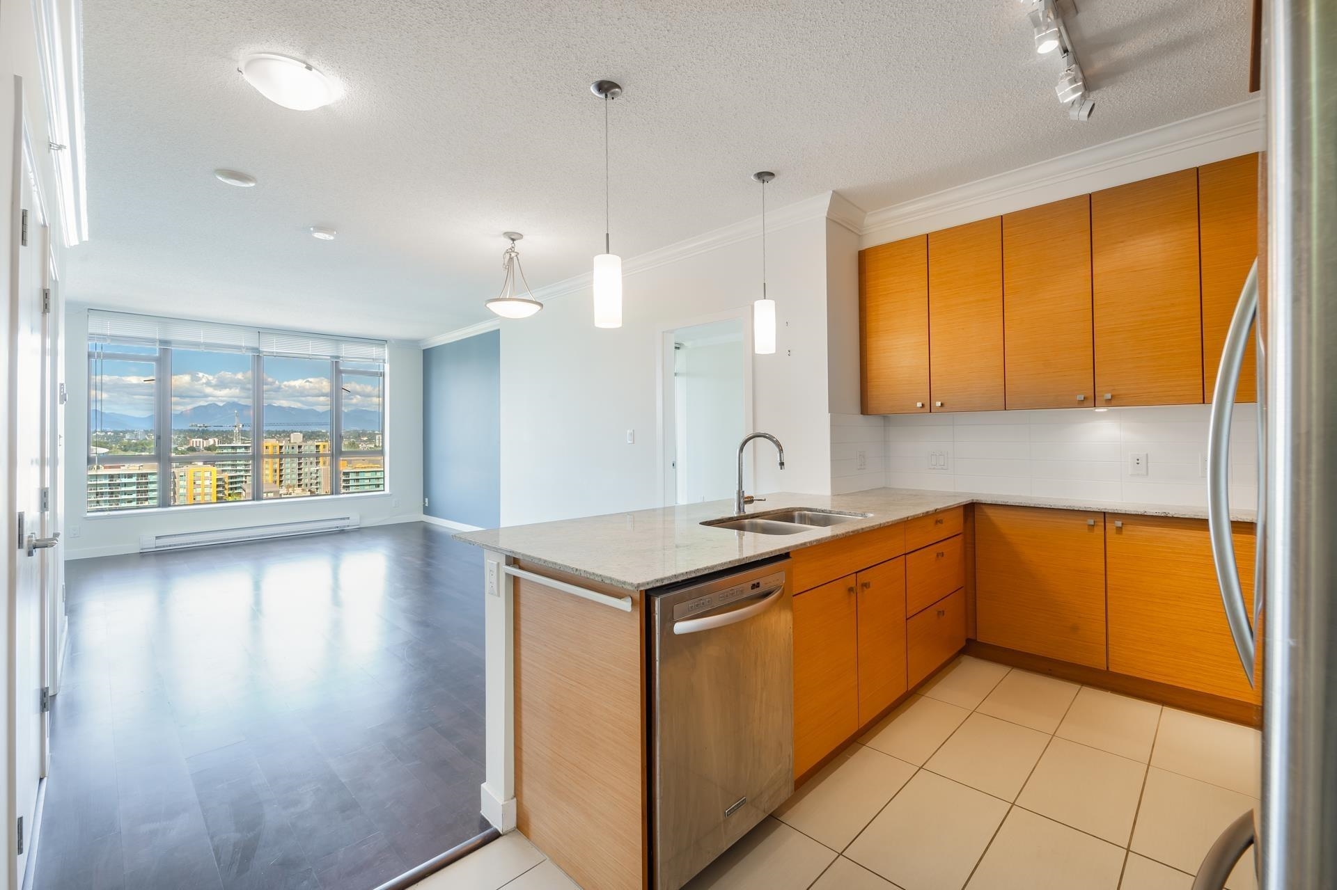 Flo by Onni, very central location in Richmond. Best layout and no waste area. Good mountain and city and river views. Walking distance to Richmond centre, Brighouse skytrain station, Richmond hospital and lots of banks and restaurants. Double balconies to enjoy the views. Hardwood flooring throughout. Both bedrooms could be ensuite. Great amenities include an outdoor pool and hot tub, a party room with a billiards table and a complete Gym.
