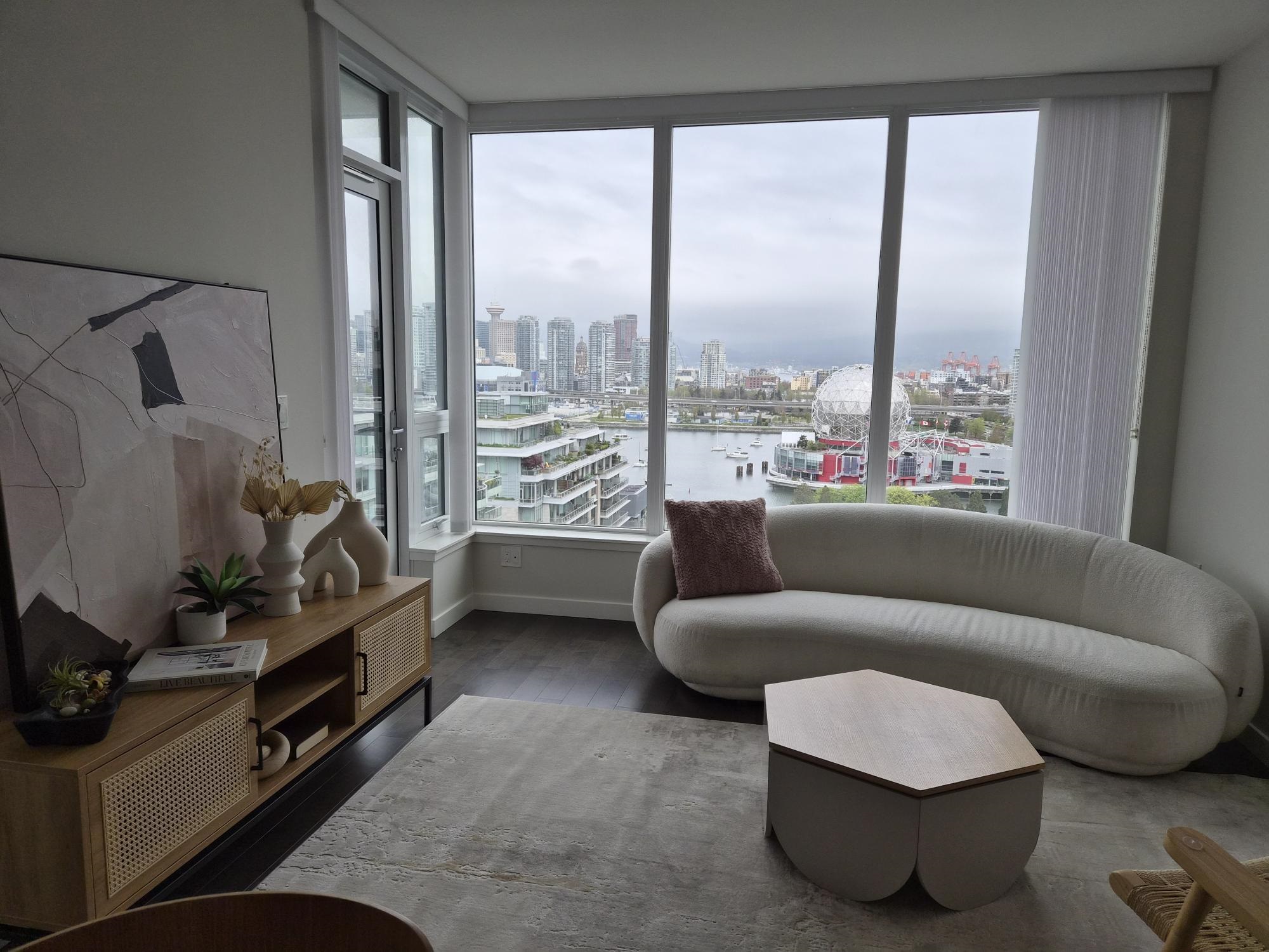 Relax and enjoy the beautiful city, mountain and False Creek view from this 3 bedroom + den suite at Pinnacle on the Park. This northwest corner home includes heat pump for heating and cooling comfort, engineered hardwood floors, walk in closet, Bosch stainless appliances, gas cooktop, microwave, dishwasher and Fisher Paykel fridge. Great central location near Save On Foods, restaurants, coffee shops, Olympic Village community centre, seawall and transit. Building amenities include a gym, family lounge, ...