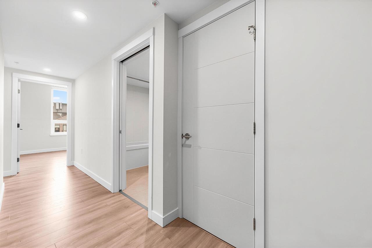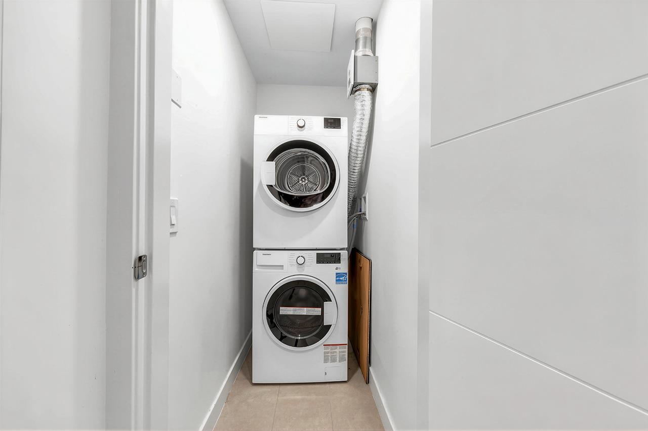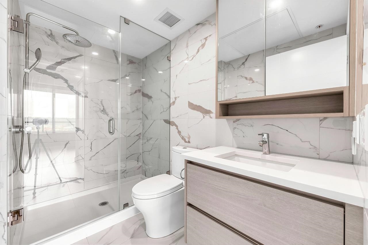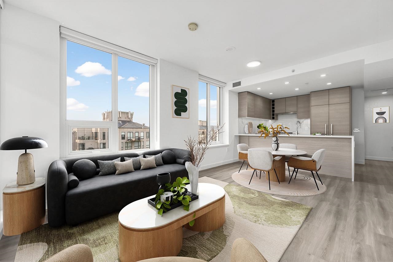 Experience the pinnacle of Downtown New Westminster in this rare, 2-bedroom, 2-bathroom residence at Ovation. Perched high above the city, this home offers unobstructed, panoramic views of the Fraser River and bridge through floor-to-ceiling windows. The gourmet kitchen is a chef's dream, featuring a high-end Bosch and Fisher & Paykel appliance package, integrated cabinetry, and sleek quartz countertops with a waterfall edge. Enjoy year-round comfort with a state-of-the-art air-source VRF climate system pro...