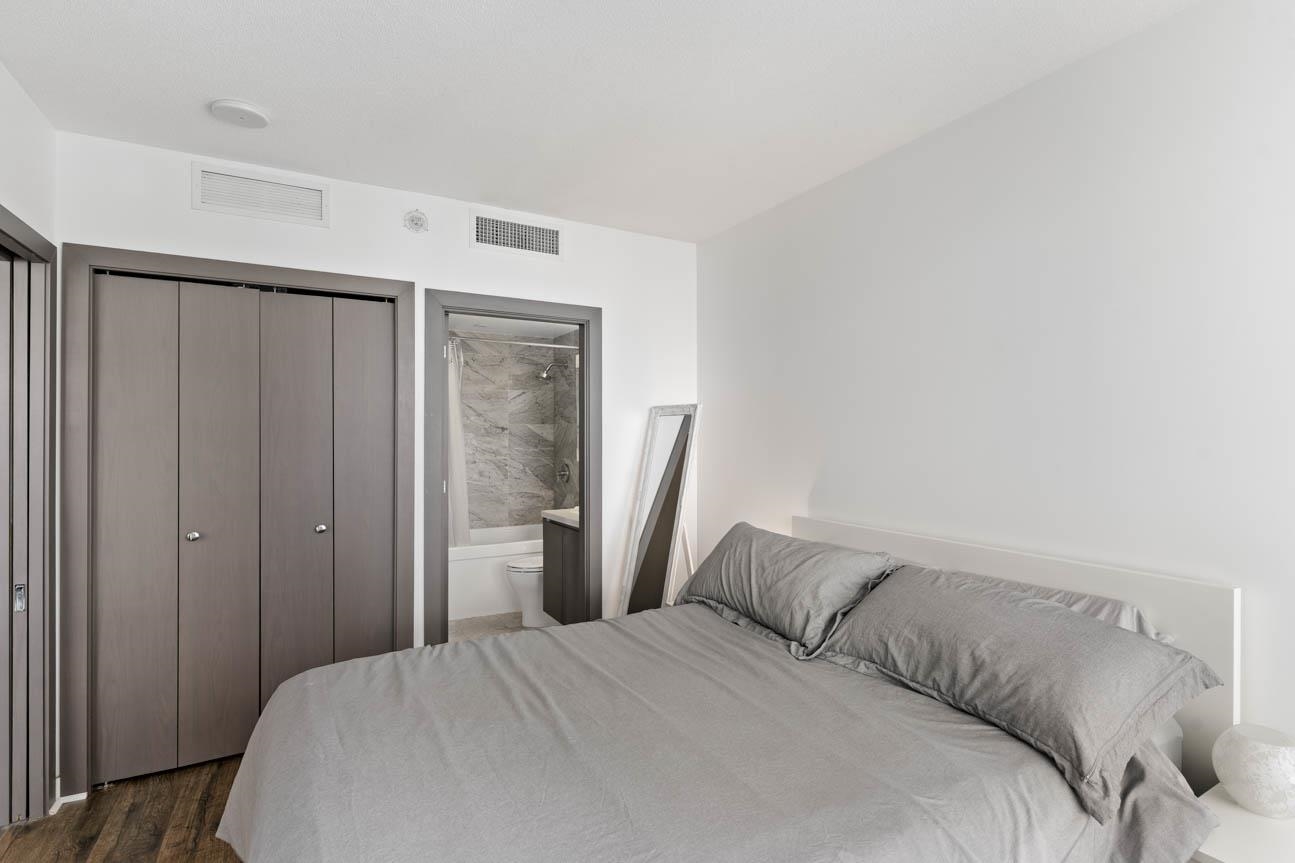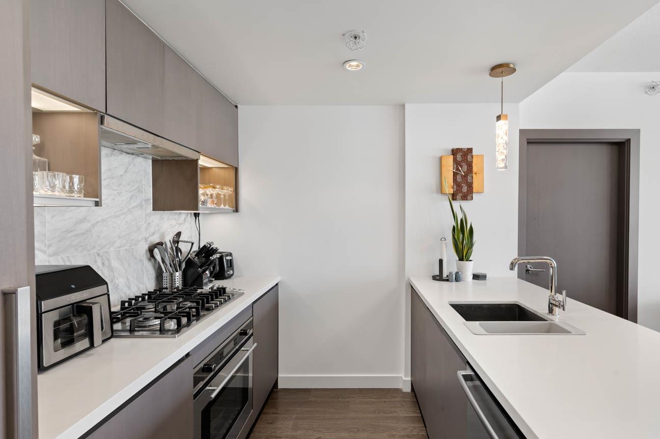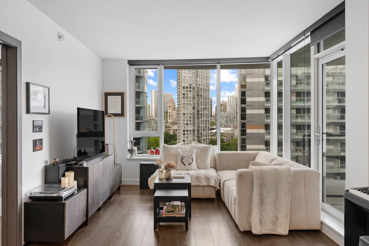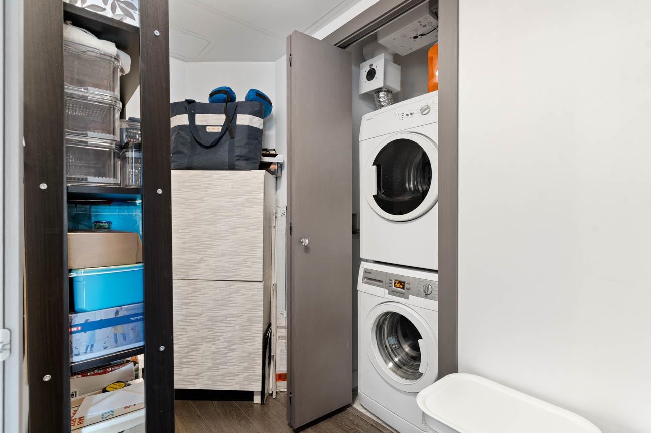 SHOWINGS BY APPT ONLY. Unfurnished 2 Bed, 2 Bath + Flex at One Pacific, 834 sq. ft. on the quiet side of the building with sweeping city and False Creek views framed through The Arc. Thoughtful layout with bdrms on opposite sides of the open living, dining and kitchen area. Features A/C, hardwood floors, gas range, integrated appliances, marble accents, Kohler fixtures and an 8-ft kitchen island . Oversized covered balcony for year-round use. Flex room for office or storage. Amenities include 24-hr concierg...