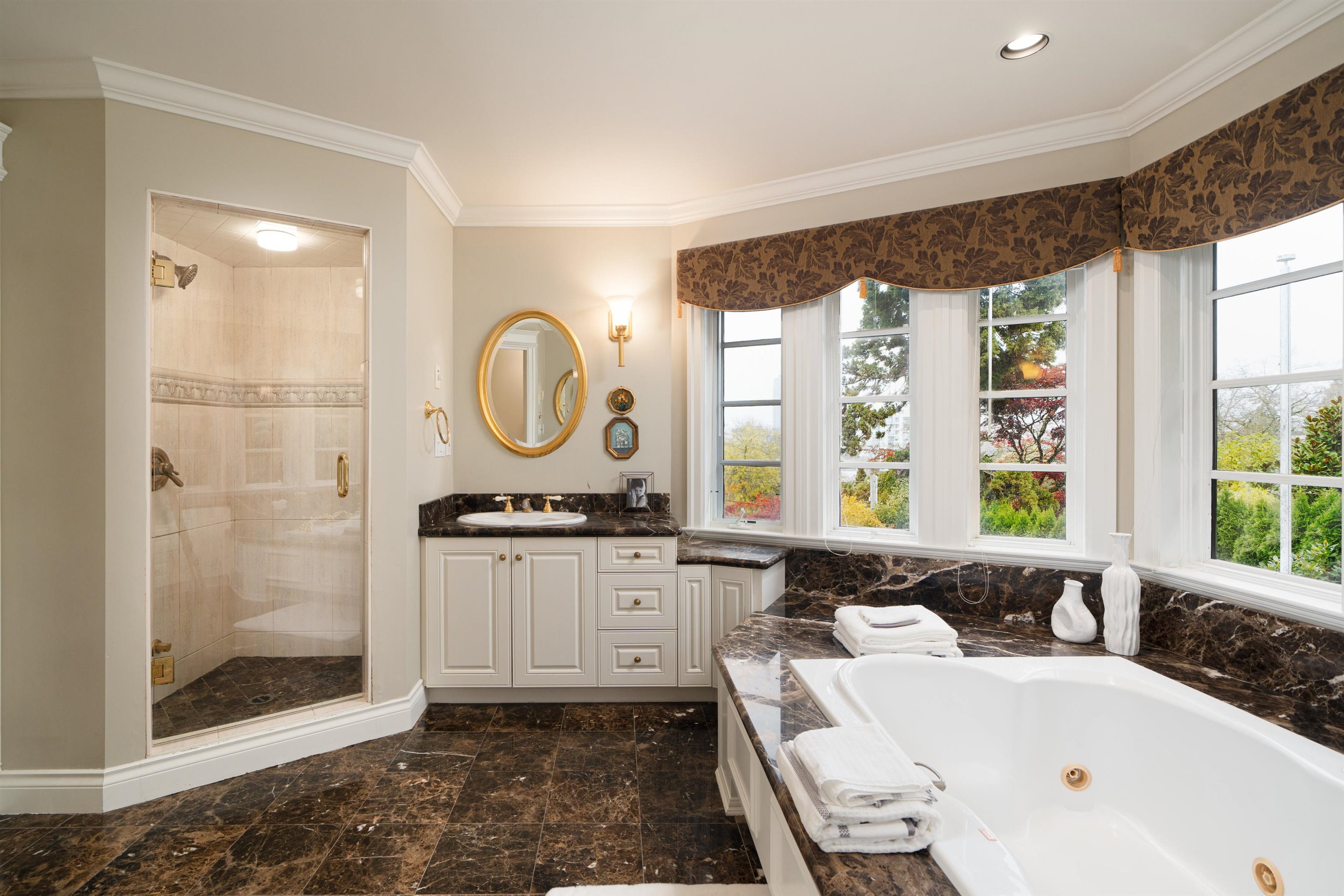 Stately 1st Shaughnessy perched high commanding Mtn, Ocean & DT views! Designed by Hollifield & built-to-last by German masterbuilder as his own residence 1996. Meticulously maintained 7500sf on 17115sf lot. Perfectly proportioned large principal rooms, wide open layout, tiger-stripe oak floors, high ceilings, curved French doors, high wainscotting, Euro chandeliers; exudes serene understated elegance & soothing timeless luxury. Lush mature landscaping surround a private stone garden patio. Large kitchen in...