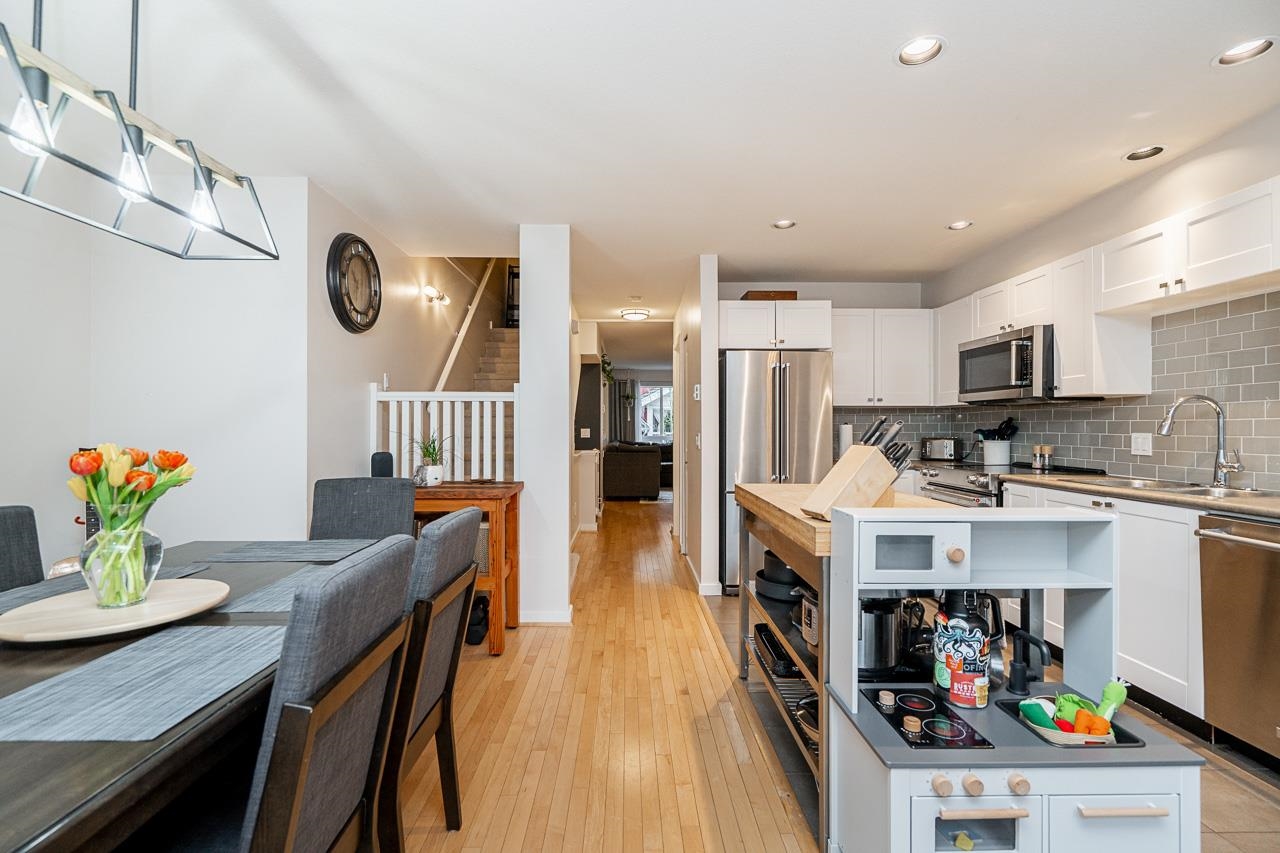 Solay by Adera presents a charming gated community nestled in the desirable Rosemary Heights neighbourhood. This 3 bdrm, 2 bath home is ideally located backing onto a serene private greenbelt. The main floor features a spacious layout with a cozy living/dining area highlighted by a layered stone fireplace. The functional kitchen is complemented by a family area and an additional eating space. Upstairs, the primary bedroom impresses with a vaulted ceiling and a large semi-ensuite while secondary bedrooms and...