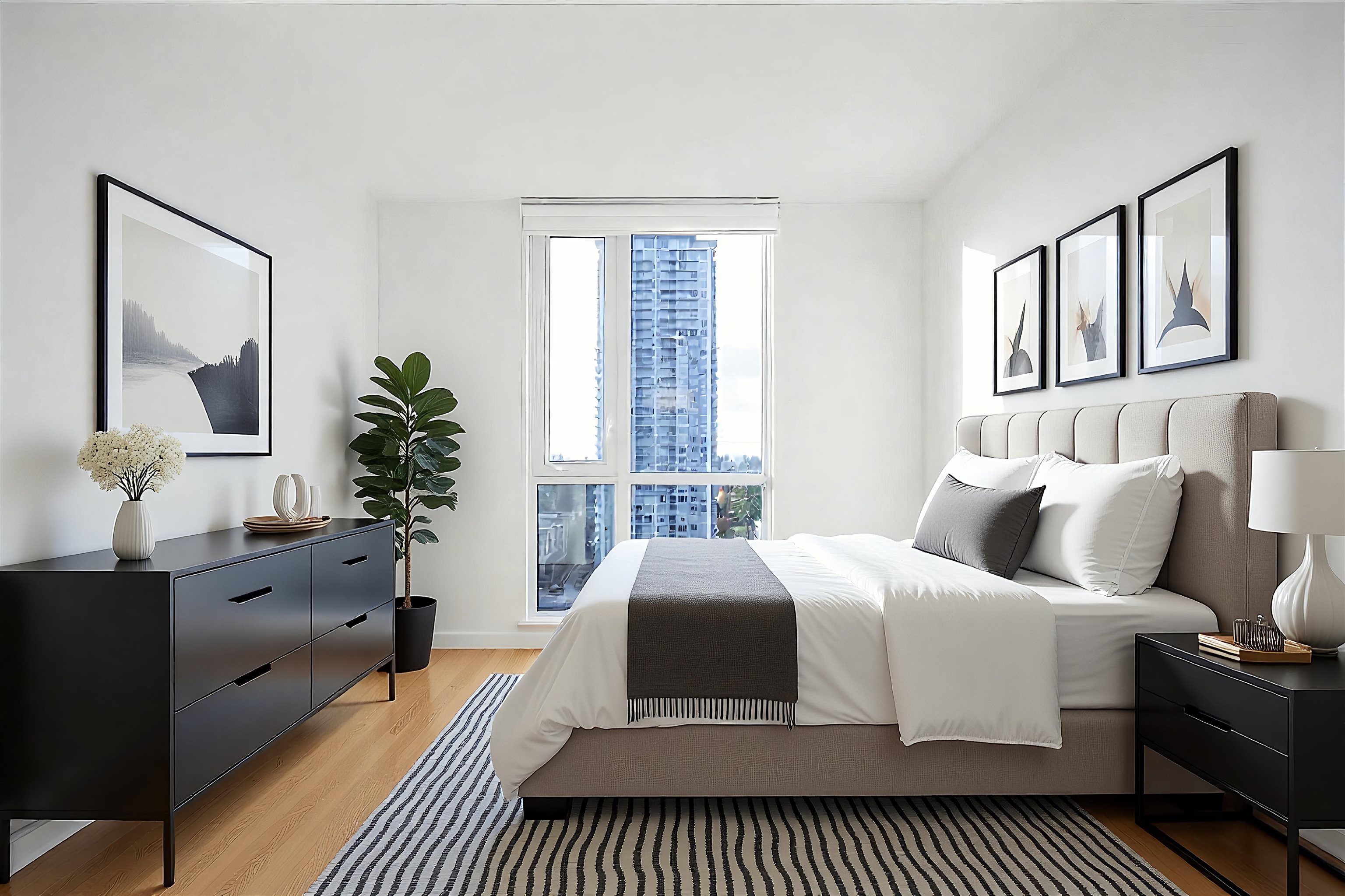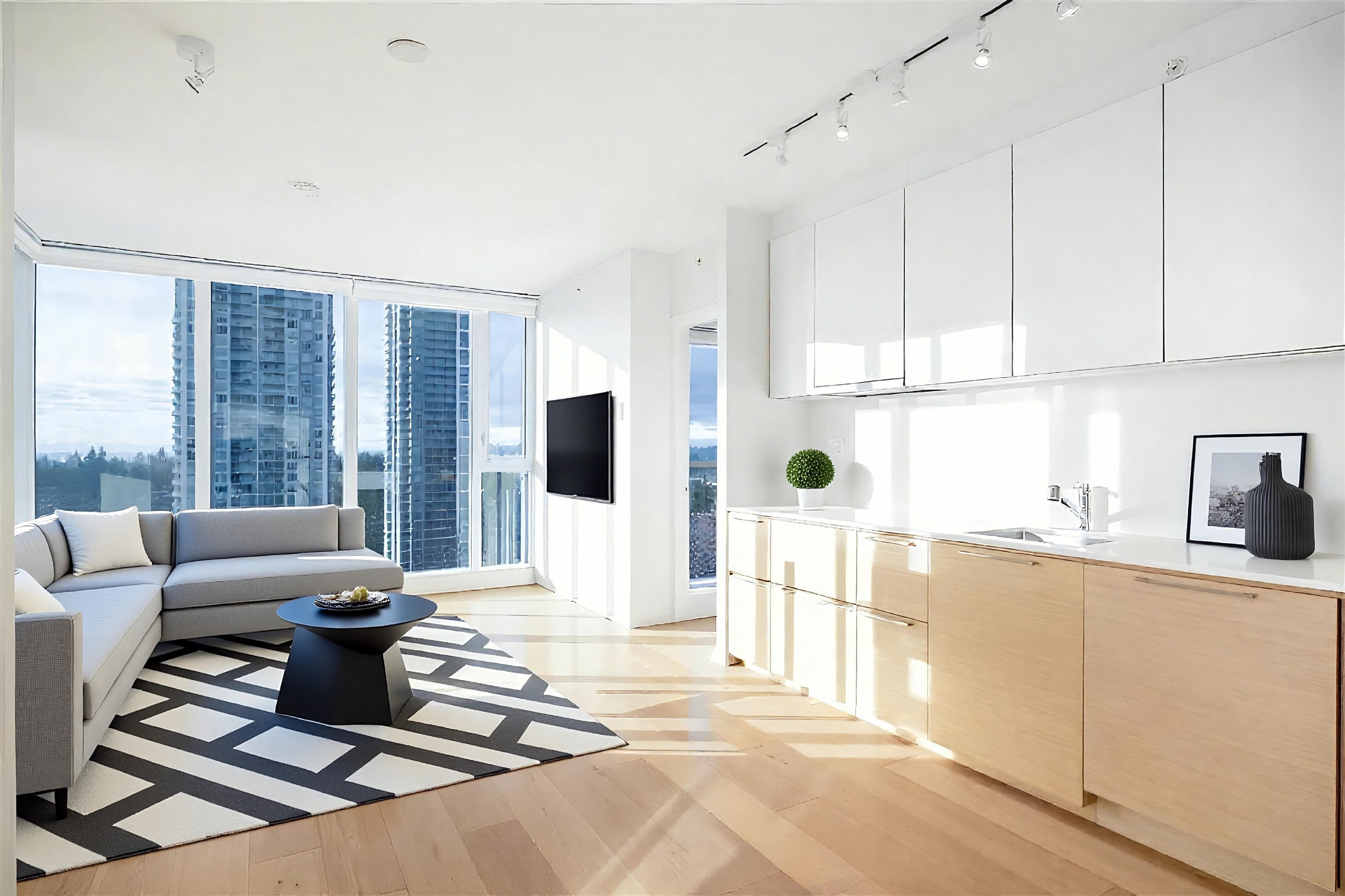 17th Floor SW CORNER UNIT at Prime on the Plaza. True 2 Bed / 2 Full Bath home with one of the best split-bedroom floor plans in the building. Bright and quiet with 9’ ceilings and floor-to-ceiling wraparound windows offering expansive city views and abundant natural light. Well-sized balcony ideal for BBQ. Modern integrated kitchen with European-style appliances, soft-close oak cabinetry and large movable island for a fluid floor plan. Primary bedroom features his & hers closets and spa-inspired ensuite wi...