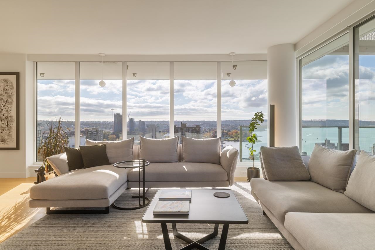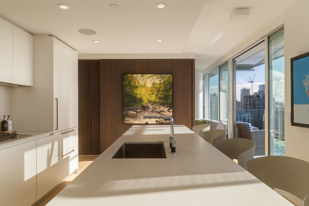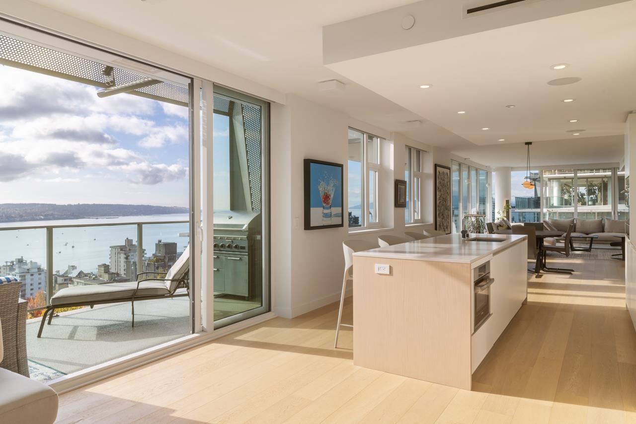 BREATHTAKING SOUTH WEST FACING SUB PENTHOUSE WITH PANORAMIC WATER VIEWS ACROSS ENGLISH BAY! THE SUITE - reimagined since new to take it to the next level in home automation + functional design. A stunning sliding wall system + bespoke window treatments provide flexibility + privacy, while still showcasing the incredible views. Two oversized balconies extend the living space even further. Custom upgrades include Creston home automation, Gaggenau appliances + a spectacular spa room. Entertain, live + work at ...