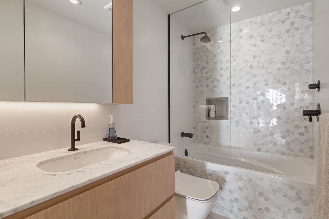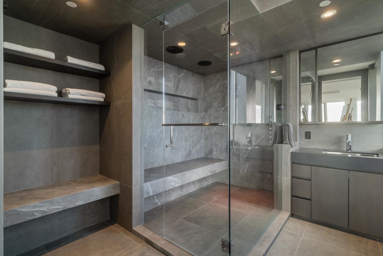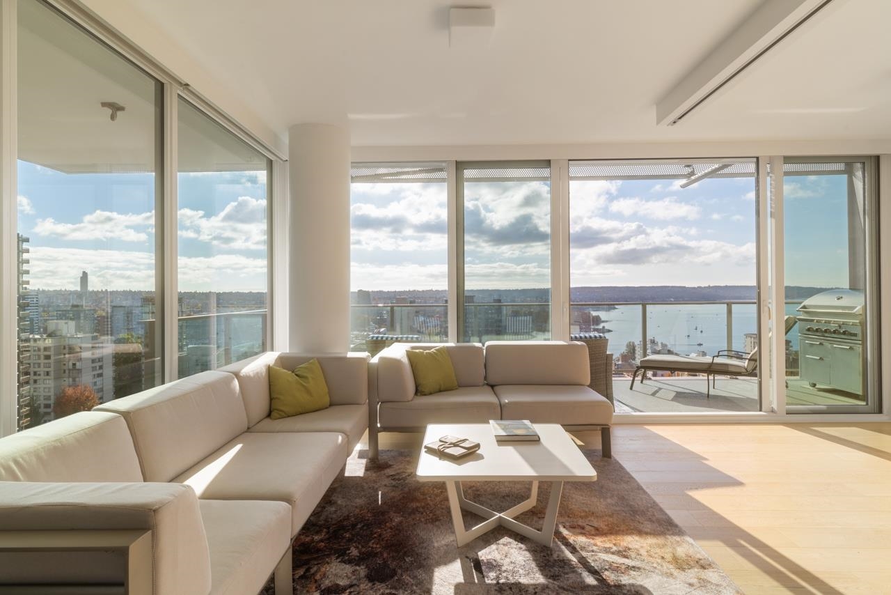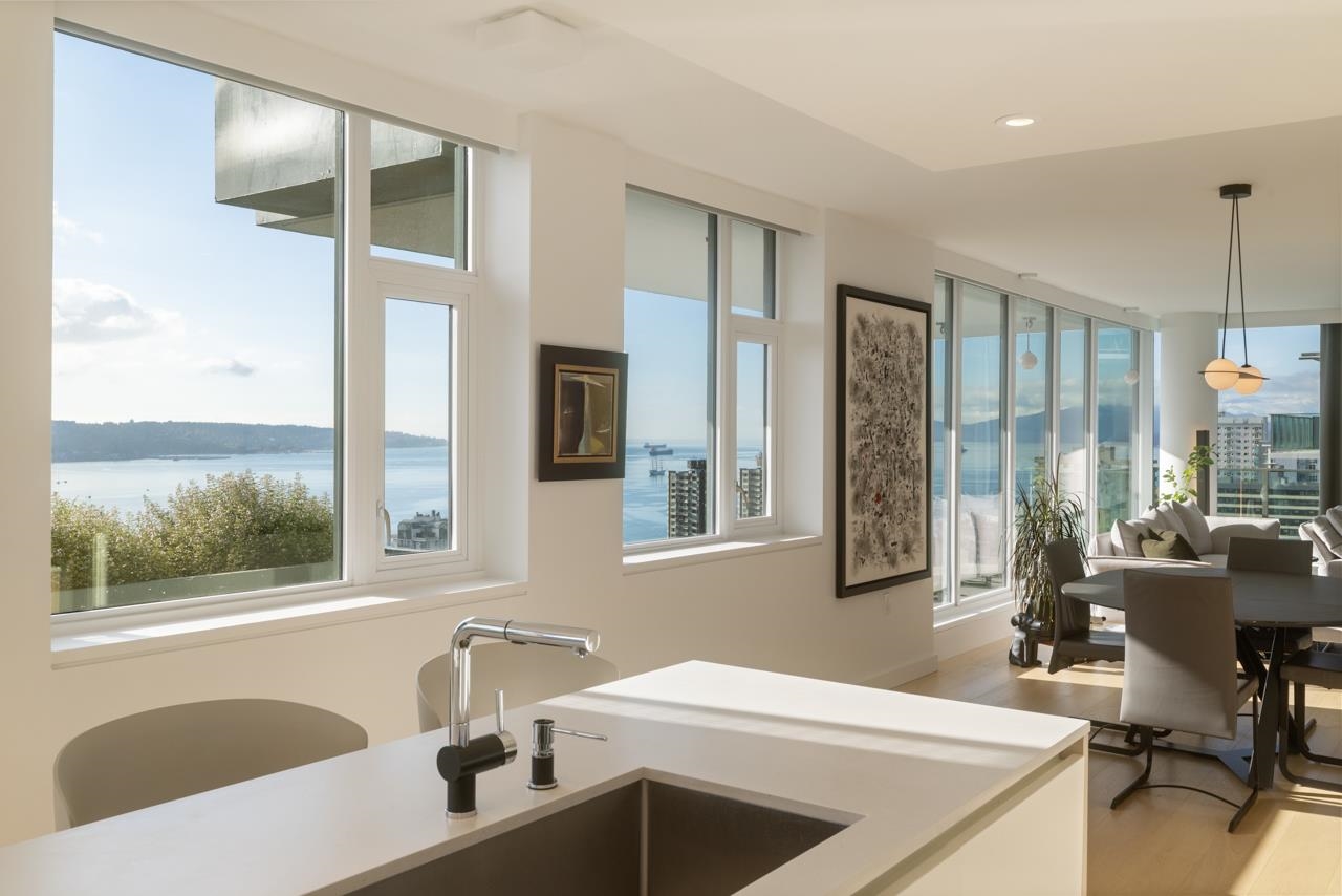 BREATHTAKING SOUTH WEST FACING SUB PENTHOUSE WITH PANORAMIC WATER VIEWS ACROSS ENGLISH BAY! THE SUITE - reimagined since new to take it to the next level in home automation + functional design. A stunning sliding wall system + bespoke window treatments provide flexibility + privacy, while still showcasing the incredible views. Two oversized balconies extend the living space even further. Custom upgrades include Creston home automation, Gaggenau appliances + a spectacular spa room. Entertain, live + work at ...