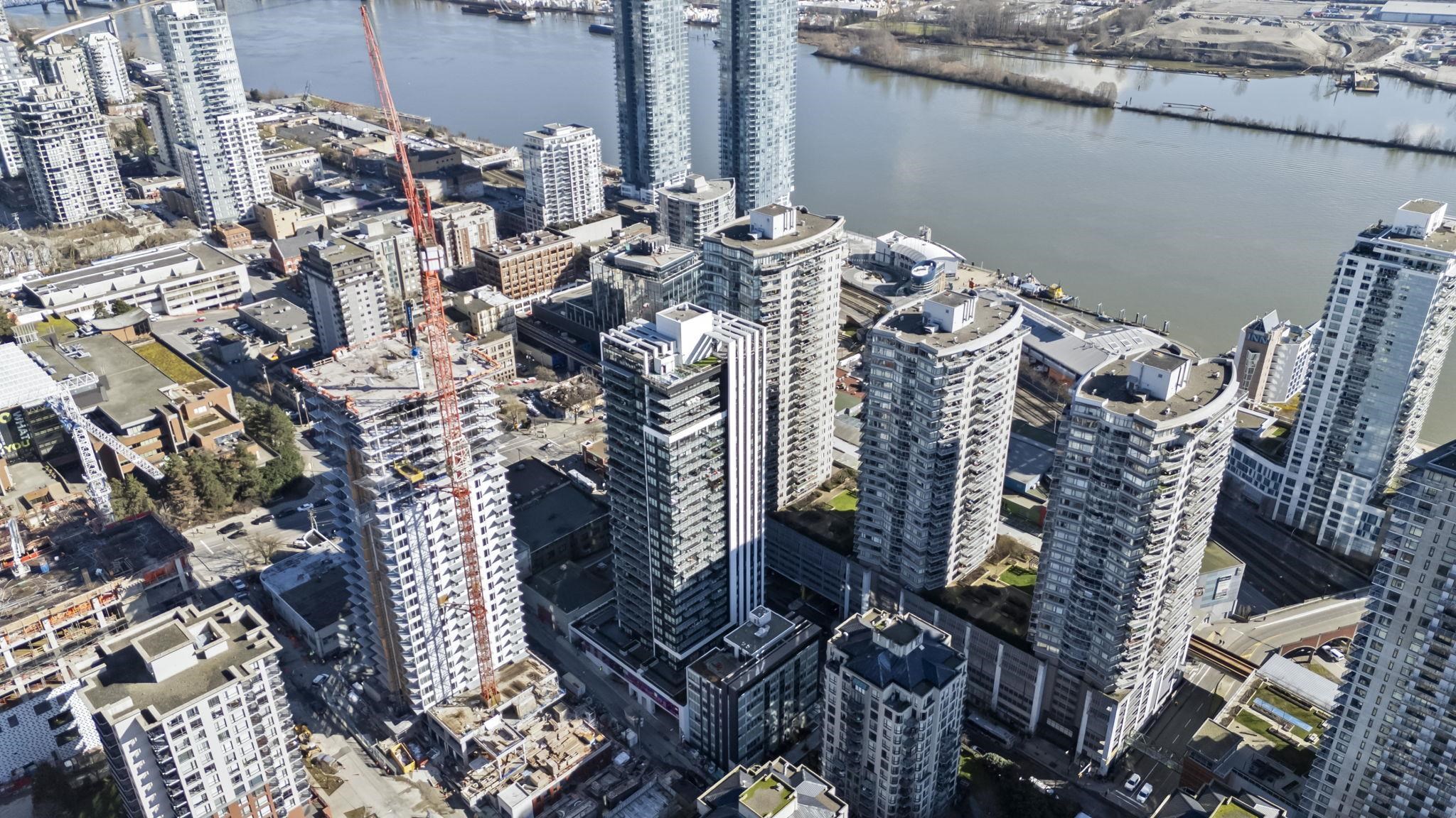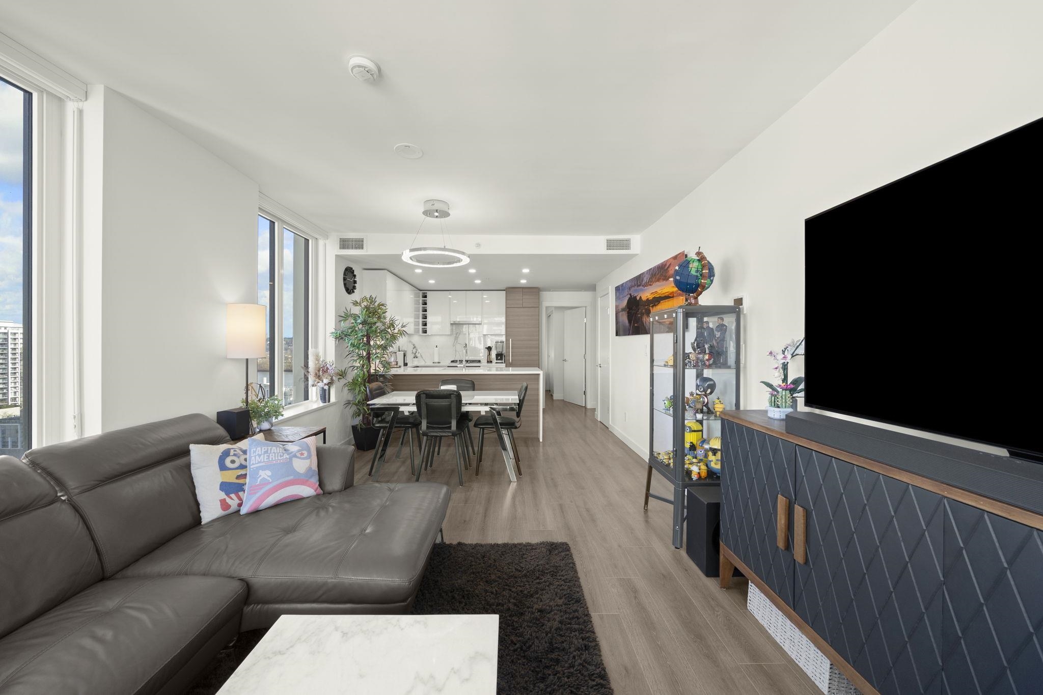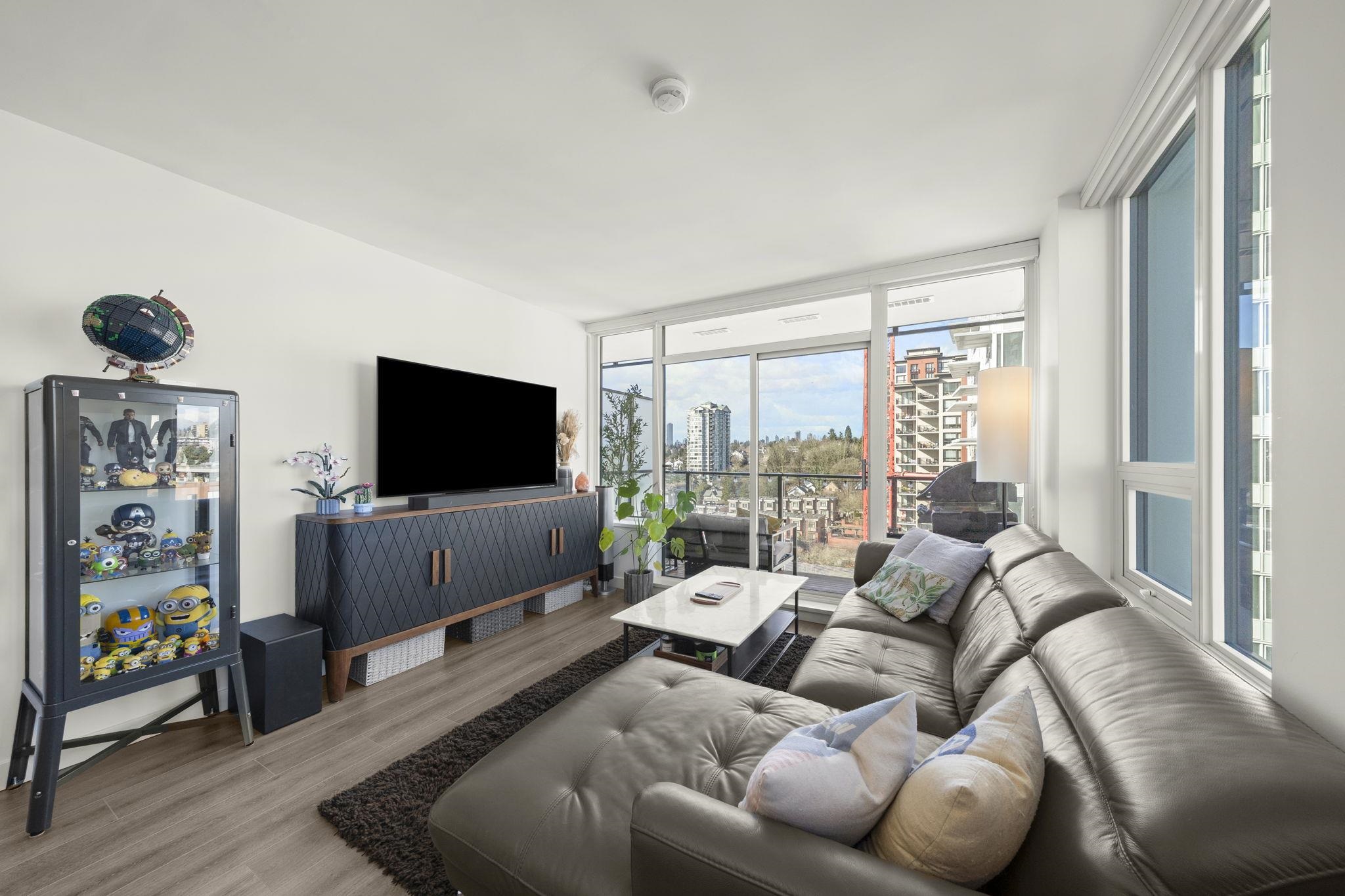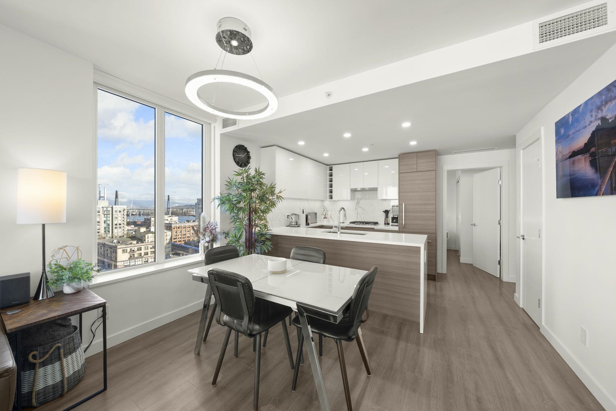 Welcome to Ovation in the heart of New Westminster. This oversized 1 bedroom + den home offers a bright, open-concept layout with generous living and dining space rarely found in newer condos. The large U-shaped kitchen provides excellent counter space and storage, while expansive windows fill the home with natural light and open to a private balcony with vibrant city views. Comfort is built in with heating and cooling included in the strata fees. Residents enjoy premium amenities including concierge servic...