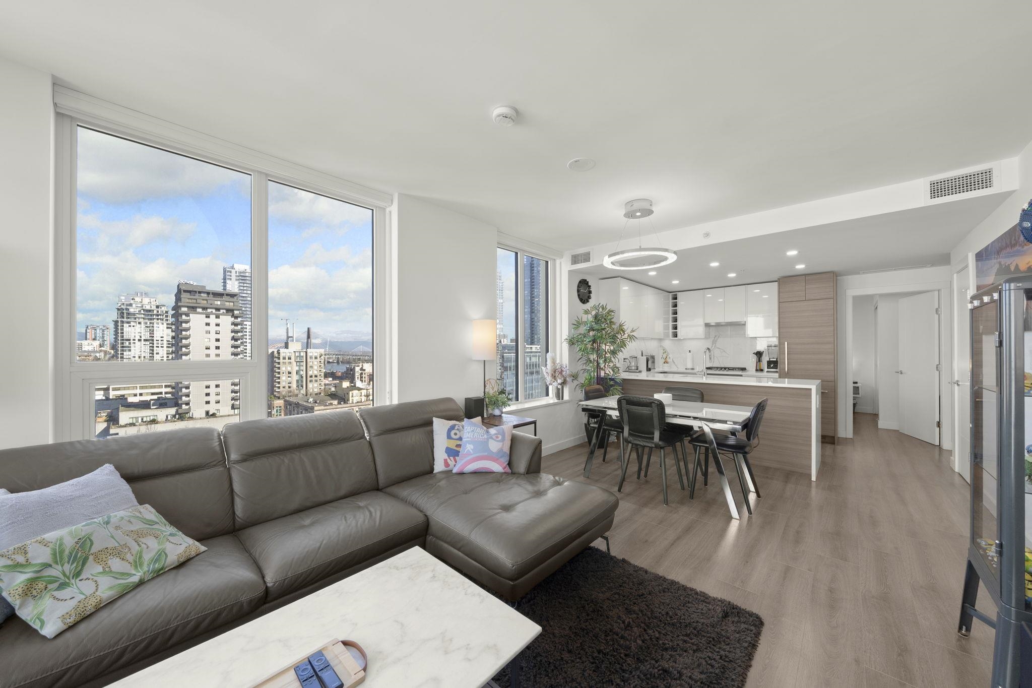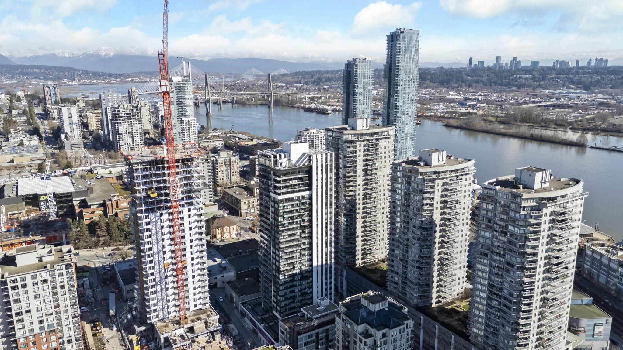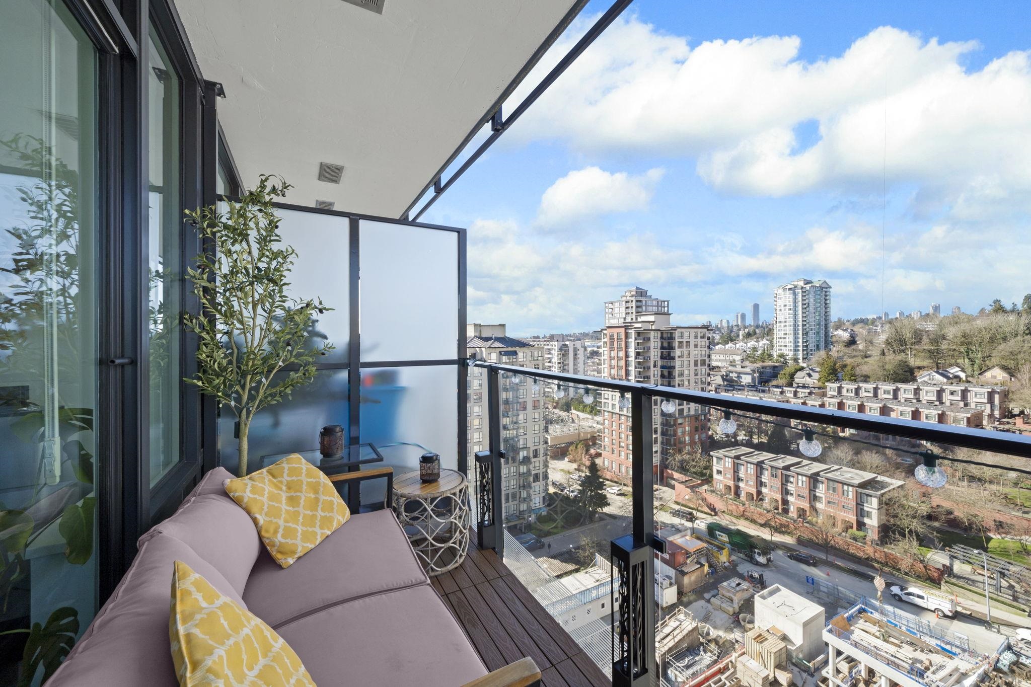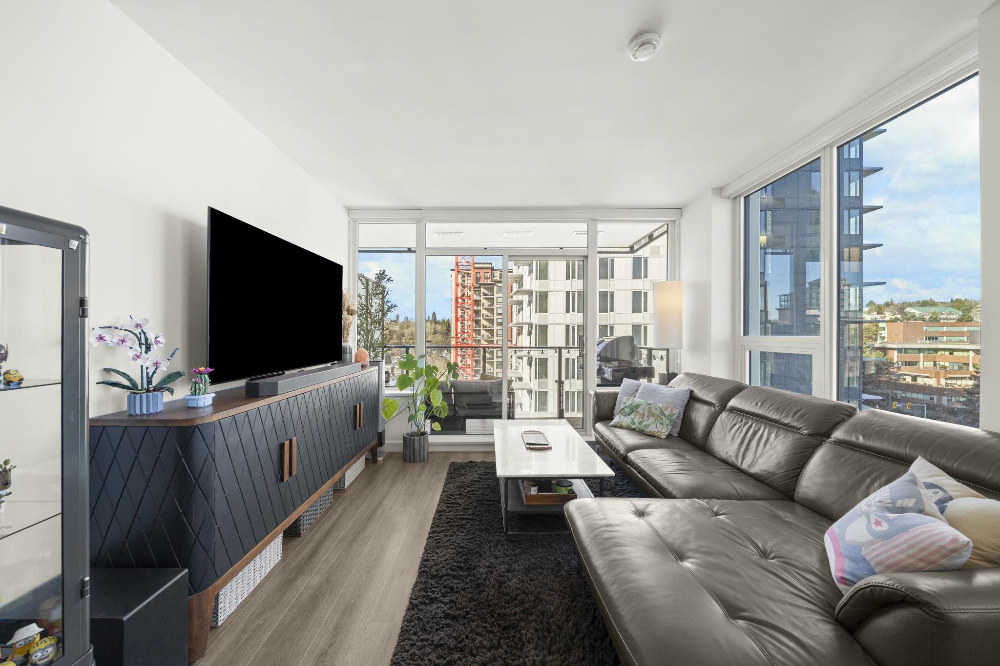 Welcome to Ovation in the heart of New Westminster. This oversized 1 bedroom + den home offers a bright, open-concept layout with generous living and dining space rarely found in newer condos. The large U-shaped kitchen provides excellent counter space and storage, while expansive windows fill the home with natural light and open to a private balcony with vibrant city views. Comfort is built in with heating and cooling included in the strata fees. Residents enjoy premium amenities including concierge servic...