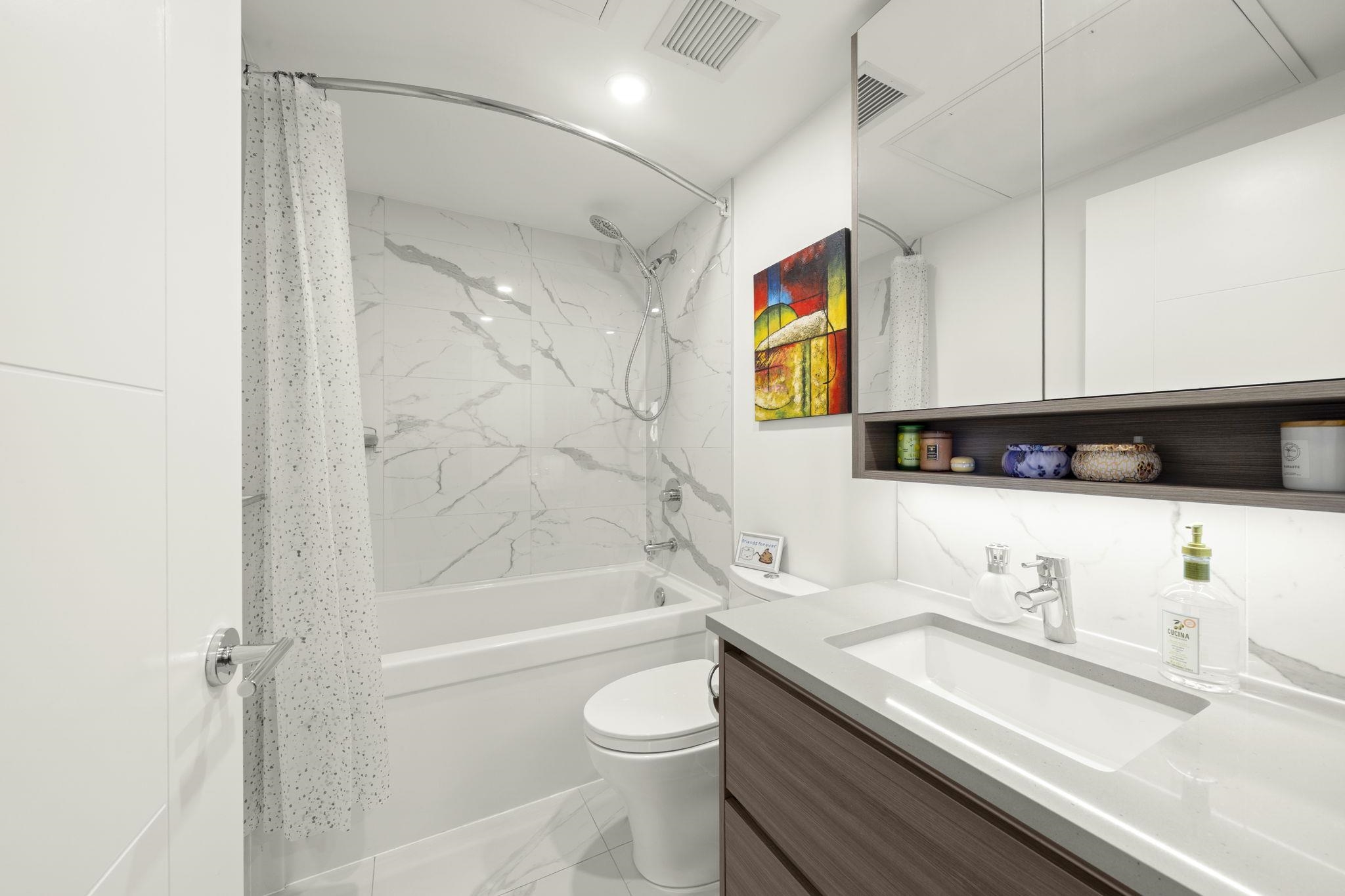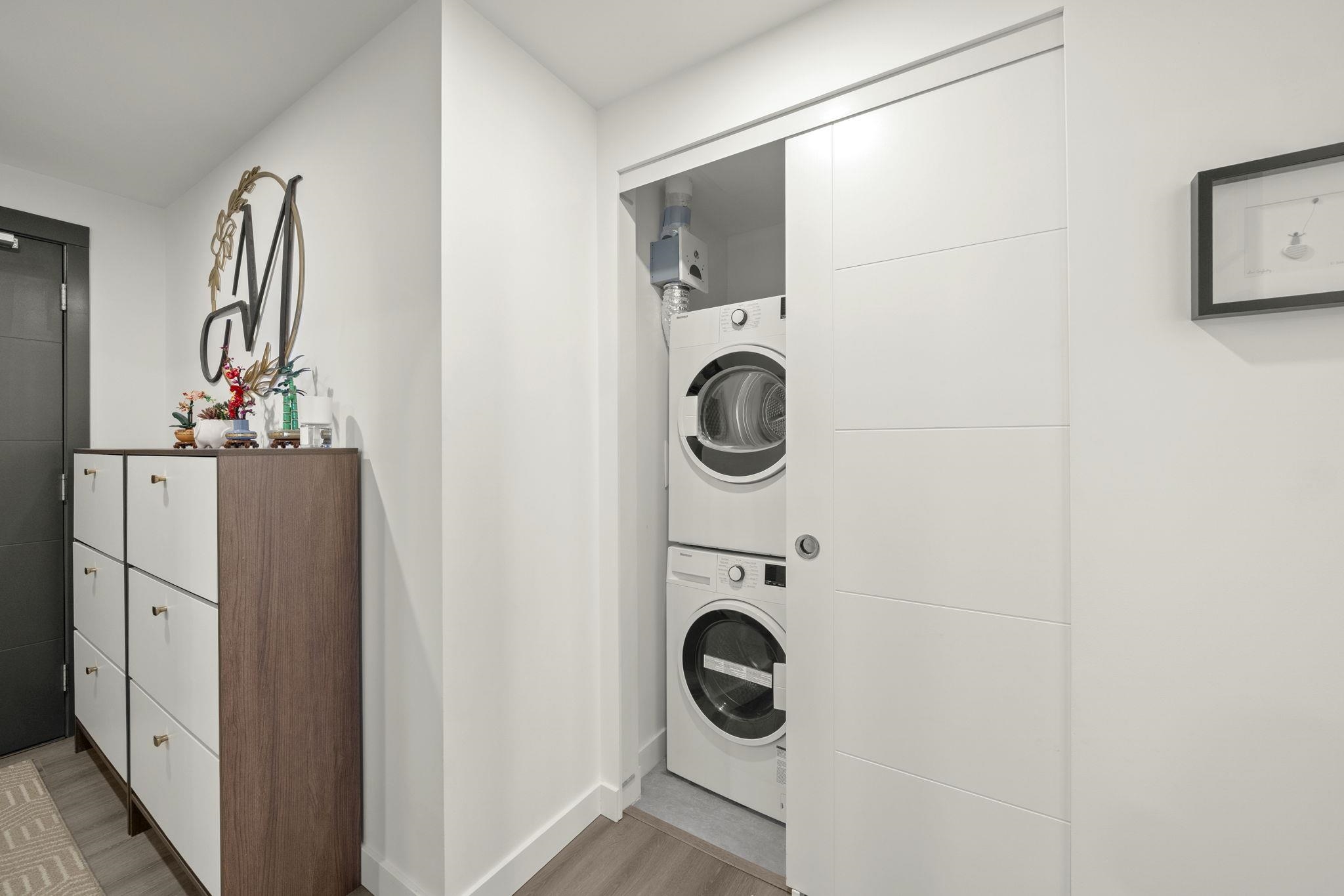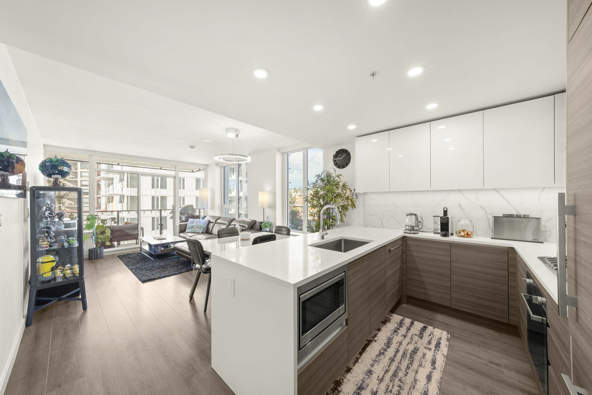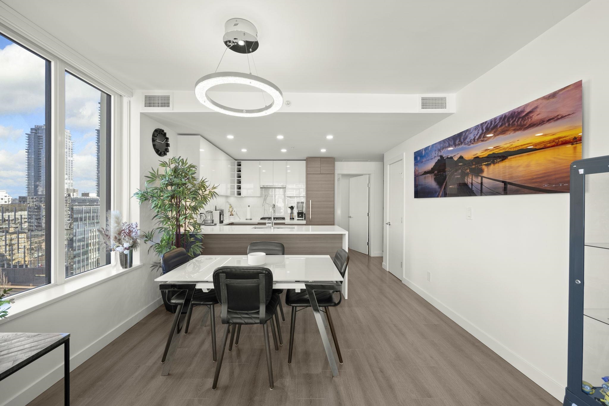 Welcome to Ovation in the heart of New Westminster. This oversized 1 bedroom + den home offers a bright, open-concept layout with generous living and dining space rarely found in newer condos. The large U-shaped kitchen provides excellent counter space and storage, while expansive windows fill the home with natural light and open to a private balcony with vibrant city views. Comfort is built in with heating and cooling included in the strata fees. Residents enjoy premium amenities including concierge servic...