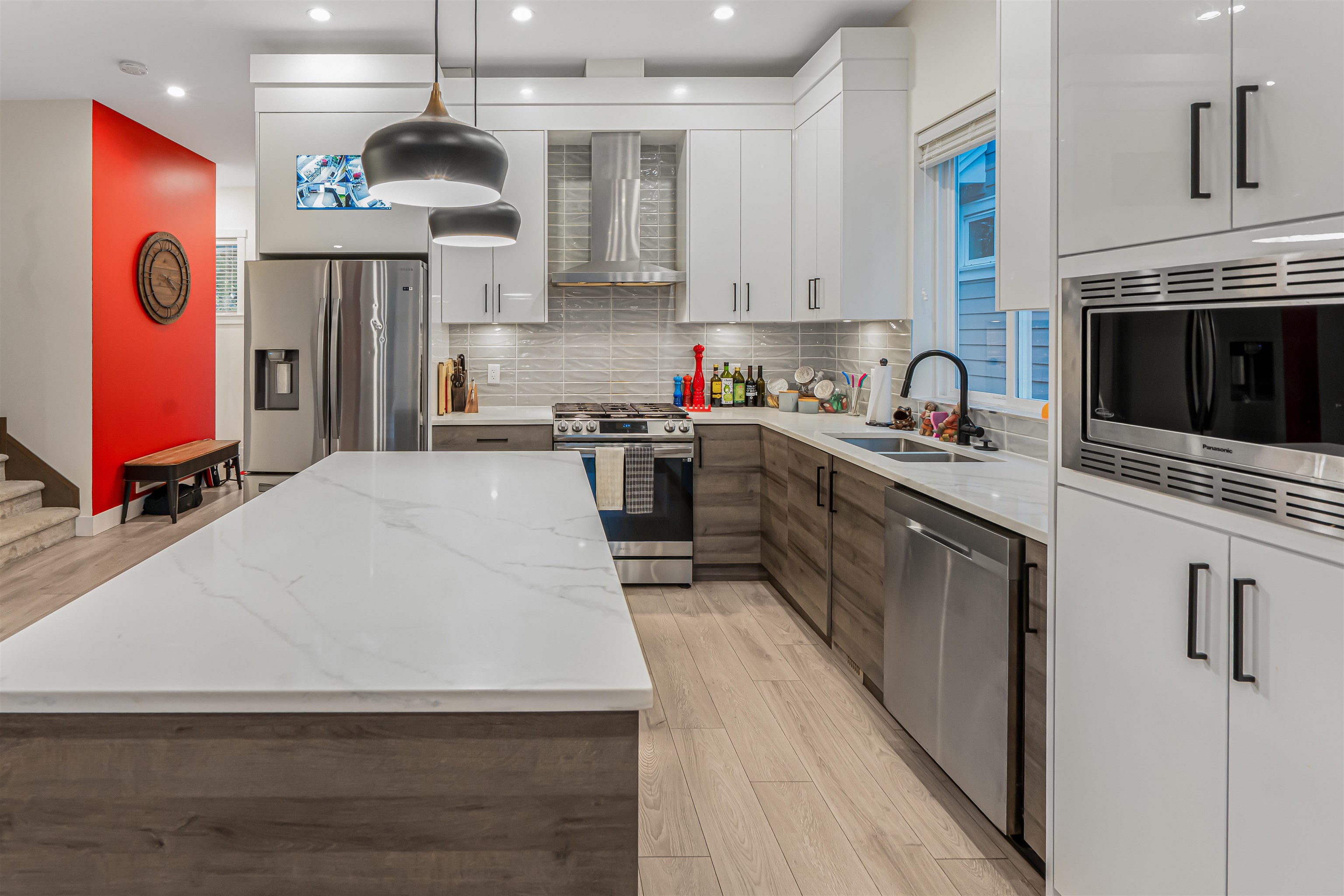 A lovely home where thoughtful design meets modern comfort. Main floor features open concept living with powder room, spacious den/office, Kitchen w Pantry, Family/Dining and mud room with 10' ceiling and abundance of windows. Upstairs has full size Laundry, 2 large bedrooms and an expansive Primary with his/hers walk-in closets, vaulted ceilings and large ensuite with double sinks and full-size shower. Downstairs contains a legal 2br suite with large rooms and roomy kitchen/living. Easy maintenance yar...
