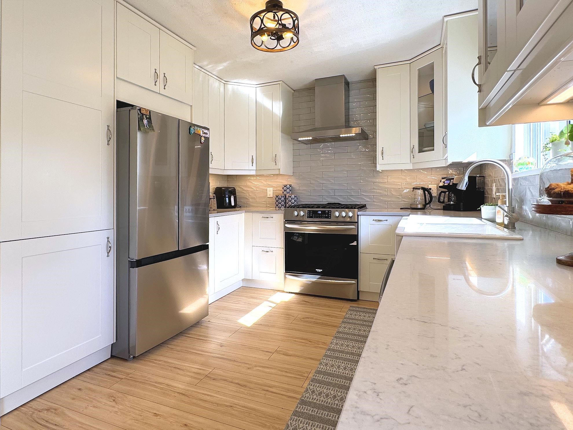 MOVE-IN READY with a BEAUTIFULLY UPDATED INTERIOR. This sparkling 3-bedroom, 3-bathroom side-split features a stylish kitchen with quartz countertops, subway tile backsplash, under-cabinet lighting, glass display doors, and newer appliances (2022/2026). The home has updated flooring, paint, and lighting throughout, plus TWO gas fireplaces! The primary bedroom offers a WALK-IN CLOSET and an ensuite with a FRAMELESS GLASS SHOWER and a no-fog mirror. Enjoy year-round BBQs on the COVERED PATIO with natural gas ...