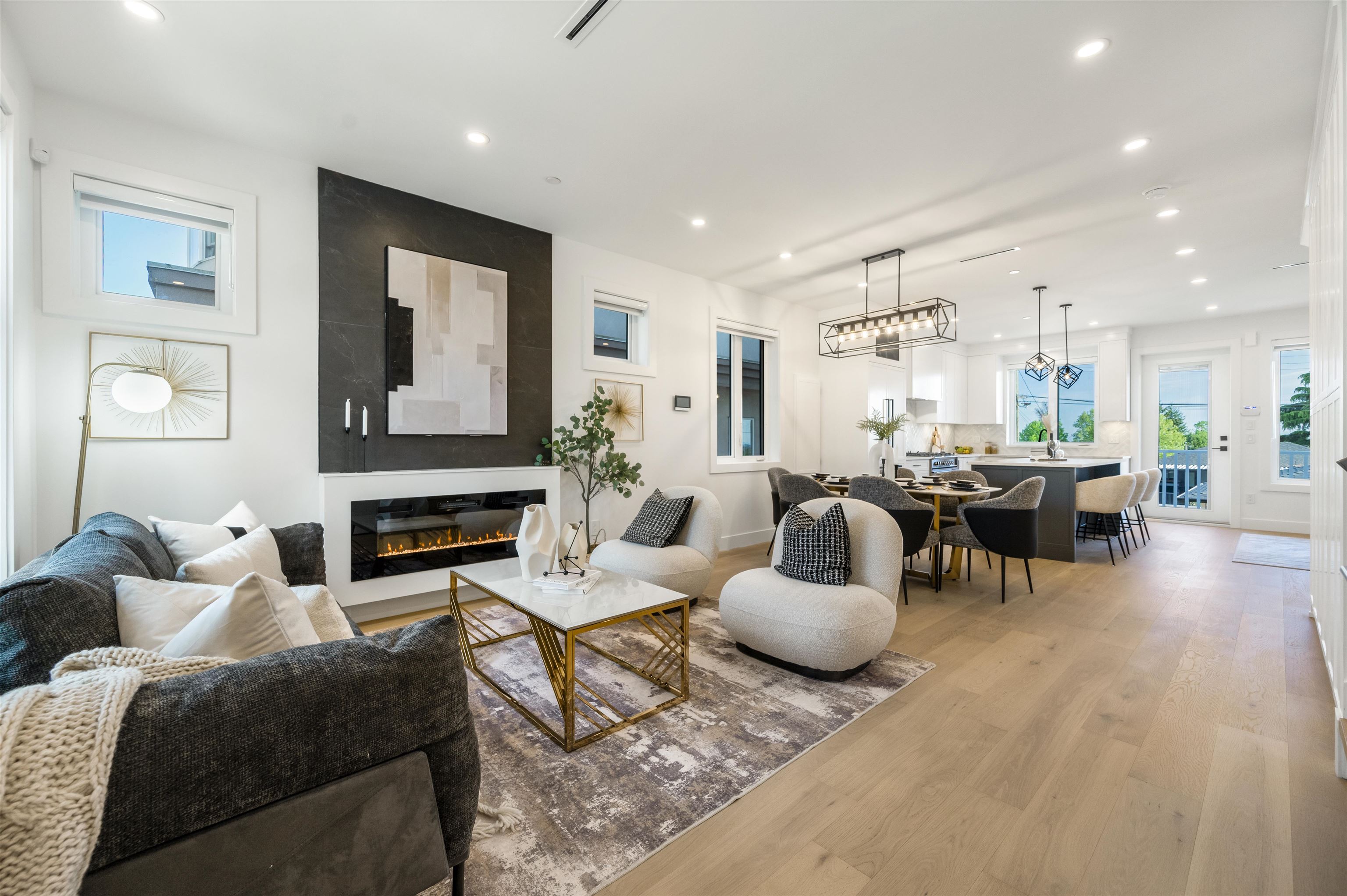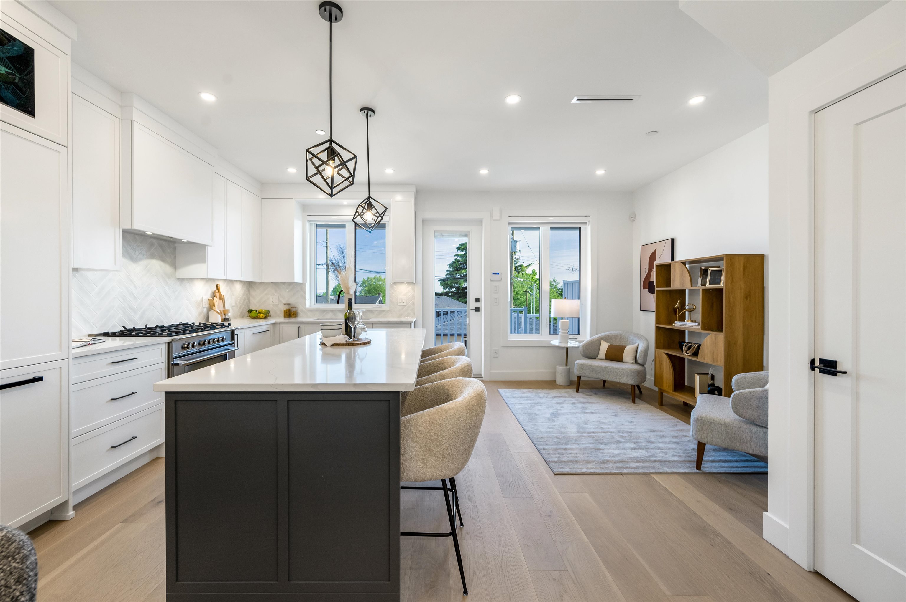 FRASERVIEW Side by Side duplexes on a prized 49x122 lot size. These homes embody exceptional craftsmanship & sophistication. Features 3 bdrms on the upper floor with additional bedroom for owners use in the basement & 1 bdrm WALK OUT legal suite. Inside, you'll find white oak hardwood floors, 10-foot ceilings, and an open-concept design that creates an airy, inviting atmosphere. Bright white shaker style cabinetry with integrated Fisher Paykel appliances including a 36 INCH GAS RANGE, Wine fridge & Extra la...