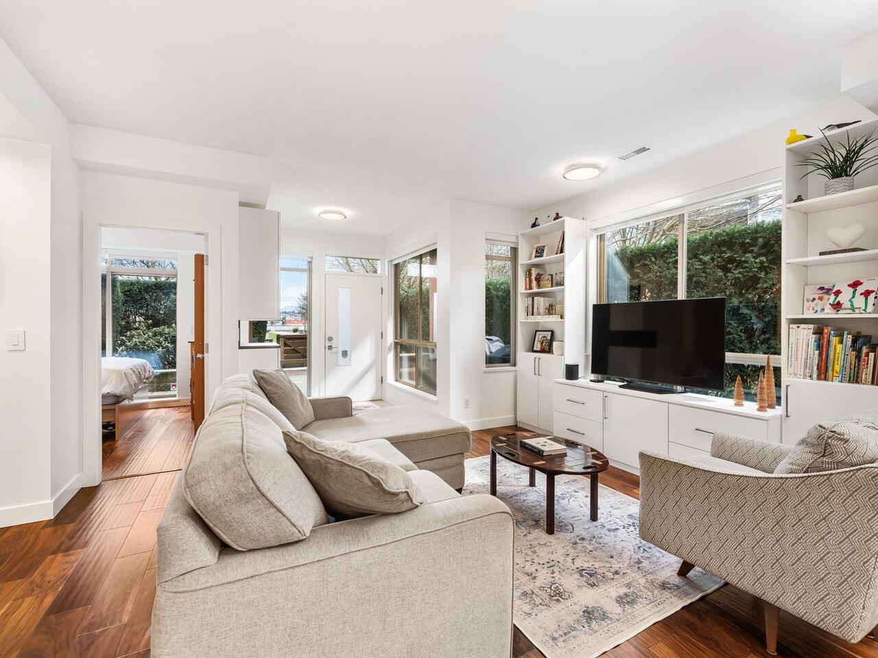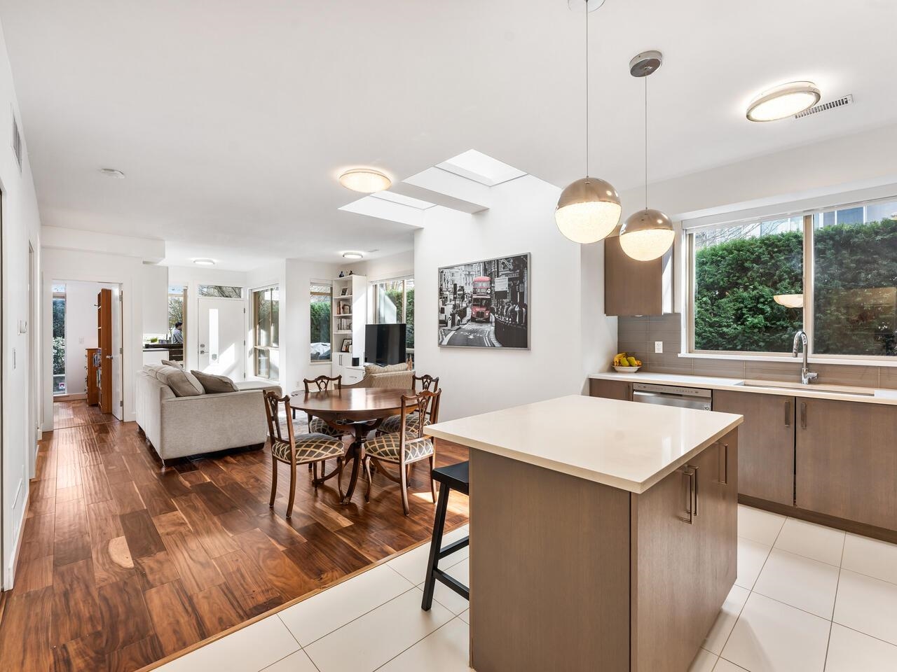 A RARE offering at Parc Riviera! Light-filled, one-level townhome positioned in one of the BEST LOCATIONS in the complex, w/ tons of QUALITY UPDATES! SPRAWLING 3 bed, 2 bath townhome PERFECT for downsizers or upsizers. Large entryway opens to SPACIOUS living, dining, kitchen, w/ overheight ceilings, large windows, bright skylights, updated flooring & custom cabinetry throughout. Kitchen feats ample storage, quartz counters, breakfast bar, & updated microwave hood fan. Primary bedroom w/ walk in closet, 4 pc...