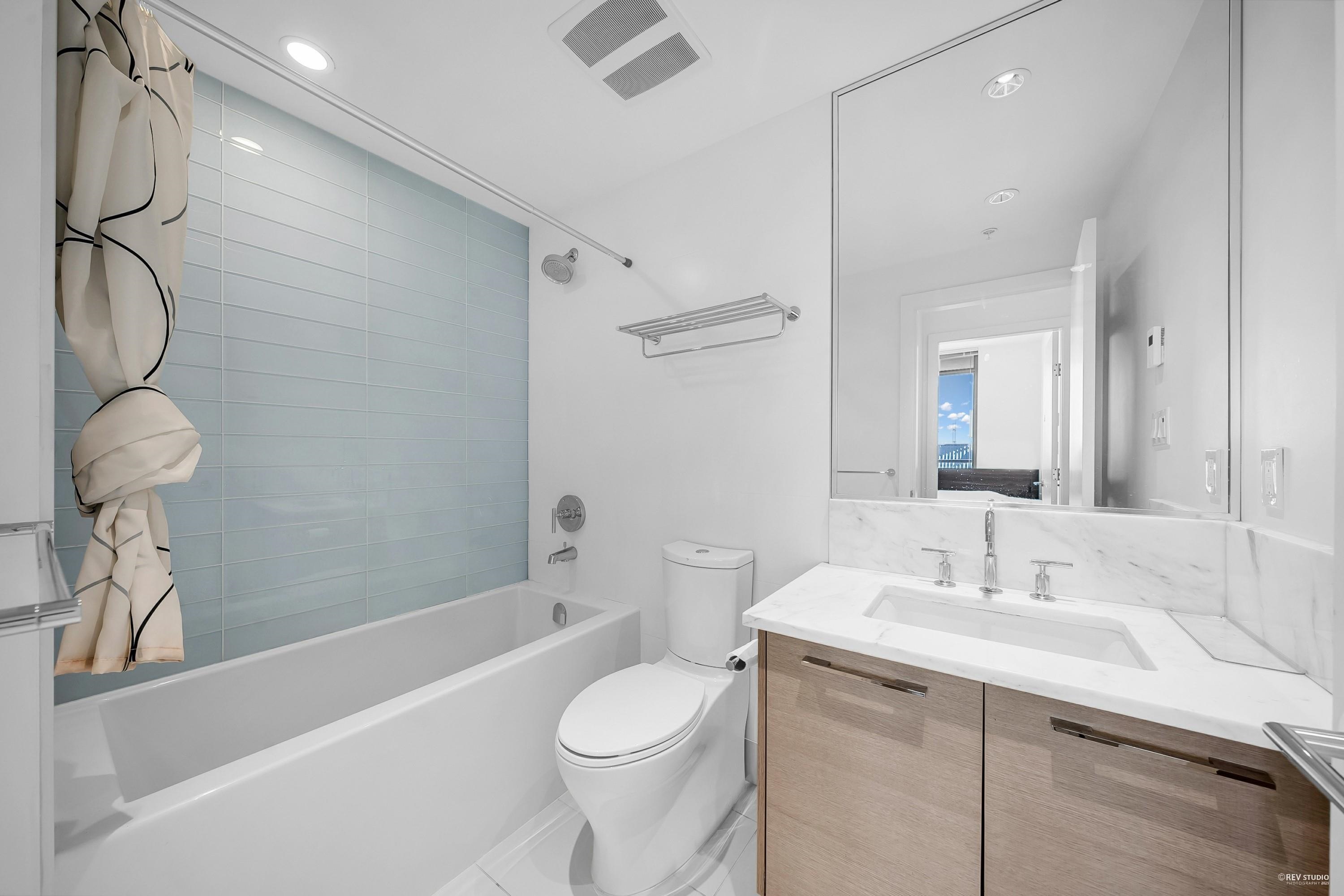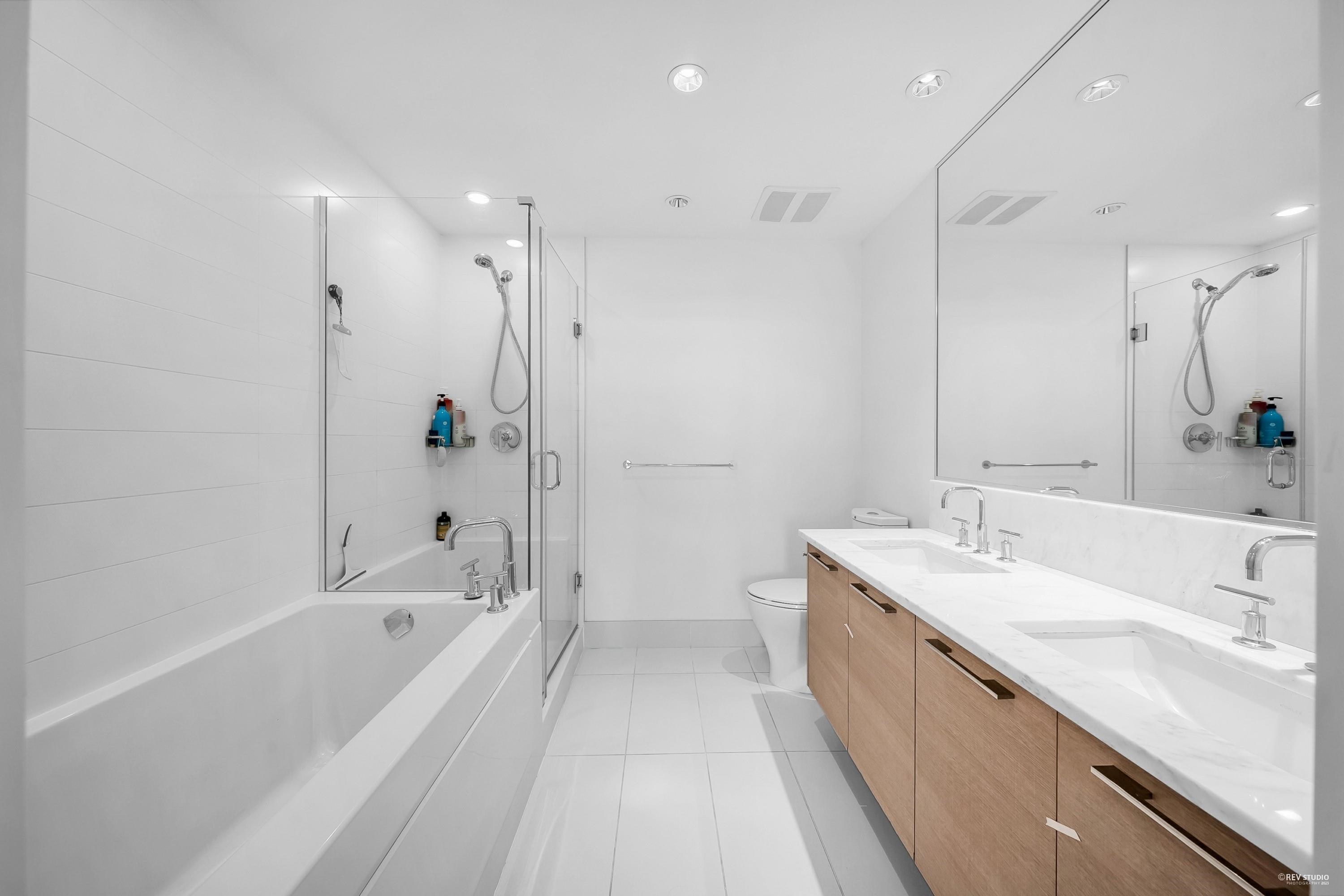 Iconic M3 by CRESSEY! CENTRALLY LOCATED at the heart of Coquitlam Center! This stunning SOUTH FACING bright 2 bed 2 bath home offers the best layout in the building. Famous Cressey gourmet kitchen with high end S/S appliances offers a gas cooktop, wall oven, quartz countertops with glass tile backsplash! Durable and contemporary wide plank laminate flooring throughout and 8'8 overheight ceilings! Spacious Master bedroom with spa-inspired ensuite with heated floors & luxurious marble countertops in the ma...