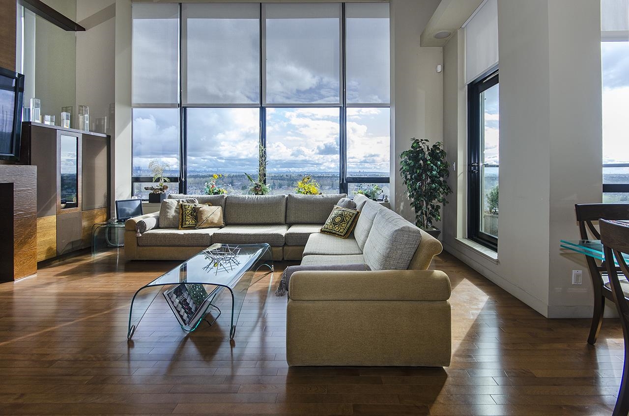 A luxurious penthouse at Hemlock Park in Richmond, built by the renowned Cressey Development Group. This 18th-floor suite boasts 2 bedrooms, 2 full bathrooms, and an expansive 282sqft wrap-around balcony equipped with an automatic sprinkler system for balcony plants. The interior features a 13'5" high ceiling living room and average 10'5" ceilings throughout. Sound proof wall in living room for Karacke entertainment. The unit includes 2 parking stalls (each stall fix for a Cyper Trunk) & 2 lockers, lots of ...