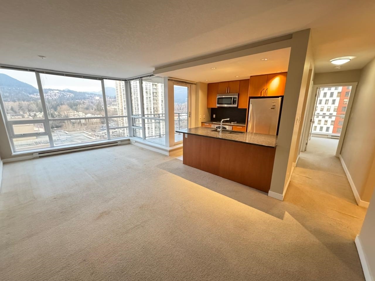 Stunning city and mountain views from the 18th floor! This beautifully located unit offers exceptional amenities, including an outdoor playground, swimming pool, hot yoga studio, party room, billiards room, and a fully equipped gym. Just minutes to Douglas College, schools, Coquitlam Centre, restaurants, transit, and the Evergreen SkyTrain Line very convenience. Pet allowed and no rental restriction, ideal for both homeowner to move in or investment. Buyer to verify all measurements.