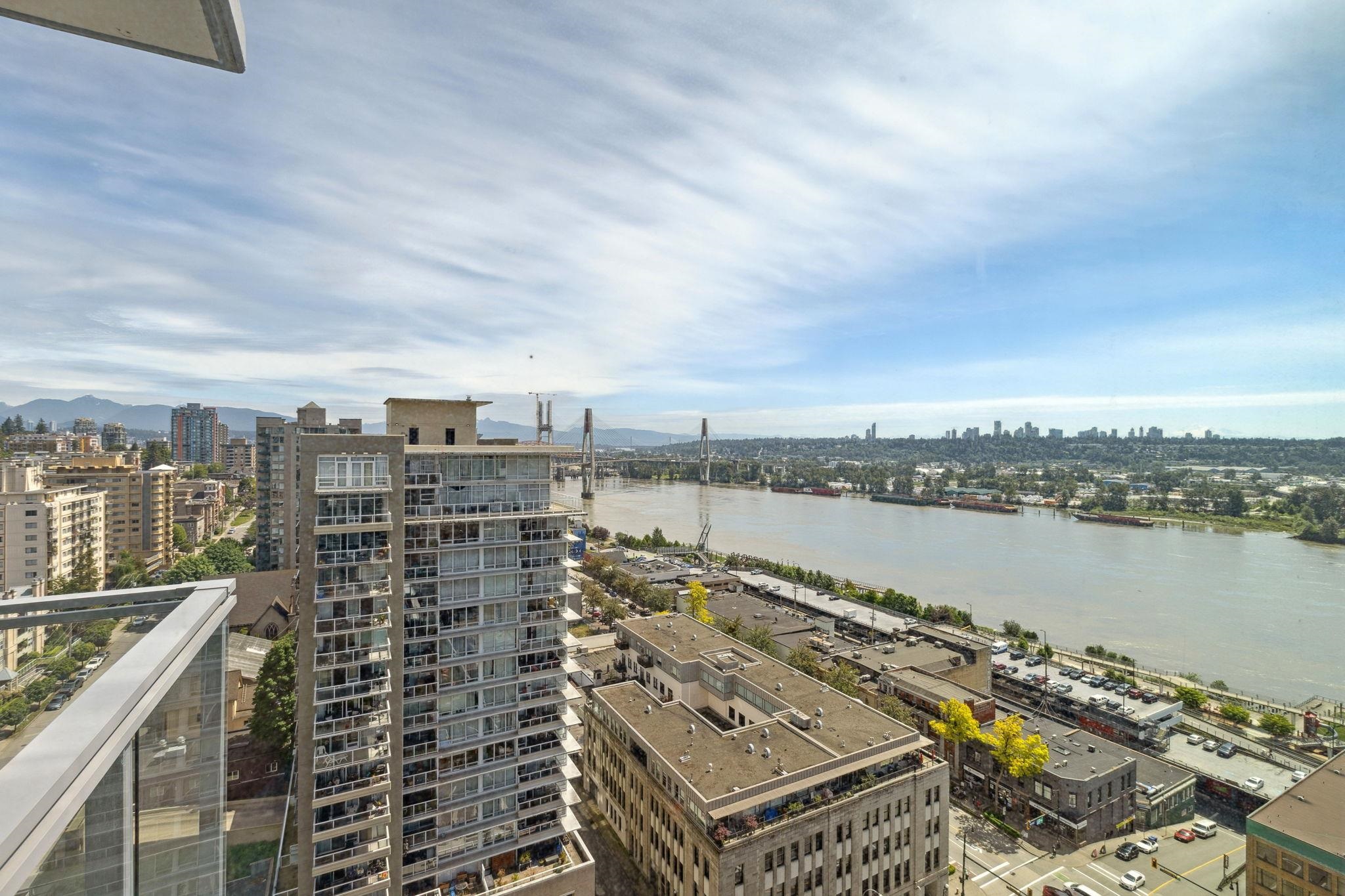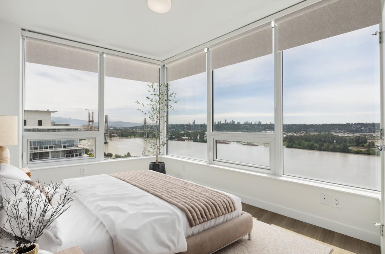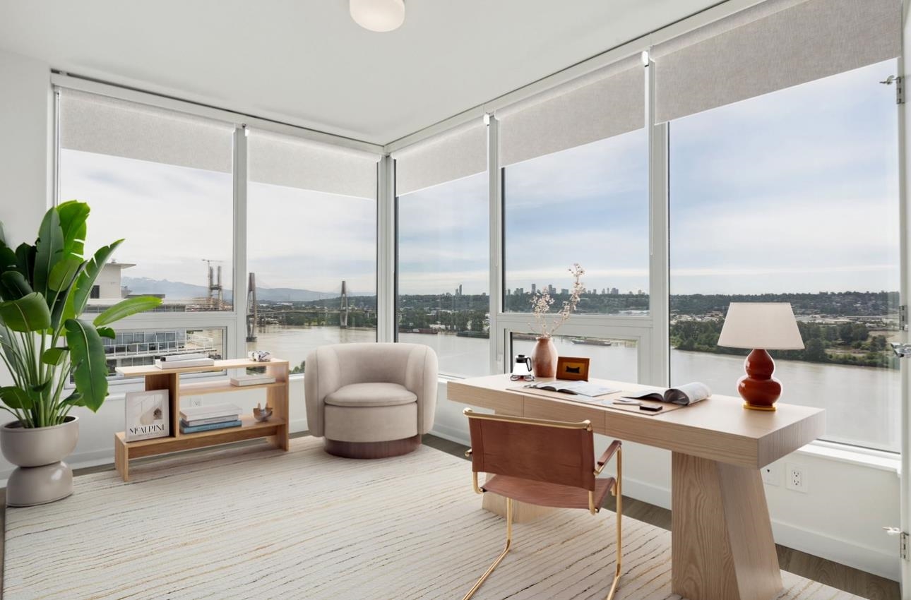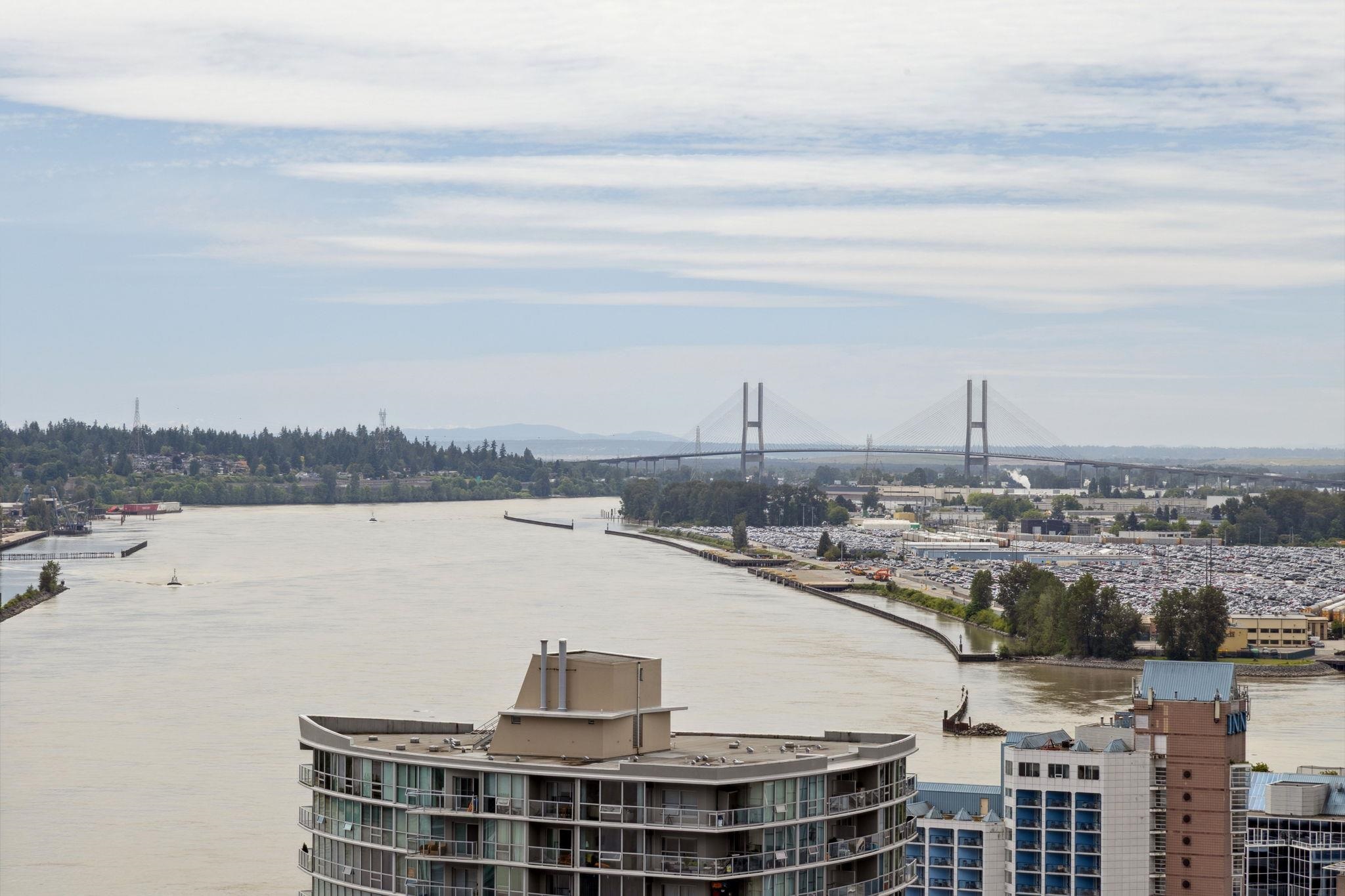 Huge price reduction! Best plan and view in the building. Corner two bedroom home that sits front seat to the iconic Lower Mainland views: Fraser River, Mountains, the whole Valley and even Mt. Baker! This bright, corner home has it all; floor to ceiling windows, gourmet kitchen, full size Bosch appliance package with french door style fridge, polished quartz countertops, Kohler double-sink, 9 ft ceilings, A/C, a great layout, parking, storage, and stress free 2-5-10 year warranty! The amenities include a 3...