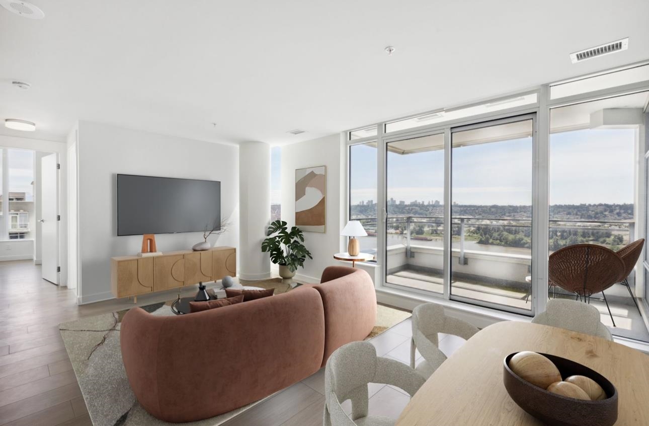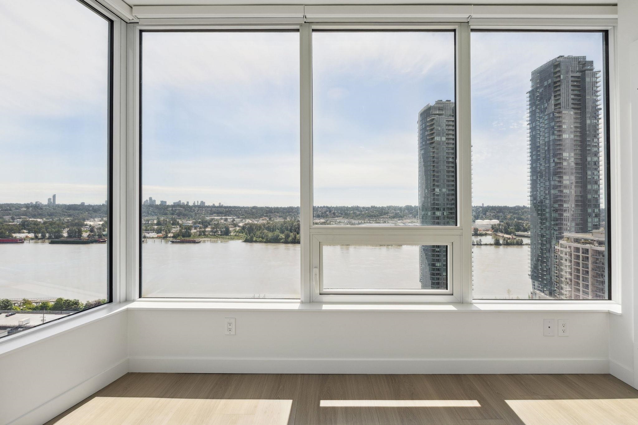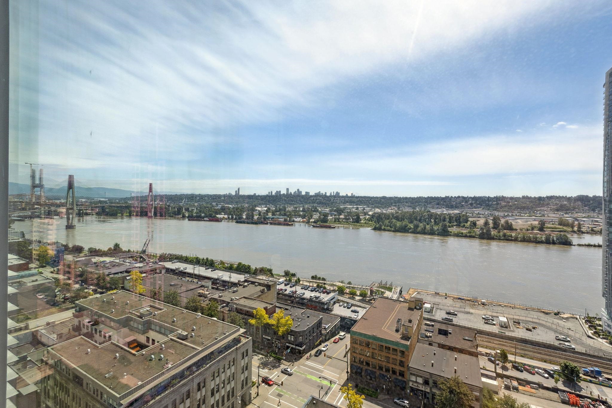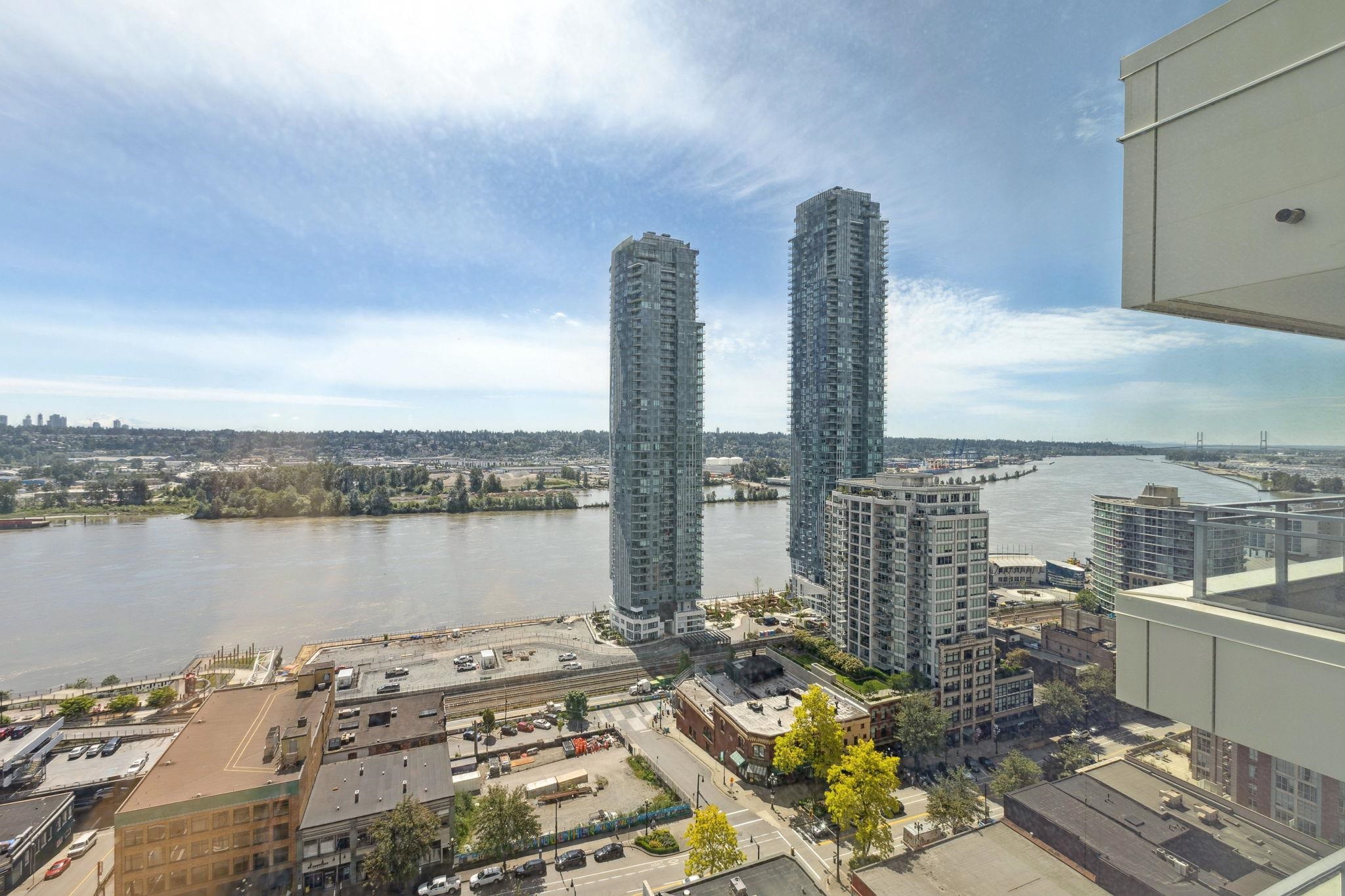 Huge price reduction! Best plan and view in the building. Corner two bedroom home that sits front seat to the iconic Lower Mainland views: Fraser River, Mountains, the whole Valley and even Mt. Baker! This bright, corner home has it all; floor to ceiling windows, gourmet kitchen, full size Bosch appliance package with french door style fridge, polished quartz countertops, Kohler double-sink, 9 ft ceilings, A/C, a great layout, parking, storage, and stress free 2-5-10 year warranty! The amenities include a 3...