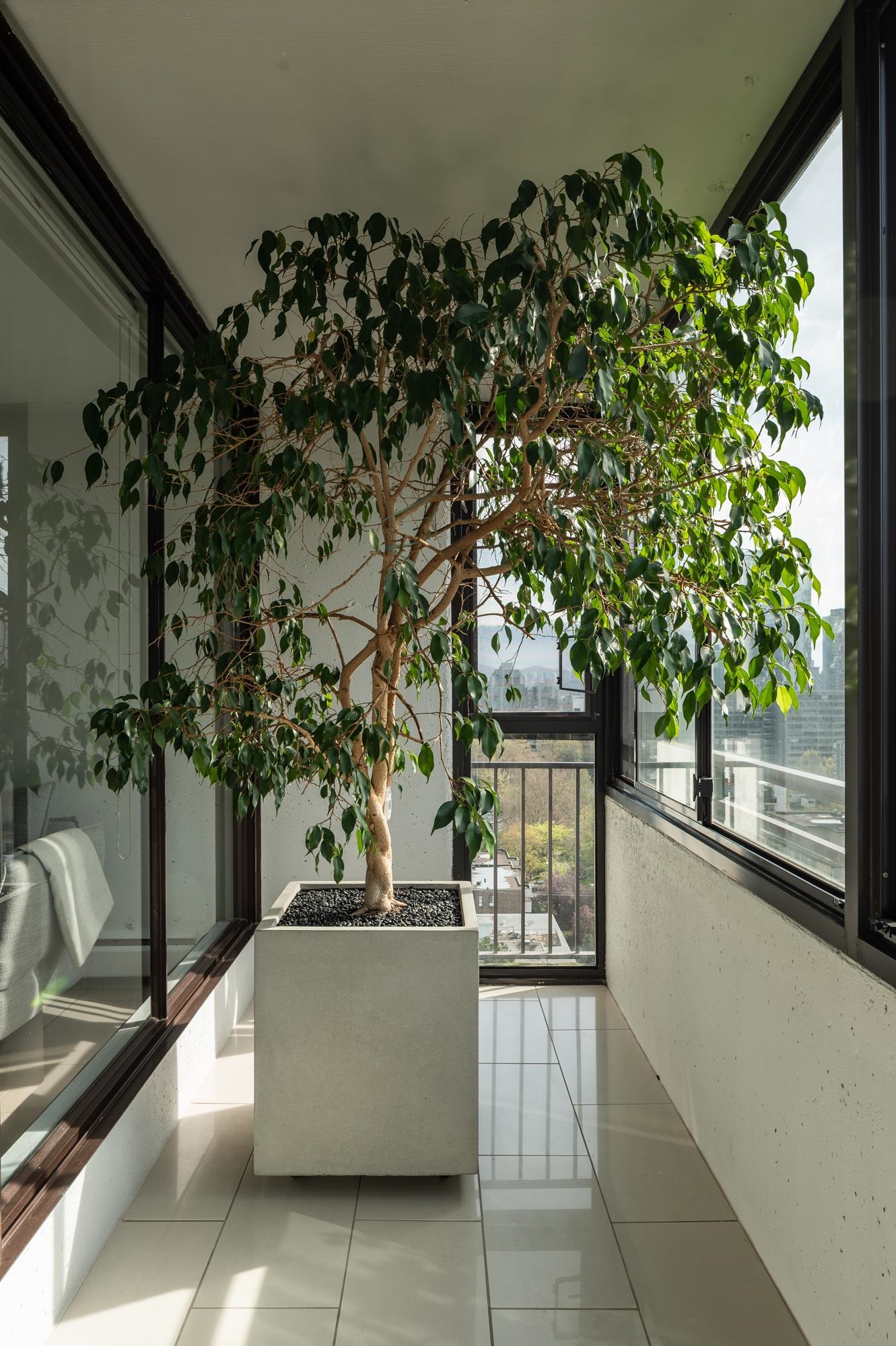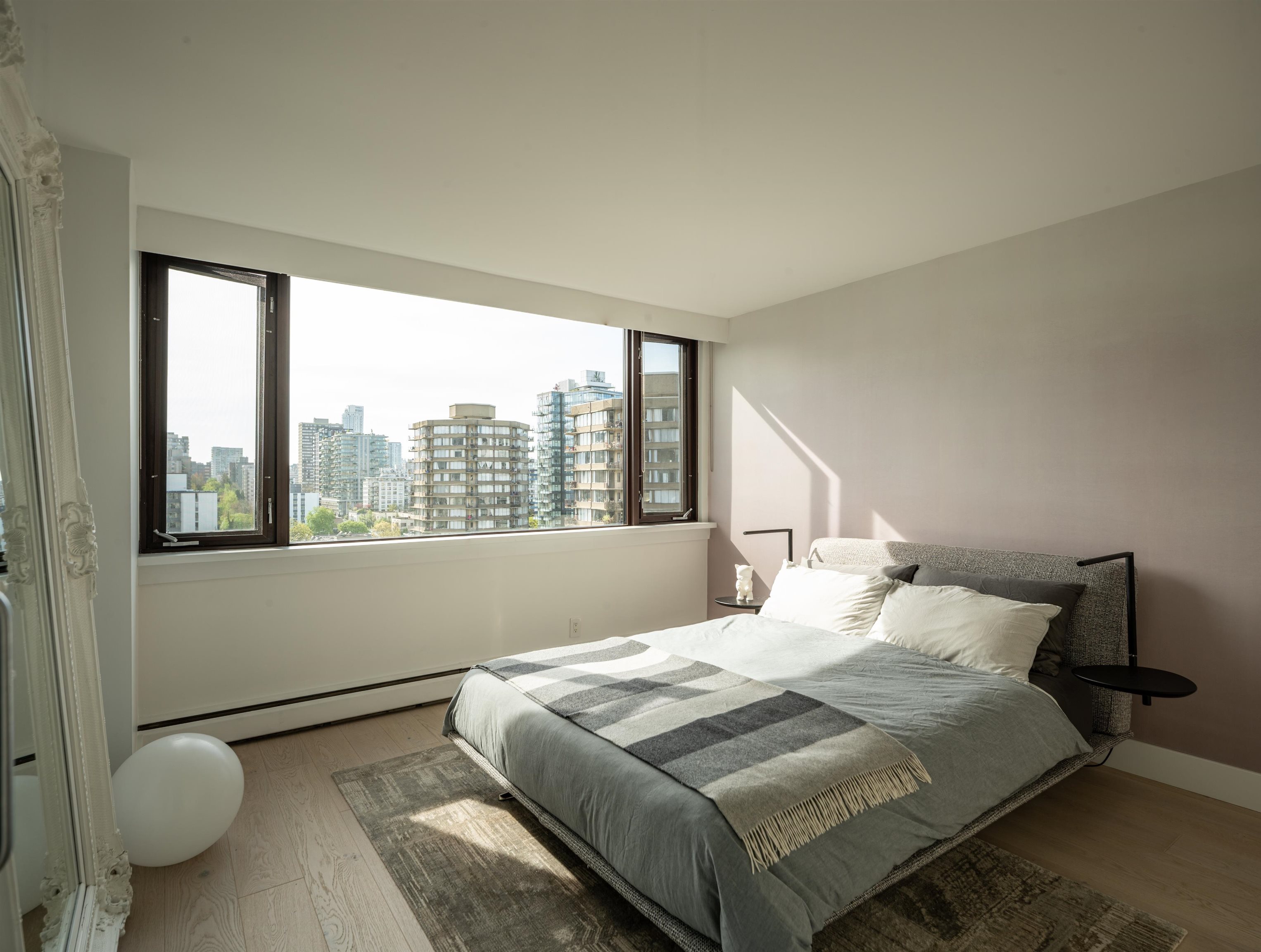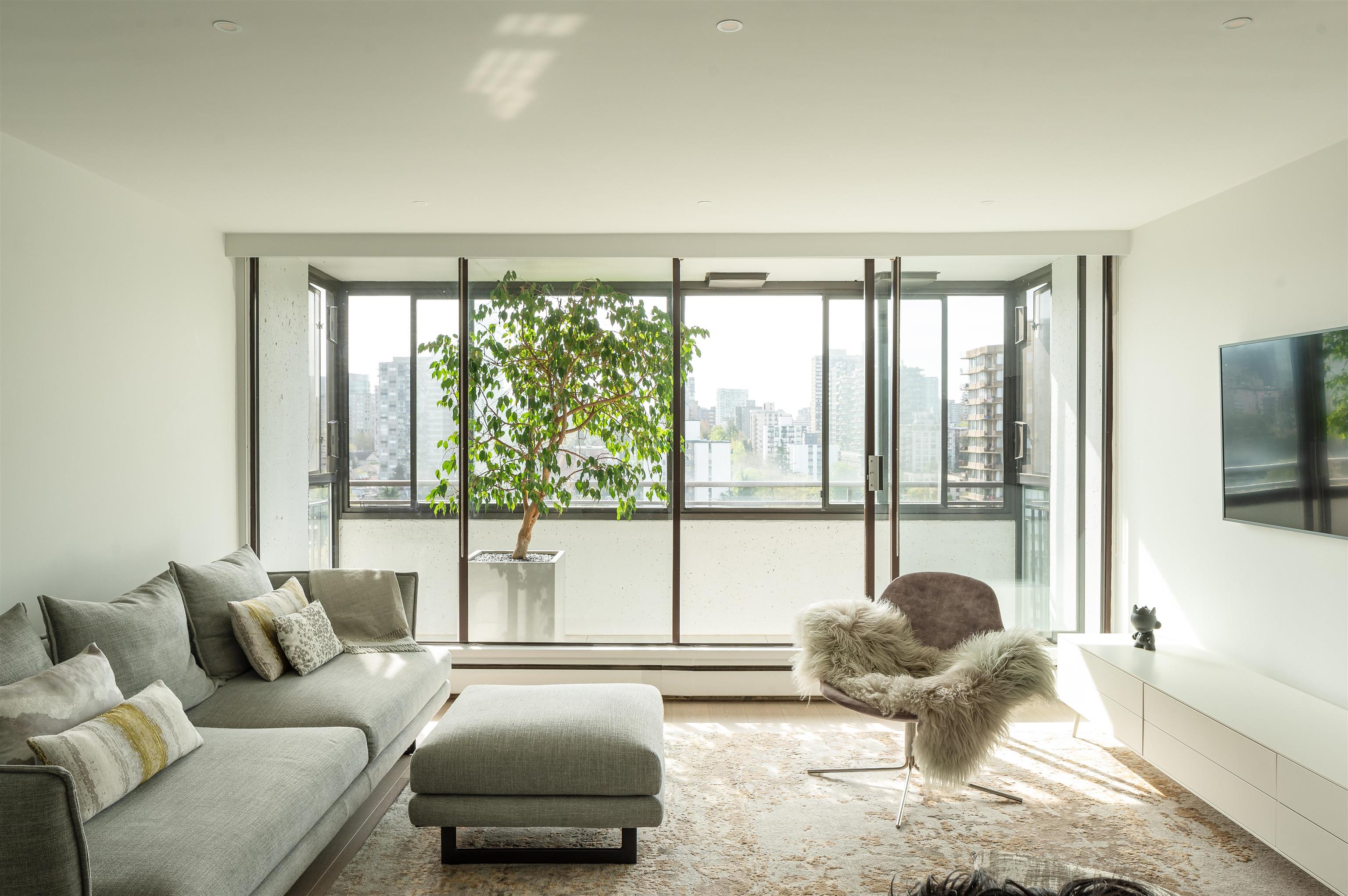 Bright + airy 1-bedroom + solarium on the 18th floor of sought-after Stratford Place in the West End. Thoughtfully designed + renovated in 2022 by Peter Wilds Design with exceptional attention to detail. Engineered white oak flooring throughout, custom-designed interiors, Duravit fixtures + Flos lighting, to mention a few details. Enjoy mountain + peekaboo ocean views from the solarium. Beautiful private gardens, outdoor pool+ sauna plus a meticulously maintained building. Enjoy North America’s largest urb...