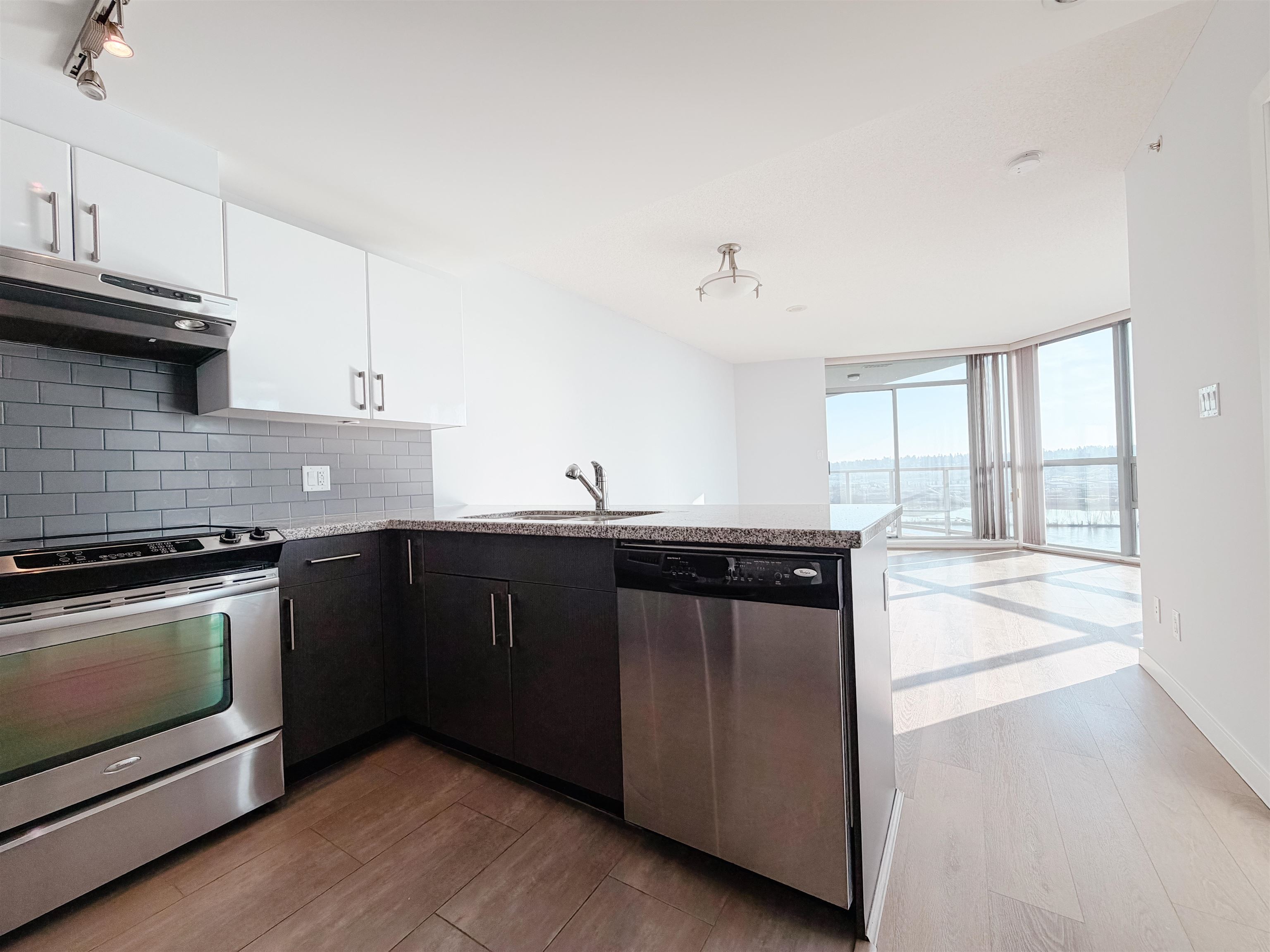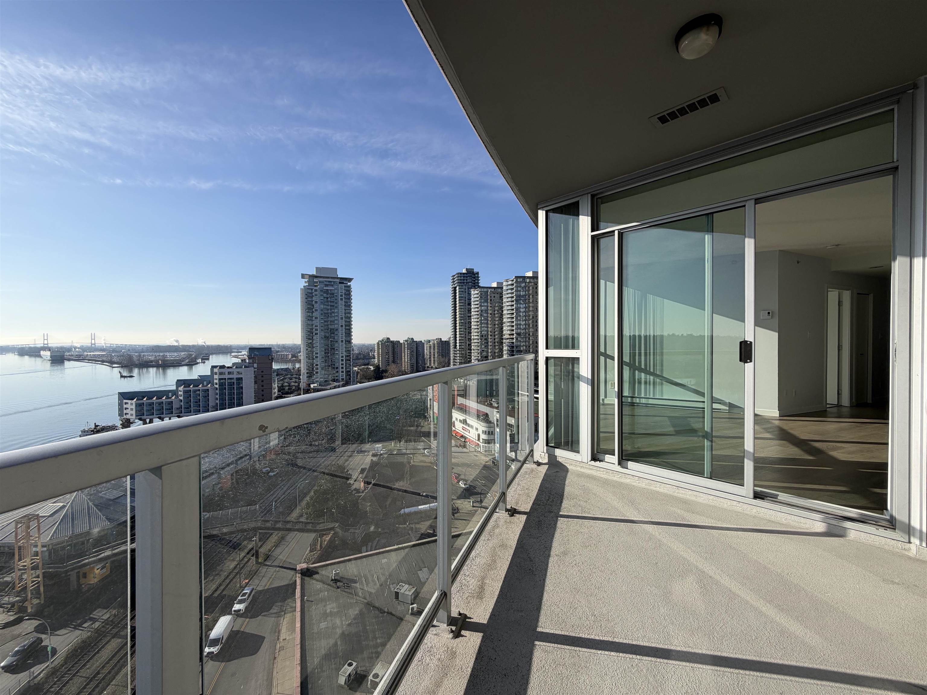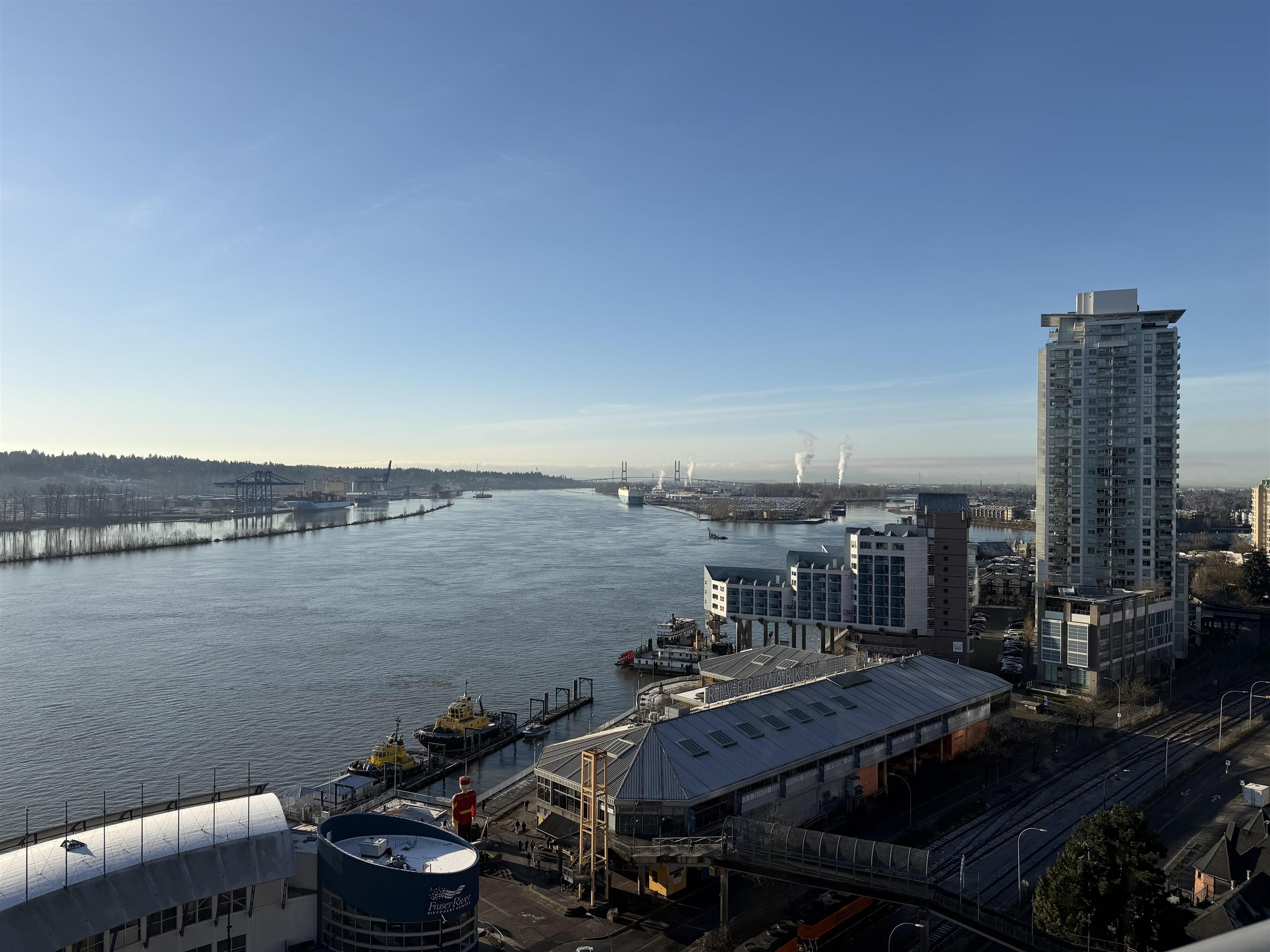 Bright & modern living with stunning Fraser River views! Welcome to this 18th-floor home in the heart of New Westminster, offering sweeping south/southeast views of the Fraser River and beautiful sunset skies. This well-maintained 2-bedroom, 2-bathroom condo features an open-concept layout with a modern kitchen, stainless steel appliances and a functional design ideal for both daily living and entertaining. Large windows fill the home with natural light, while the balcony provides the perfect place to unwin...