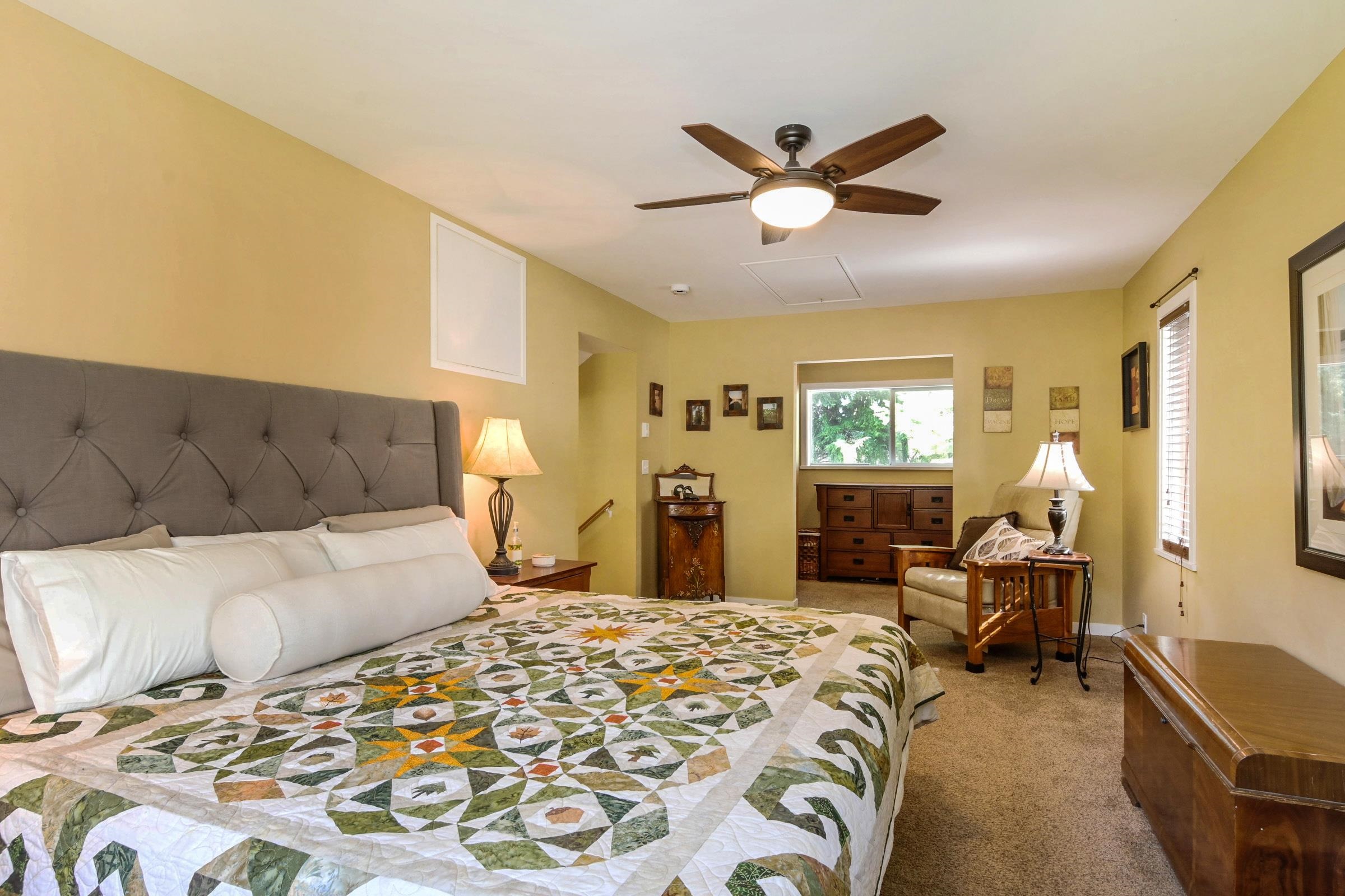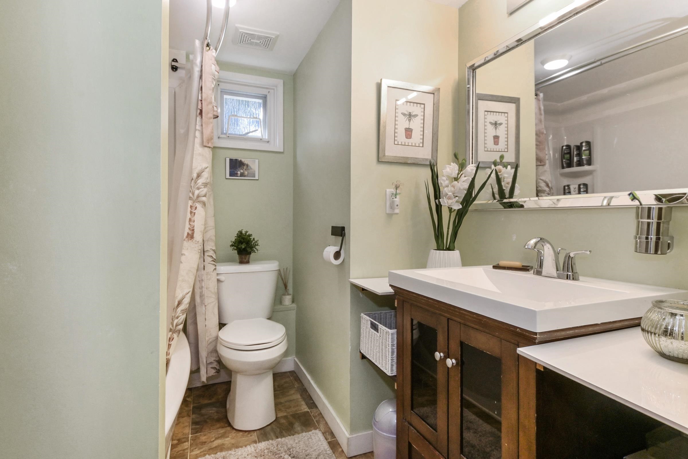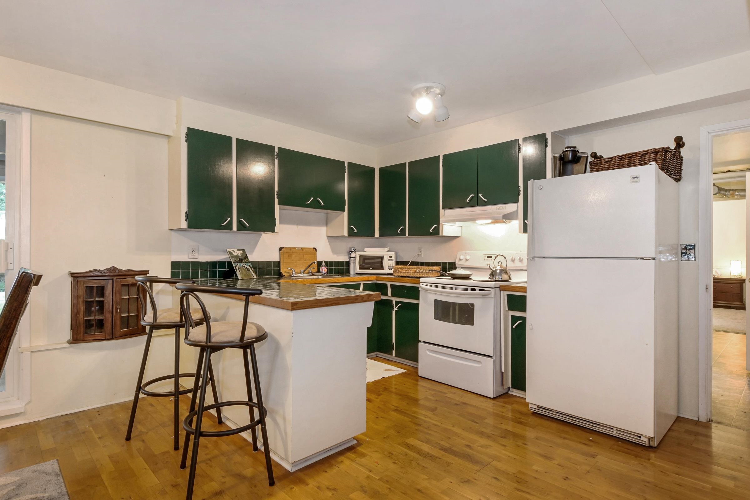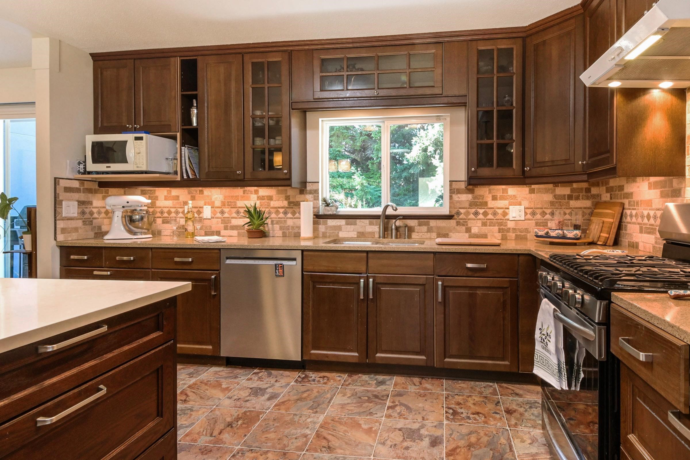 Meticulously maintained, exquisitely renovated Ocean Park charmer! Entertainer's will love this open plan w/picture windows, gas FP, parquet & hdwd flrs. Kitchen reno w/custom cabinetry, Sile Stone Quartz C/T's. Kitch Island w/bar seats 2016. Master bdrm addition w/walk-in closet & ensuite w/radiant heat, Rain shower, & Quartz counters. All baths fully reno'd 2016, Solatube lighting & laundry up added 2018. Huge 2 bdrm & den garden suite w/separate level entry. New windows 2006, Rheem High Eff furnace 2023....