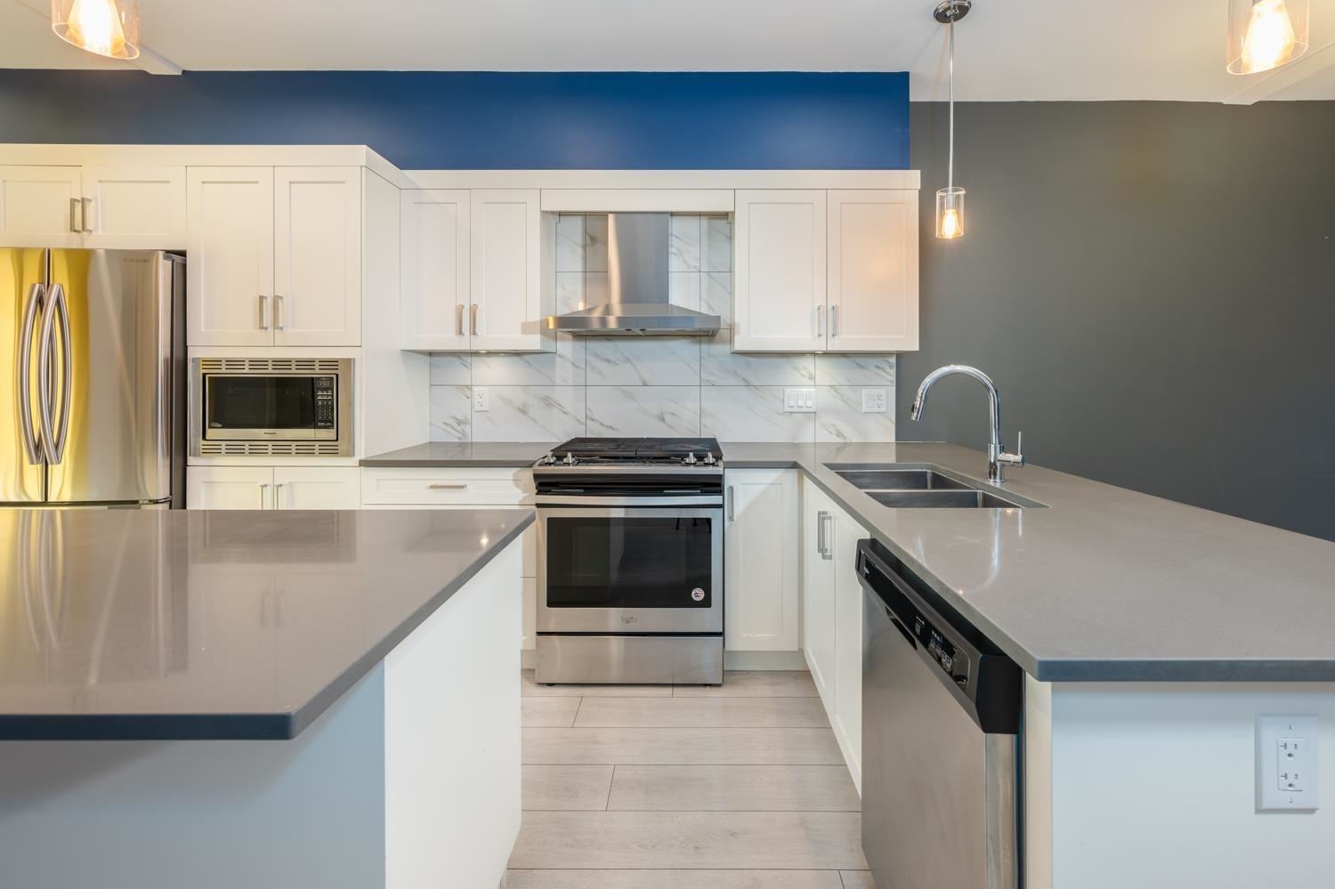 Fabulous sizeable 3-bedroom, 2.5-bathroom townhome in Willoughby. Open-concept living amplifies space, complementing the quartz countertops, expansive kitchen island, and soft-close cabinetry. Enjoy the spacious master bedroom with stand-up shower and dual vanity. Private backyard oasis, forest views, and a gas hookup on the kitchen-adjacent patio for seamless indoor / outdoor living. Rain-screened structure and a two-car garage with epoxy floors ensure convenience. This pet friendly nice complex also featu...