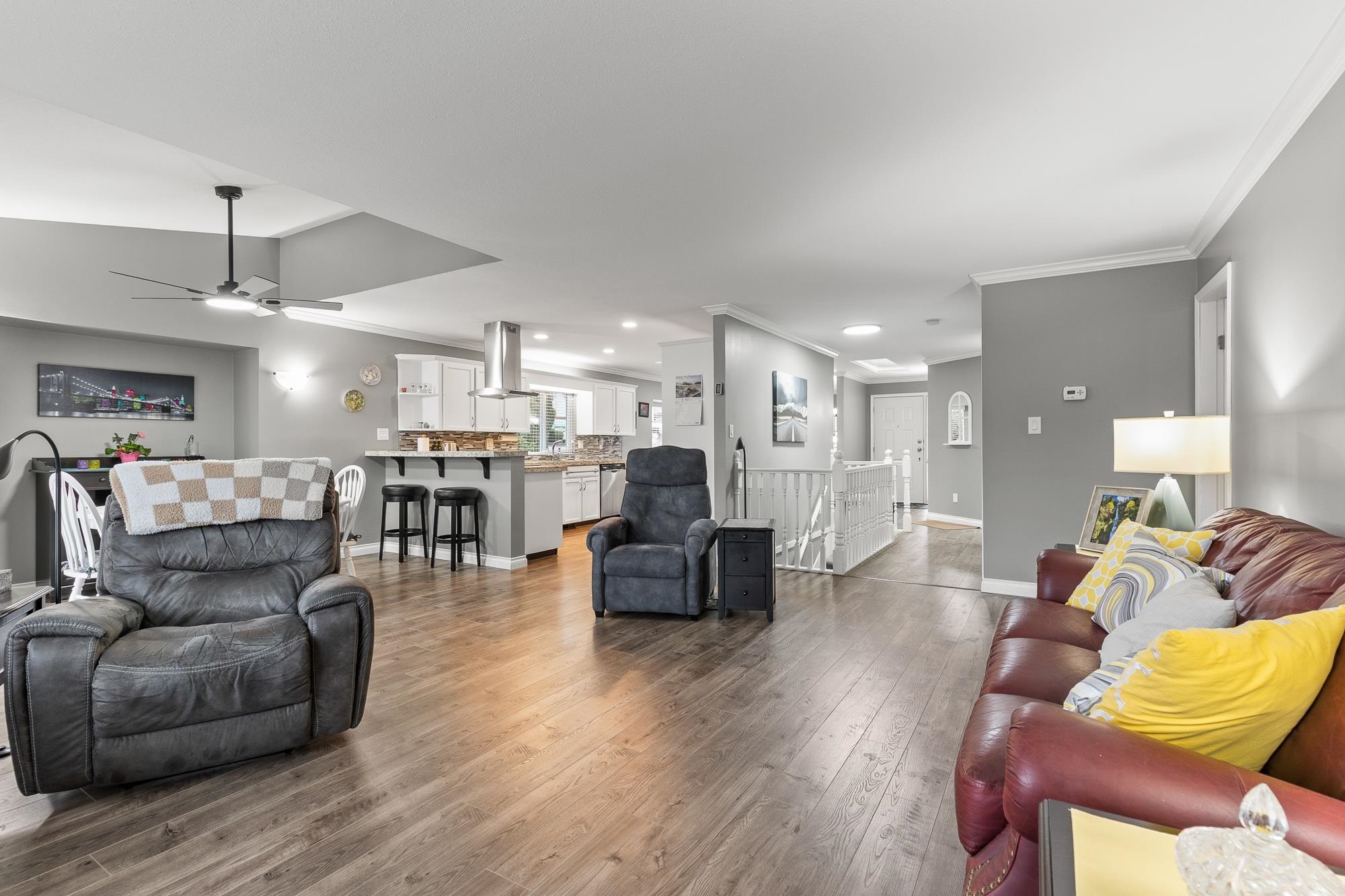 Exceptional 2845 SQ/FT townhome in the heart of Abbotsford! You’re going to love this bright, spacious end unit in Whispering Pines— One of the largest units in the complex. A 55+ well-run community features a clubhouse and welcoming atmosphere. The open-plan main living area boasts vaulted ceilings in the living rm, creating an airy space that’s perfect for entertaining guests. Enjoy updated flooring, paint, appliances, and lighting fixtures throughout, plus renovated bathrooms on the main with modern fini...