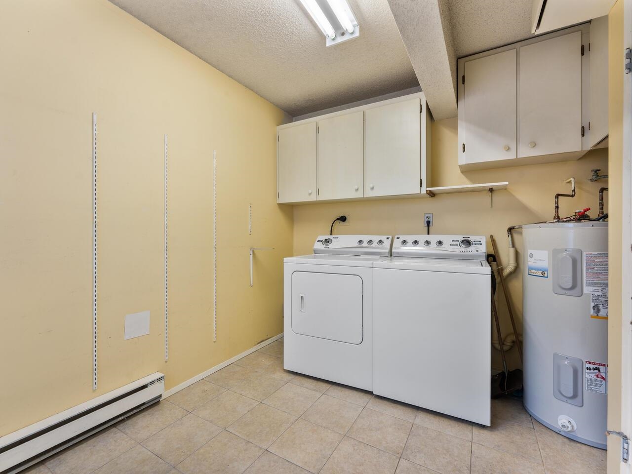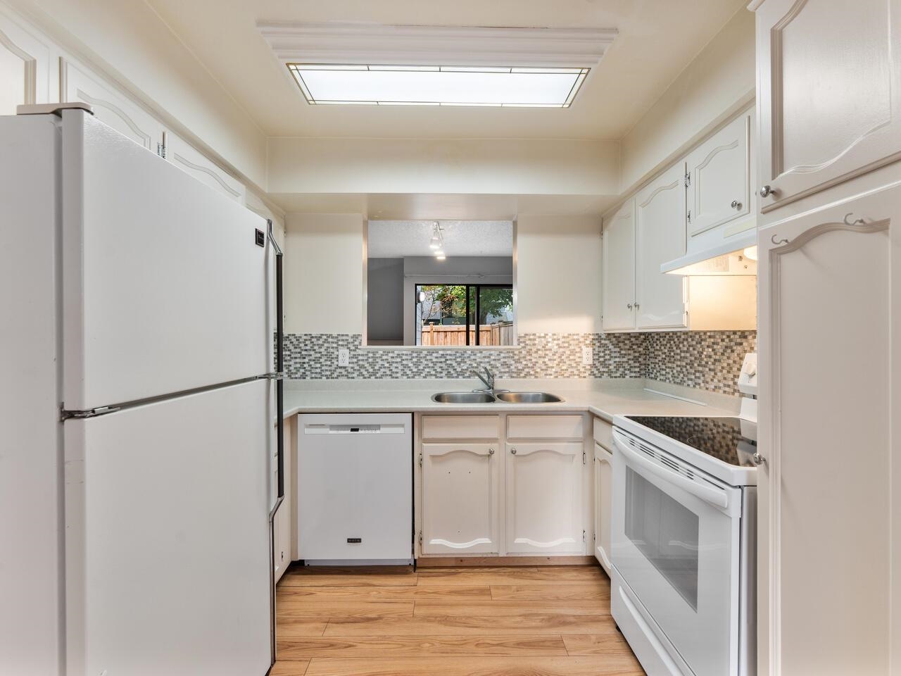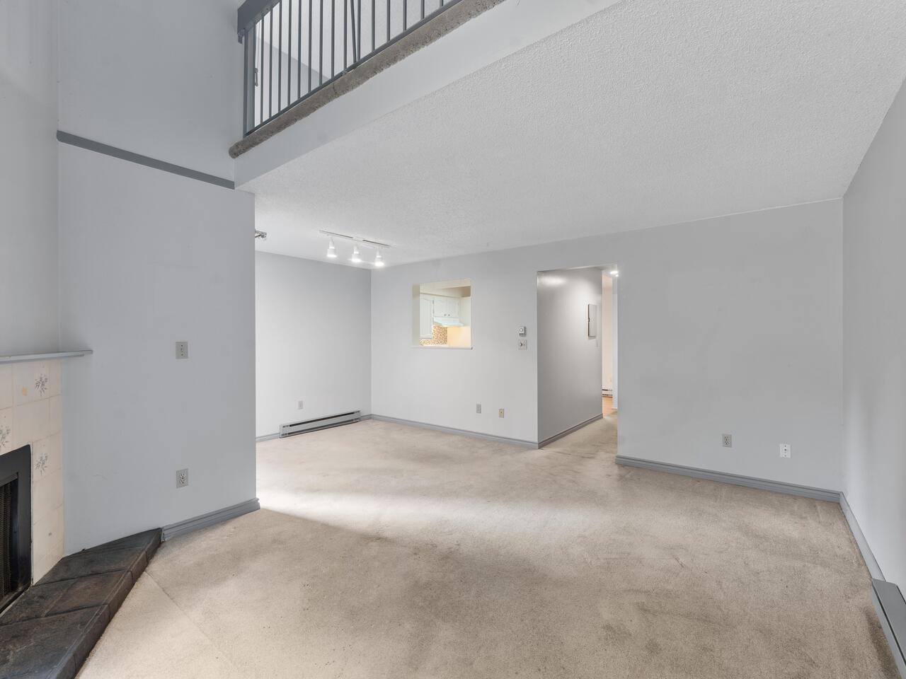 This 3 bdrm, 1 1/2 bath townhome is spacious, airy, open and ready for your design ideas. There's 1275 square feet of accommodation here with soaring vaulted ceilings in the living room so it feels even larger. Cozy wood burning fireplace too. Sliders walk out to a huge 349 sq. ft. fully fenced patio area that's perfect for keeping an eye on the little ones. Bright kitchen has a convenient eating area and there's a large laundry room big enough to double as an office area. Up has a mezzanine style primary b...