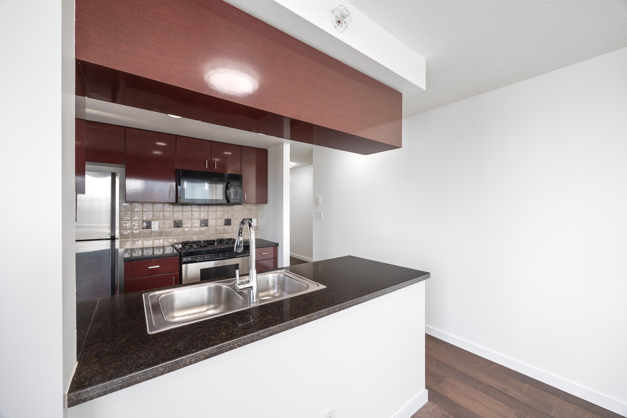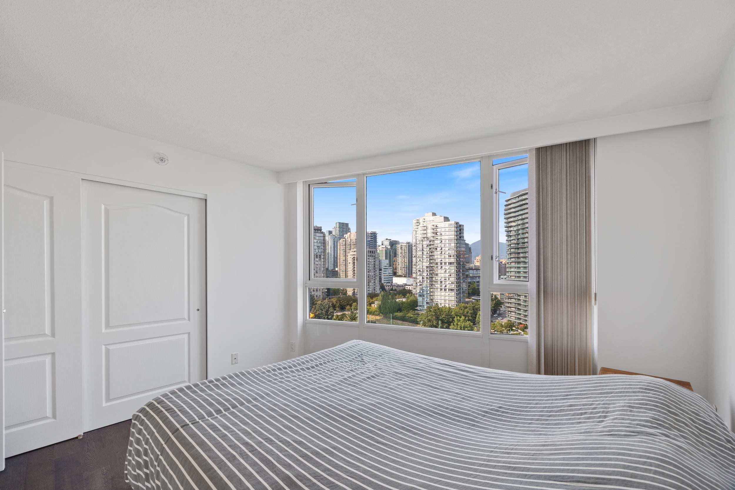 QUAYSIDE RESORT RESIDENCES by Concord – Waterfront living on the seawall! Spacious 752 sq ft one-bedroom plus dining/den with an additional flex room for office or storage. Enjoy stunning views of False Creek Marina, Vancouver cityscape, and North Shore mountains from the living room. The open-concept layout features a sleek kitchen with gas stove, fresh paint, and engineered hardwood flooring. Includes secured parking with EV charging option for an additional cost thru strata, large storage locker, plus bi...