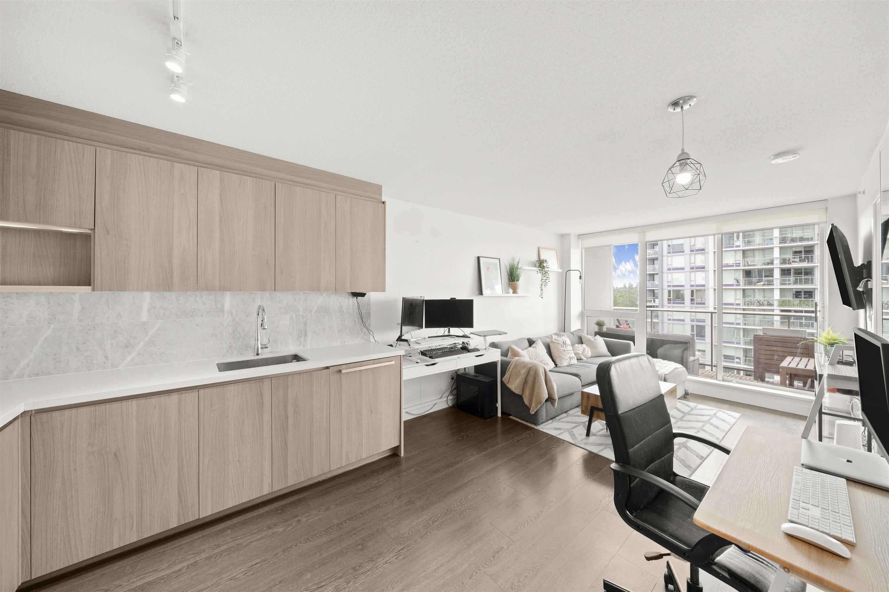 Step into Park Avenue West by Concord Pacific — where style meets convenience! This bright, east-facing 1-bedroom lets you wake up to stunning mountain views right from your bed. The sleek kitchen is perfect for your inner chef, with quartz countertops, marble tile, and a gas cooktop for next-level cooking. When you’re not home, enjoy resort-style perks: outdoor pool with cabanas & daybeds, sauna, full gym, BBQ area, and even a tennis court. Best part? You’re just steps to SkyTrain, T&T, Walmart, Surrey Cen...