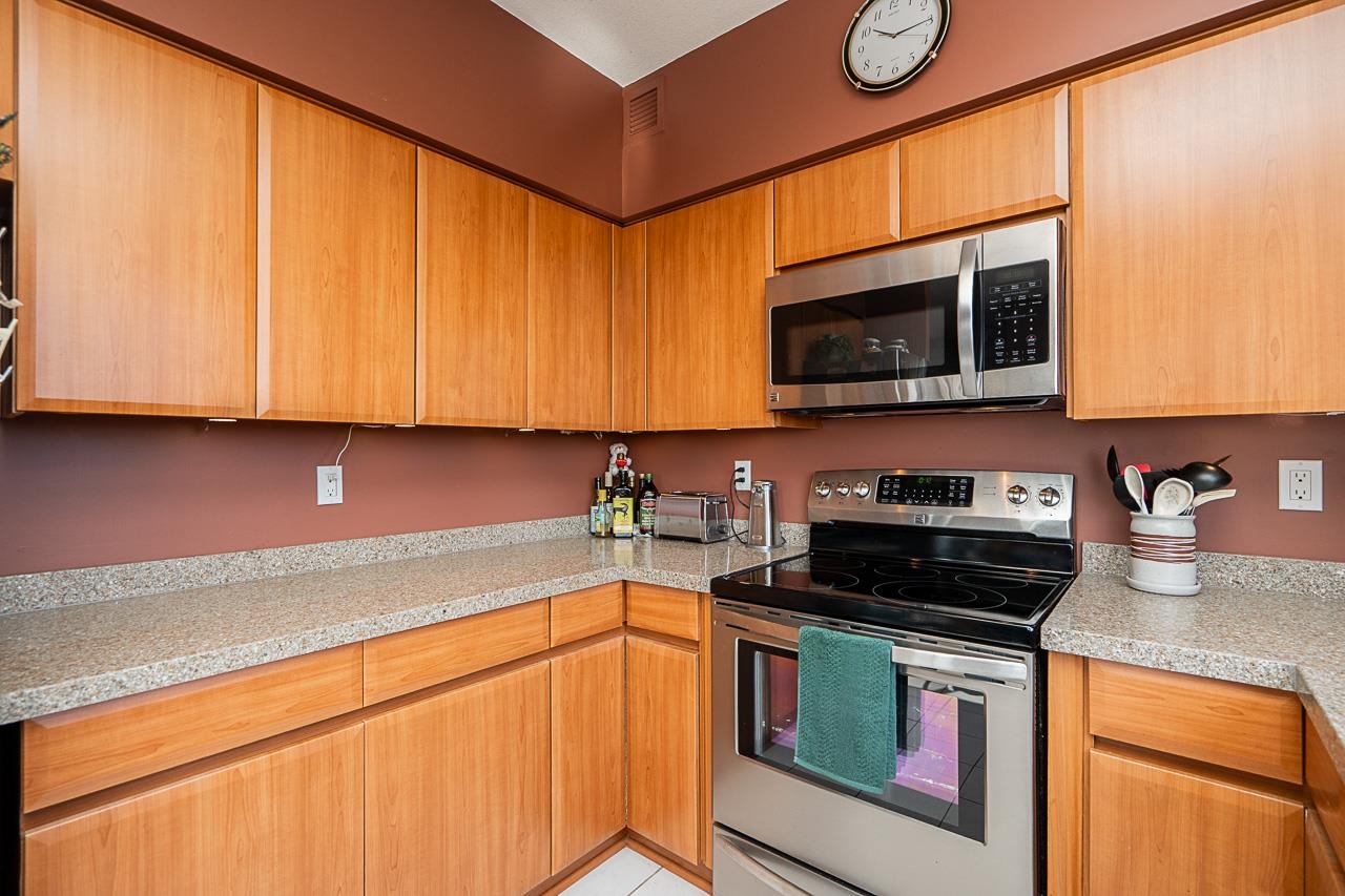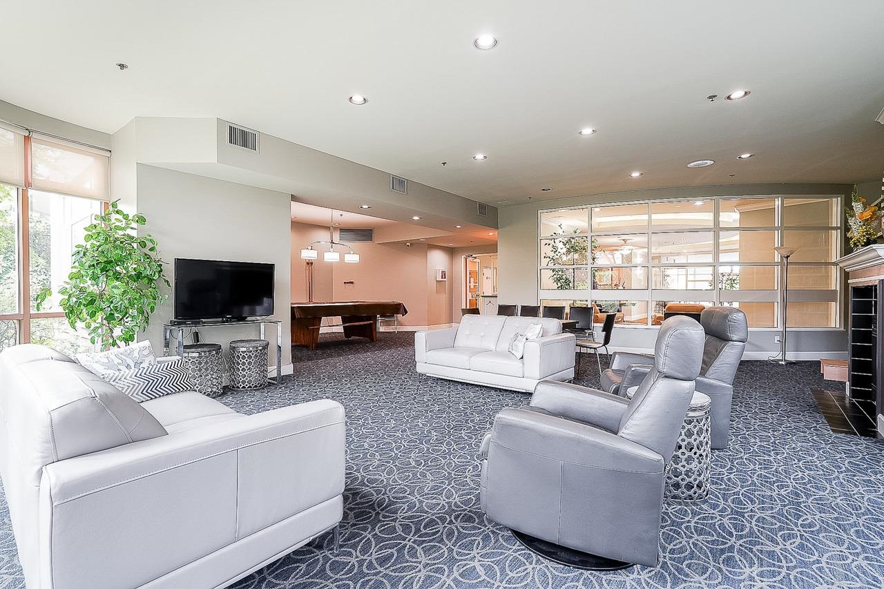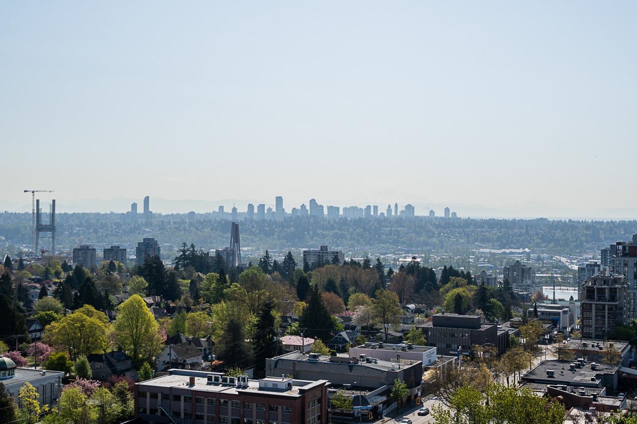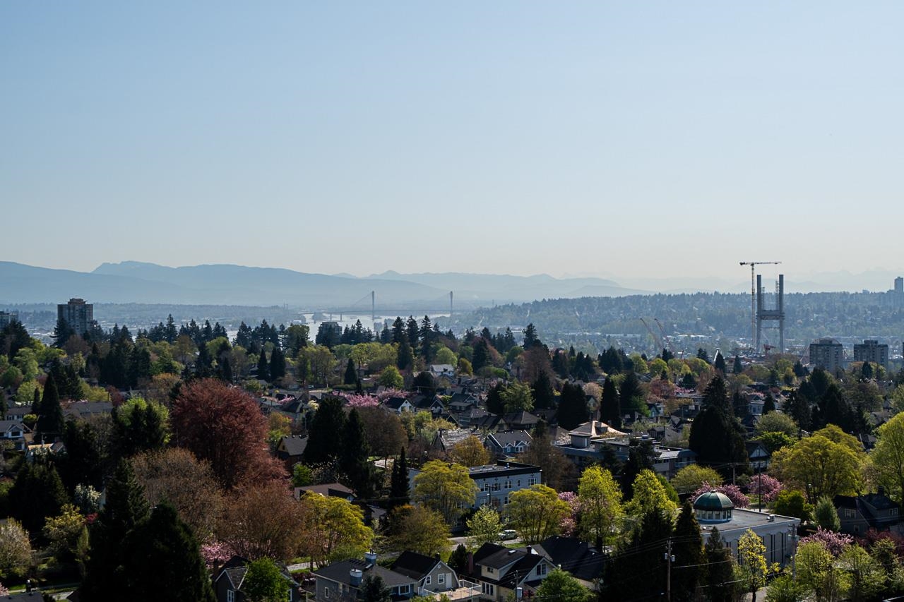 Spectacular VIEW Home at The Fifth Avenue! This bright, meticulously cared for 2 Bed, 2 Bath plus den NW facing corner unit features a spacious & functional floor plan, generous principal room sizes & breathtaking VIEWS from all windows including Mt Baker, Vancouver Island, & Fraser River. Additional features include: gas fireplace, large walk in closet in the Primary Bedroom, only 4 homes on this floor, laundry room, 2 side by side parking stalls, balconies, storage locker. Residents enjoy use of the outdo...