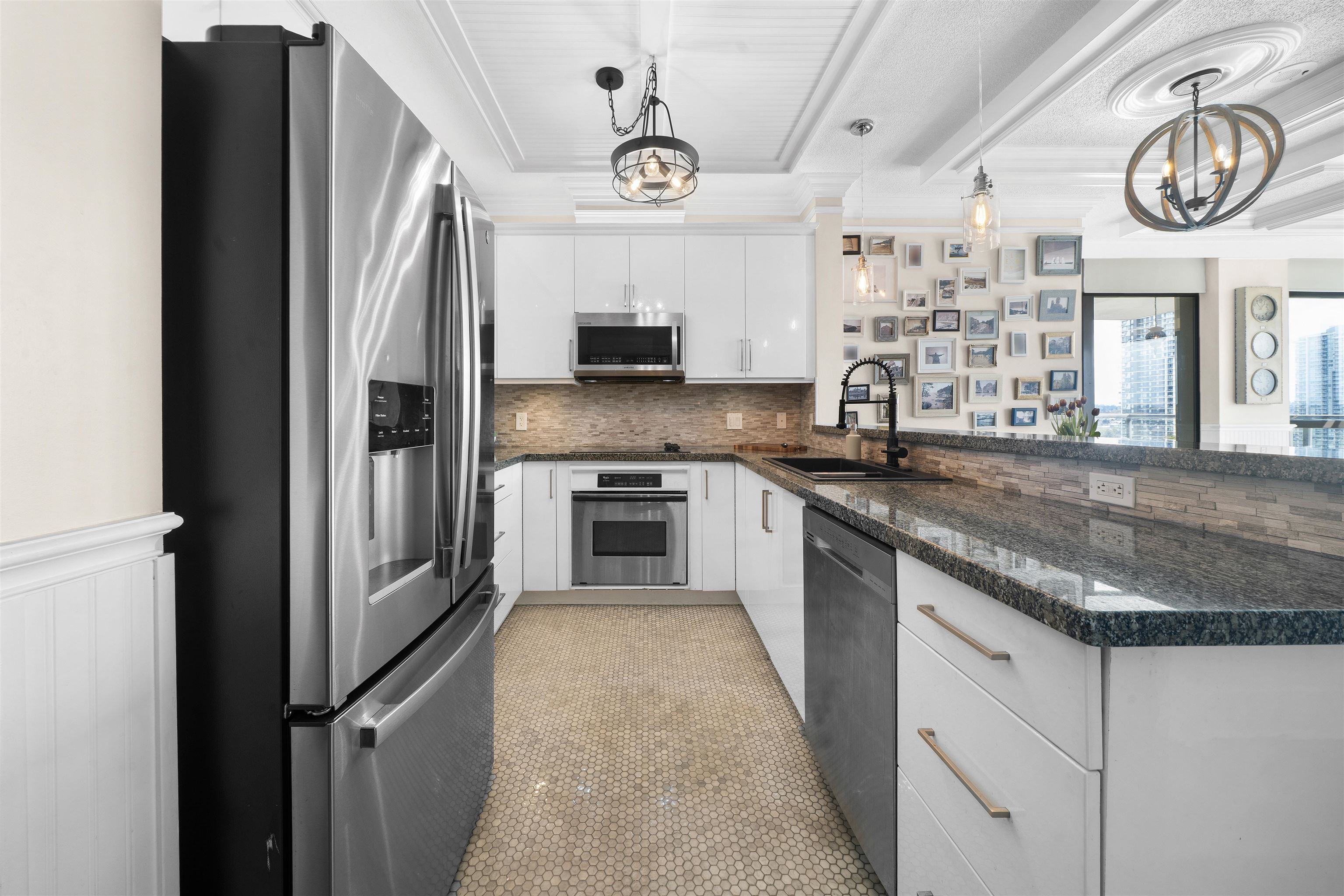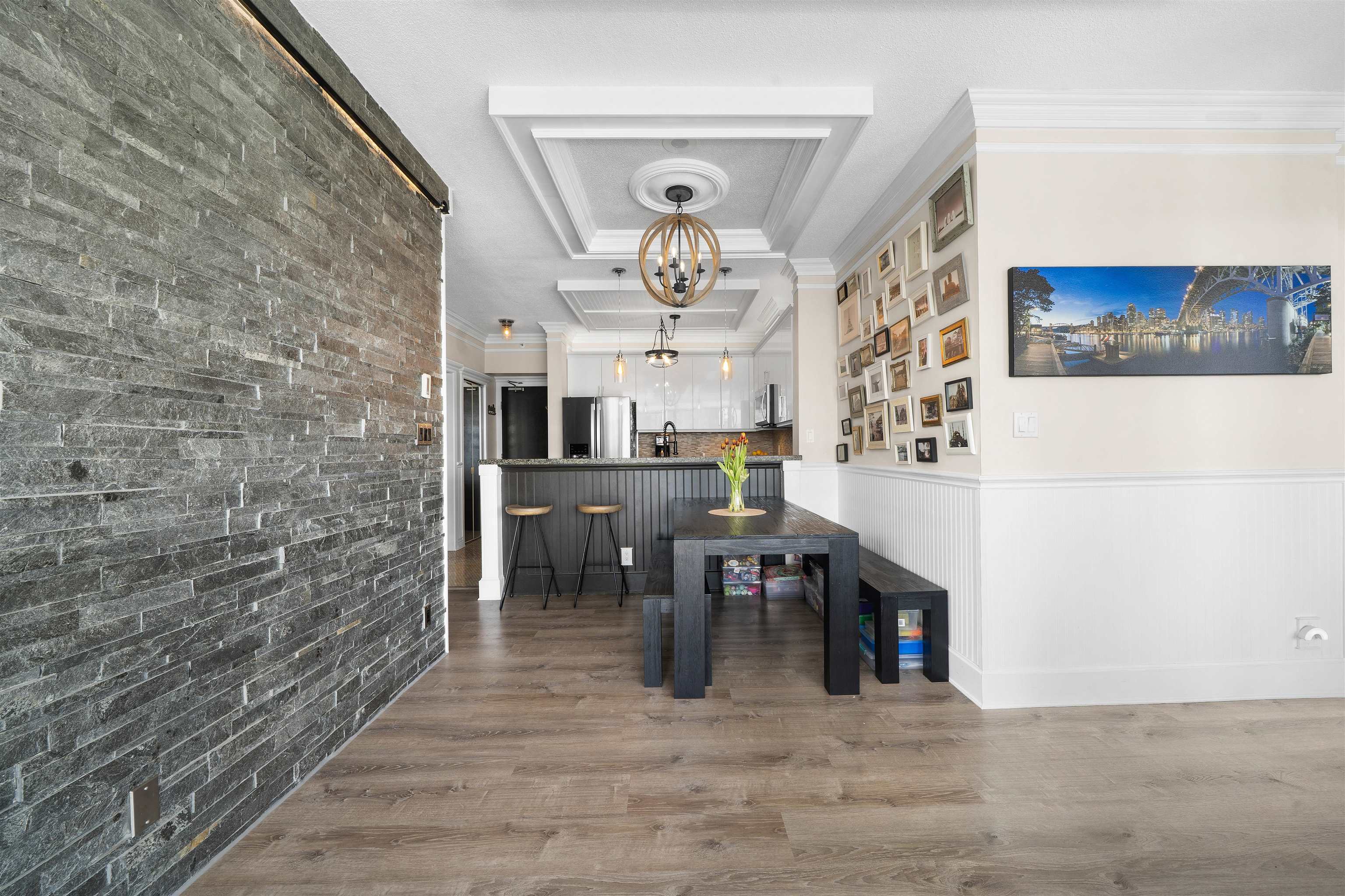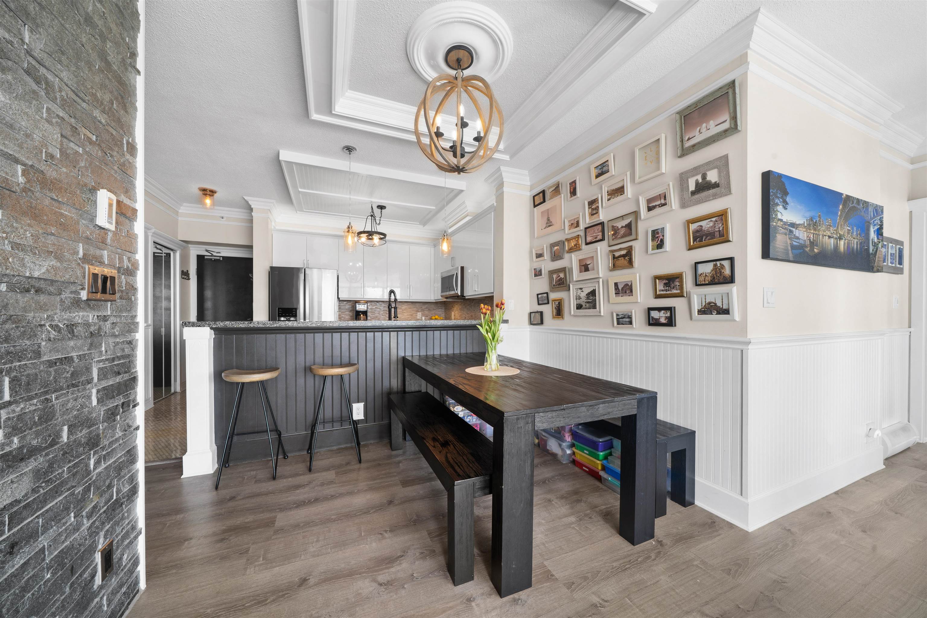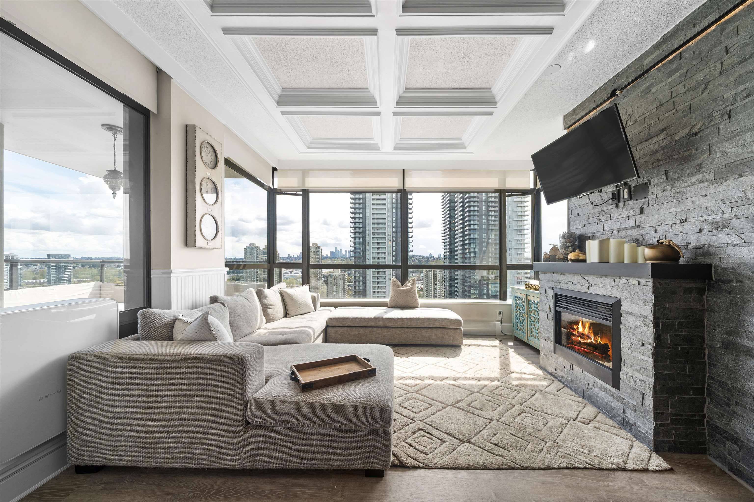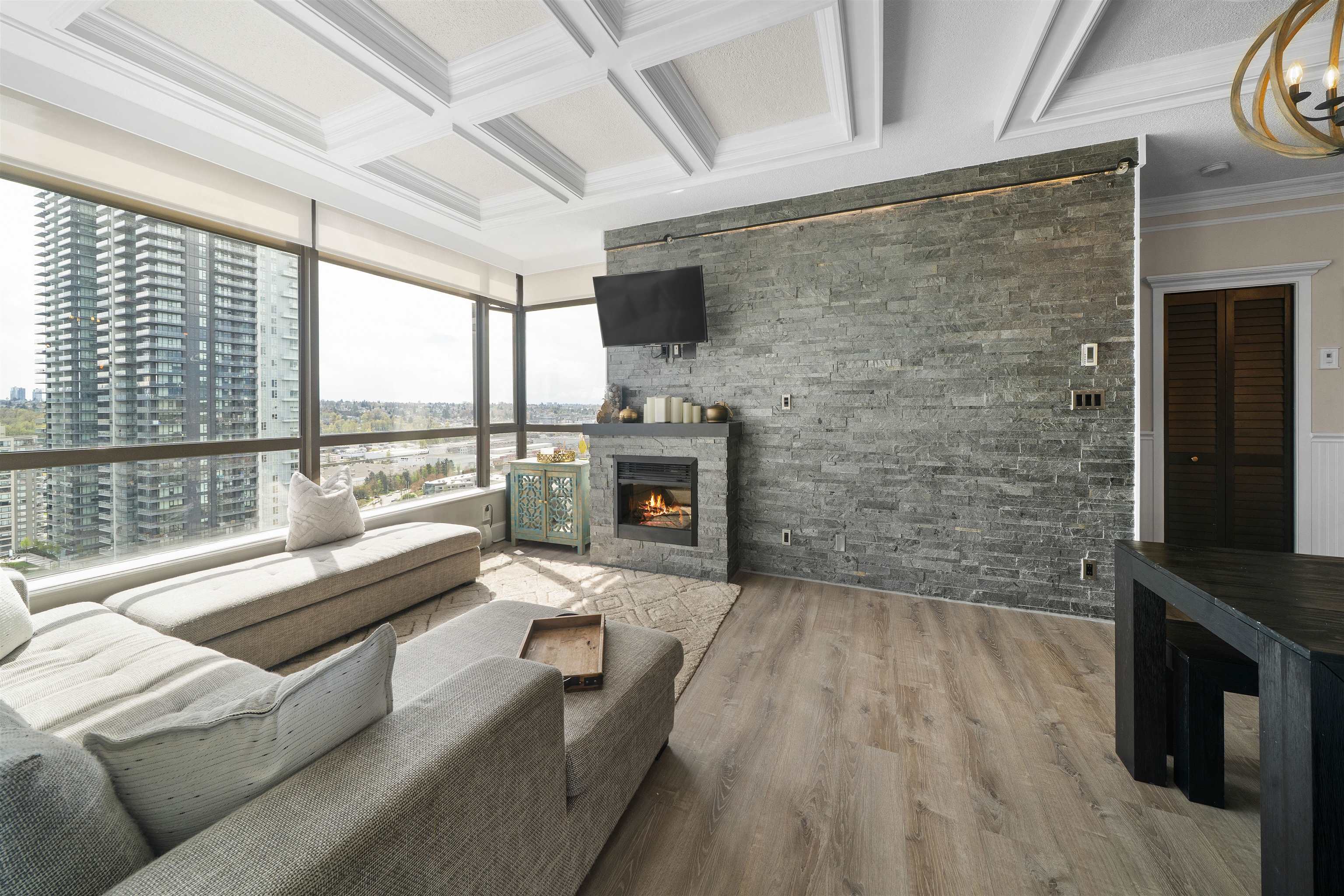 Welcome to Brentwood living at its best! This bright southeast facing 2 bedroom, 2 bathroom home offers an open concept layout, large windows, and abundant natural light. Thoughtfully updated, the home showcases elevated finishes and a timeless modern aesthetic, creating a warm yet refined living space. The spacious living and dining areas open onto a generous covered balcony, perfect for year round enjoyment. The modern kitchen features sleek cabinetry, stone countertops, and stainless steel appliances. Th...