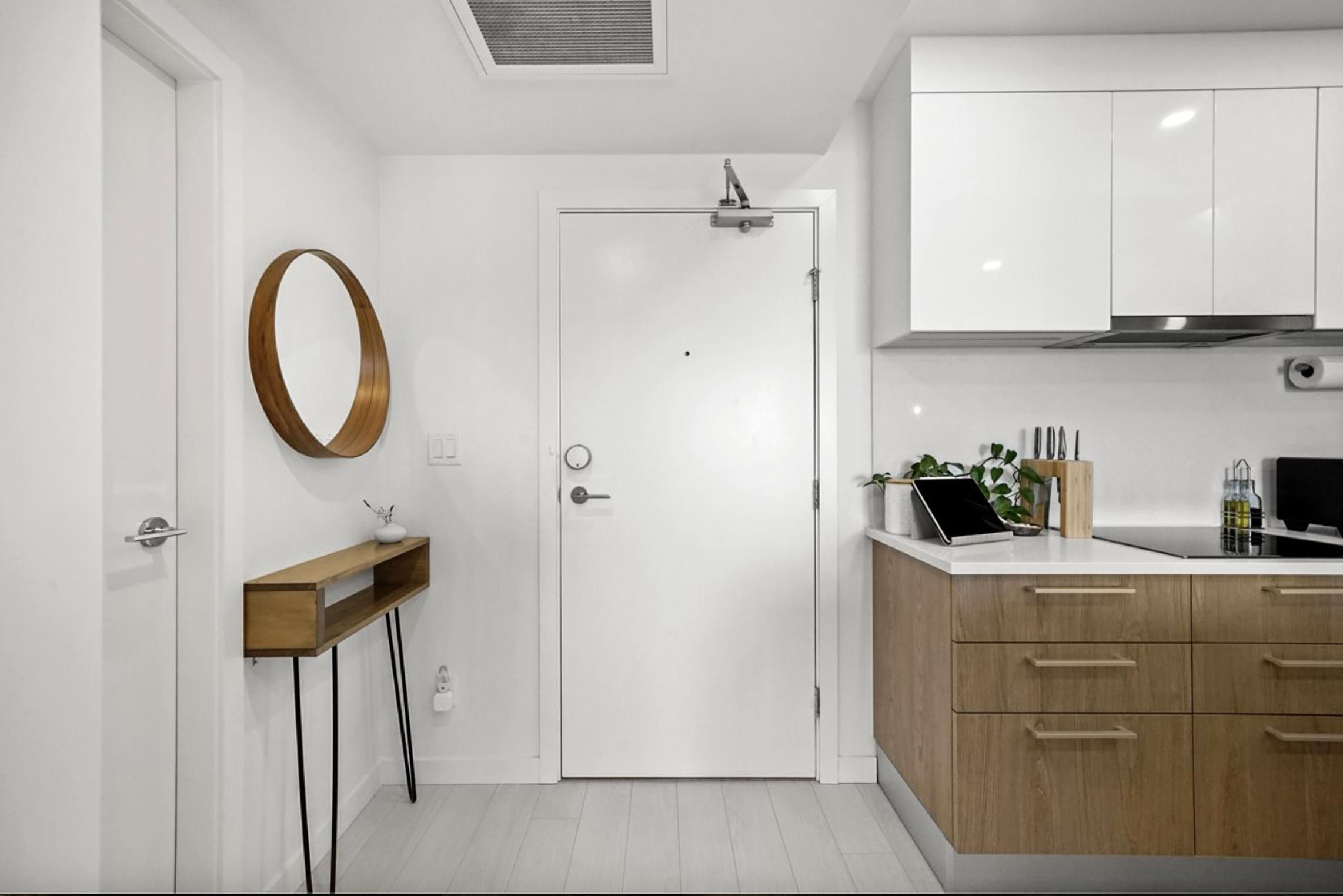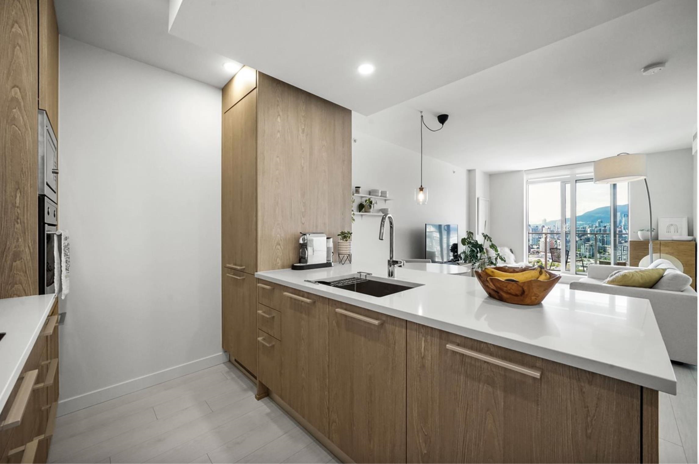 The VIEWS will blow you away. Stunning, UNOBSTRUCTED & PANORAMIC water, mountain and city views from your contemporary 2 bed in the heart of Mount Pleasant. This air conditioned home boasts a modern kitchen w/ integrated appliances/Porter + Charles Induction cook top, & quartz countertops. Interior finishes include in-floor bath heating, custom millwork wardrobes & laminate floors. Stroll along trendy Main St then sip wine on your large patio and enjoy spectacular sunsets over English Bay. Fantastic ameniti...