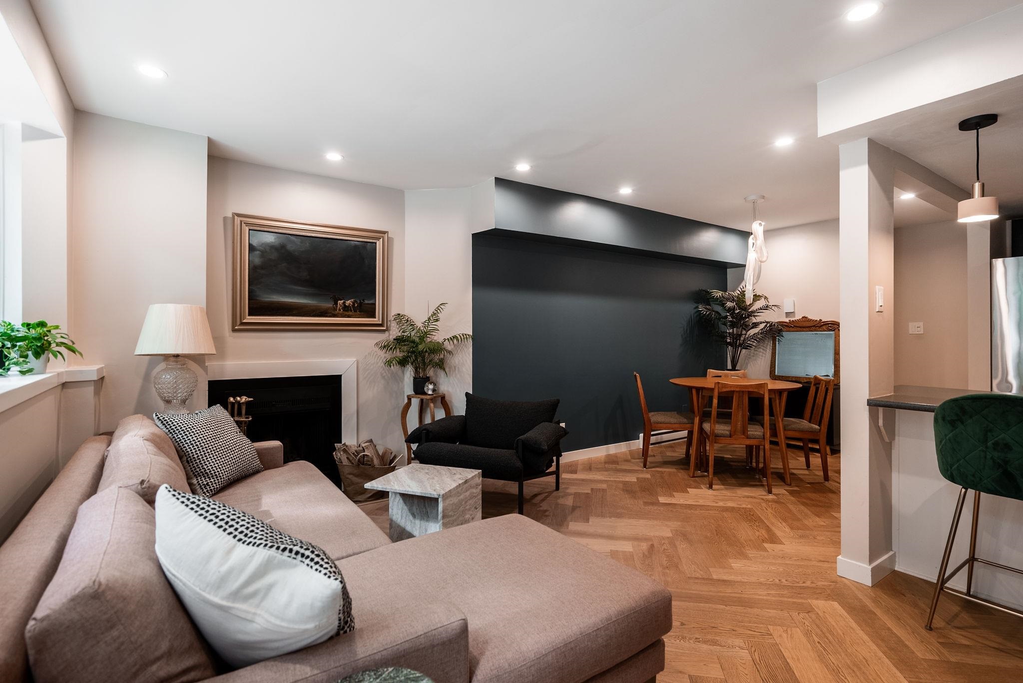 Gorgeous South facing 2 bed, 2.5 bath home on a quiet tree-lined street in Kits. Updated white oak herringbone floors, all new appliances, and a cozy wood burning fireplace to enjoy. Both bedrooms feature ensuites with the primary having an oversized soaker tub. This condo boasts 3 separate outdoor areas on each level, including a private rooftop deck and large garden patio. Great for entertaining! Building updates include a new roof and patios (2023). Steps to trendy shops, Arbutus Greenway, cafes, restaur...