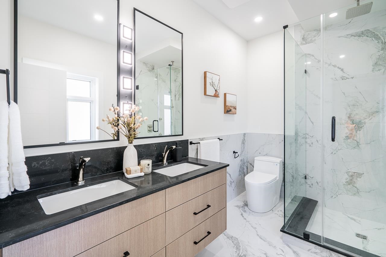 A must see home! Beautiful new construction with ample room to accommodate growing families. This home features a legal 2 bedroom suite, 7 bedrooms and 6 full baths. Nicely appointed gourmet kitchen on the main floor with adjoining wok kitchen. Great floor plan with 4 bedrooms upstairs featuring a spacious primary bedroom with luxurious ensuite. Designated family, dining and living rooms on the main floor with stylish built in shelving. A/C, radiant heating, built in security system, hot water on demand and...