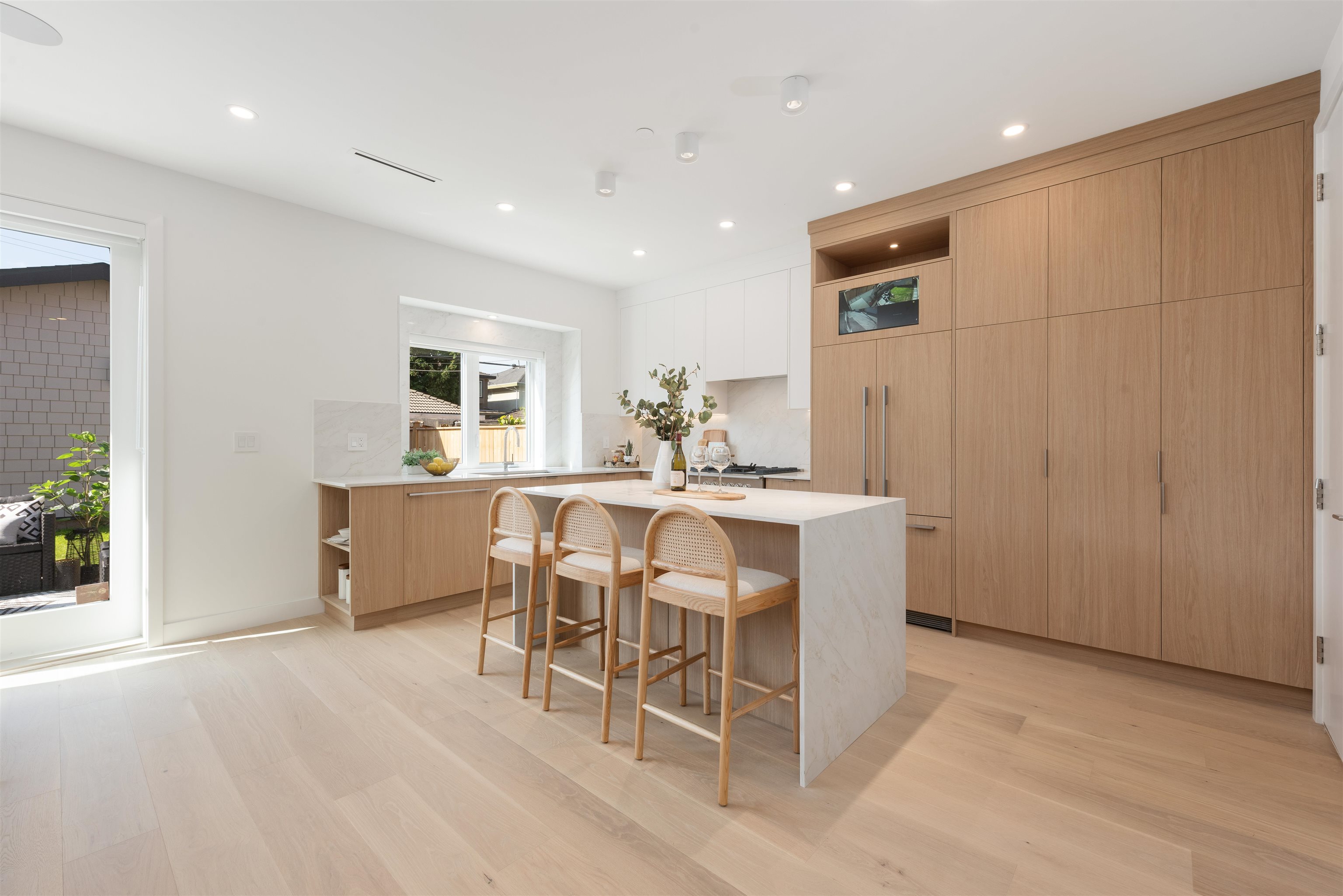 Nestled on a tranquil, tree-lined street in Arbutus-one of Vancouver's most prestigious neighborhoods. This newly built 1695sf duplex offers the perfect blend of luxury&convenience. Just moments from top public&private schools, UBC, cafés, restaurants, parks, shops&beaches. Open concept layout w/9-foot ceilings, wide-plank light oak flooring&oversized windows that flood the space w/natural light. The gourmet kitchen is a chef's dream, featuring a waterfall island, quartz countertops, extensive cabinetry&pre...