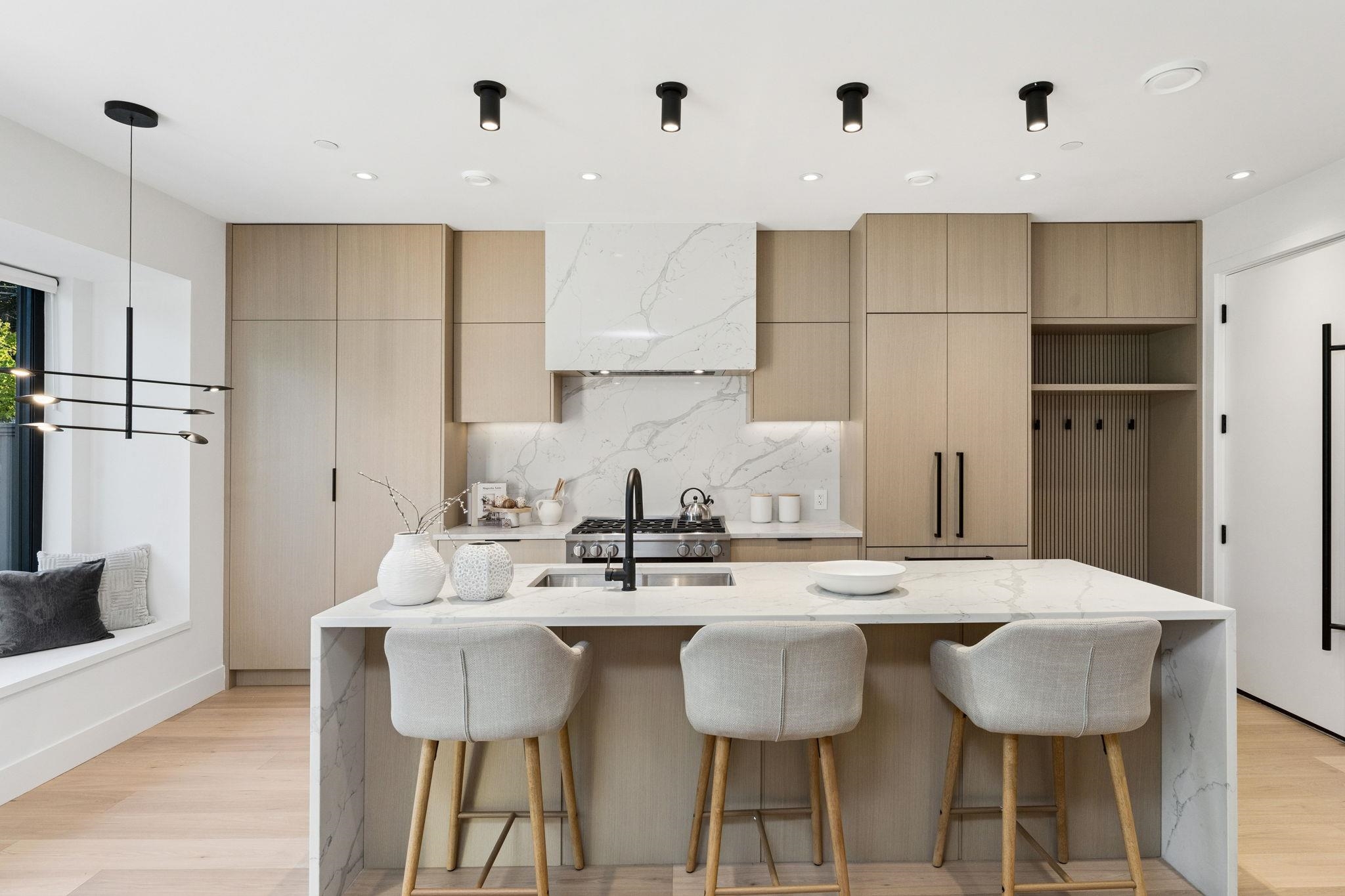 This sophisticated back ½ duplex offers 1,589sf of timeless design where classic craftsman materials meet modern Scandinavian elegance. Full-height white-oak cabinetry, large solid-quartz waterfall island and Miele appliances highlight the inspired kitchen, while large-format tiled baths with frameless showers and floating vanities showcase meticulous detail. Features include radiant in-floor heat, A/C, programmable Lutron lighting, solid core 8’ doors, a heated finished crawlspace and an insulated, heated ...
