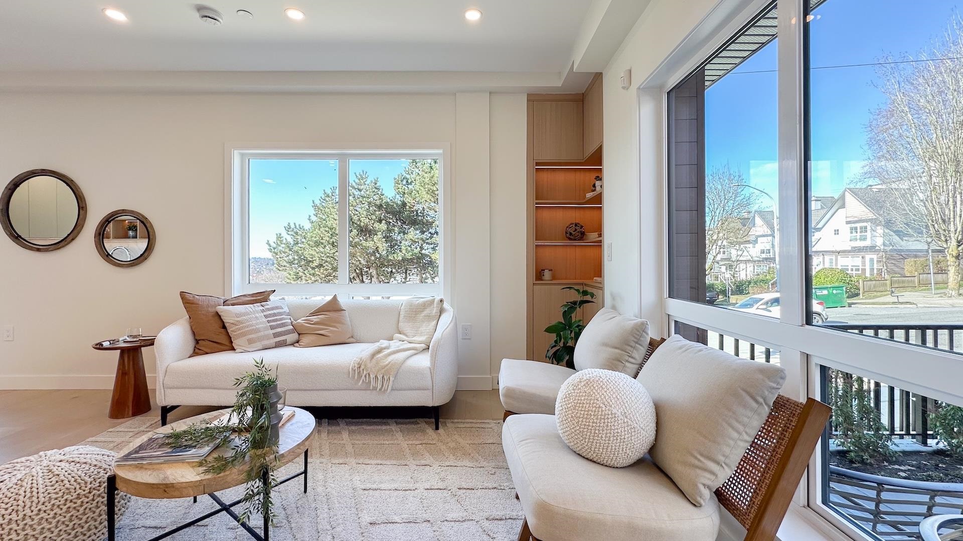 Welcome to Burnaby North's brand new 3-bedroom residence, ideally situated just one block from Vancouver in the heart of Willingdon Heights. This North-East facing, 4-level townhouse showcases beautiful North Shore mountain views and an open-concept designer floor plan. Built by a respected local builder with a refined designer touch, this home features elegant hardwood flooring, custom cabinetry & closets, quartz countertops, and premium finishes throughout. Each unit is equipped with radiant in-floor heat...