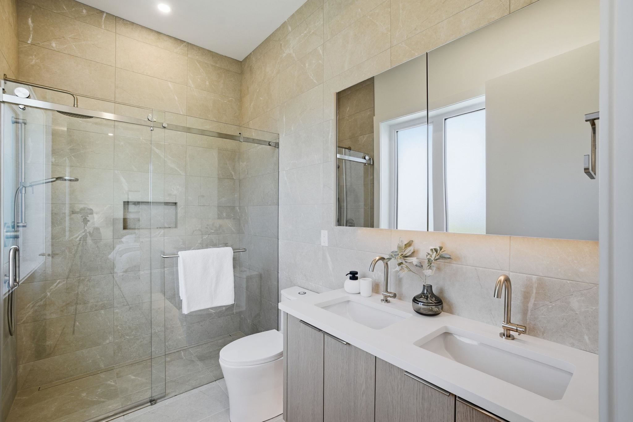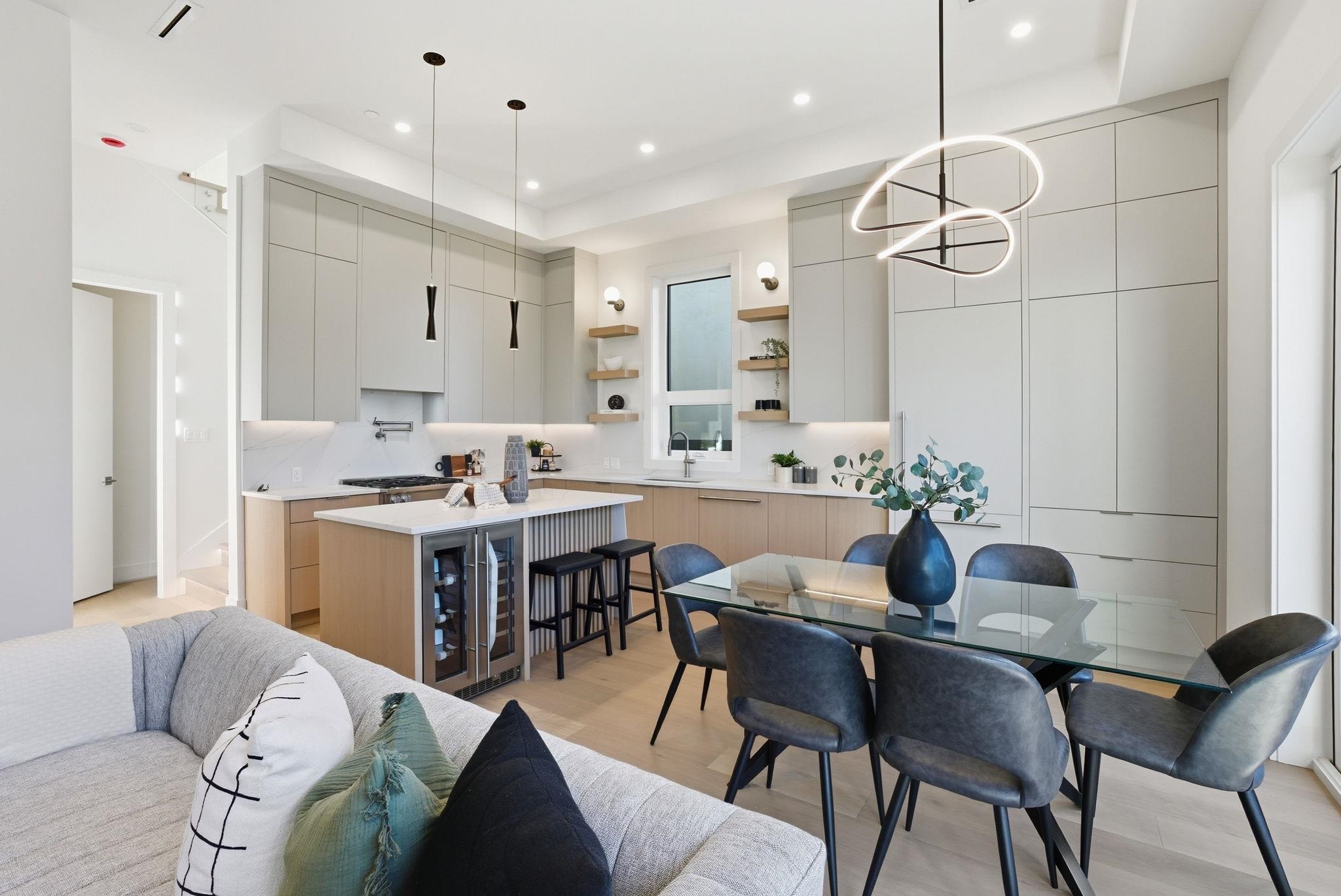 GORGEOUS/NEW REAR WEST FACING duplex located on a quiet street in the heart of Kerrisdale! SOARING 11'5" ceilings on the main floor which features high end engineered wood flooring/millwork/fireplace, bar area/wine fridge, STUNNING Kitchen w tons of storage, MEILE appliances plus custom LED lighting throughout. Upstairs you will find 10' ceilings, ample walk in closets, both bedrooms w Ensuites + another loft area upstairs with a 3rd bedroom/full bathroom. Additional features include a 500+sf crawlspace, se...